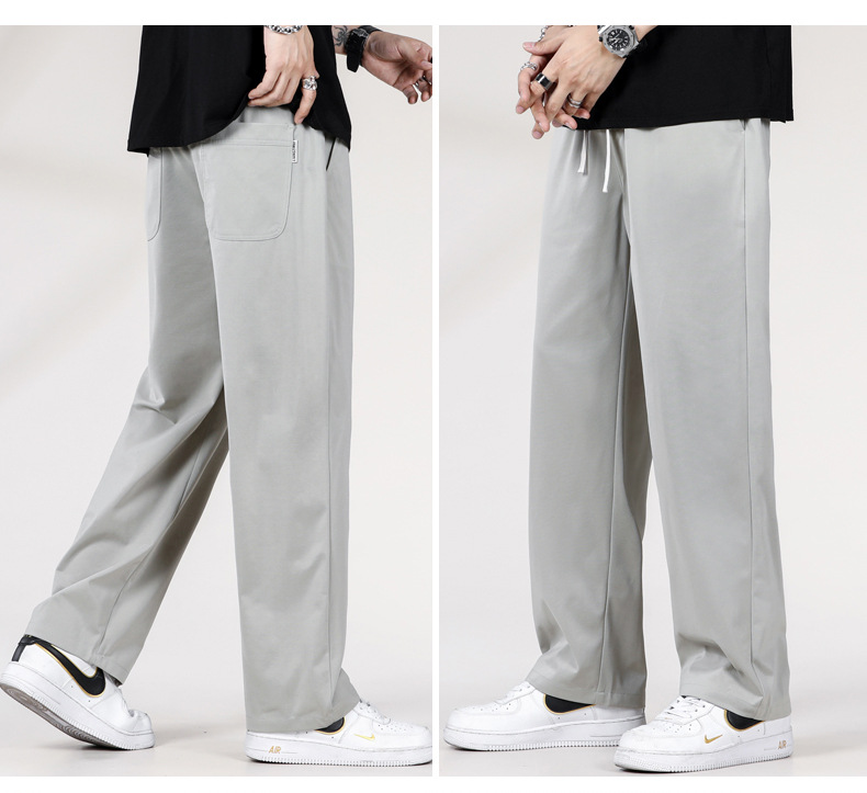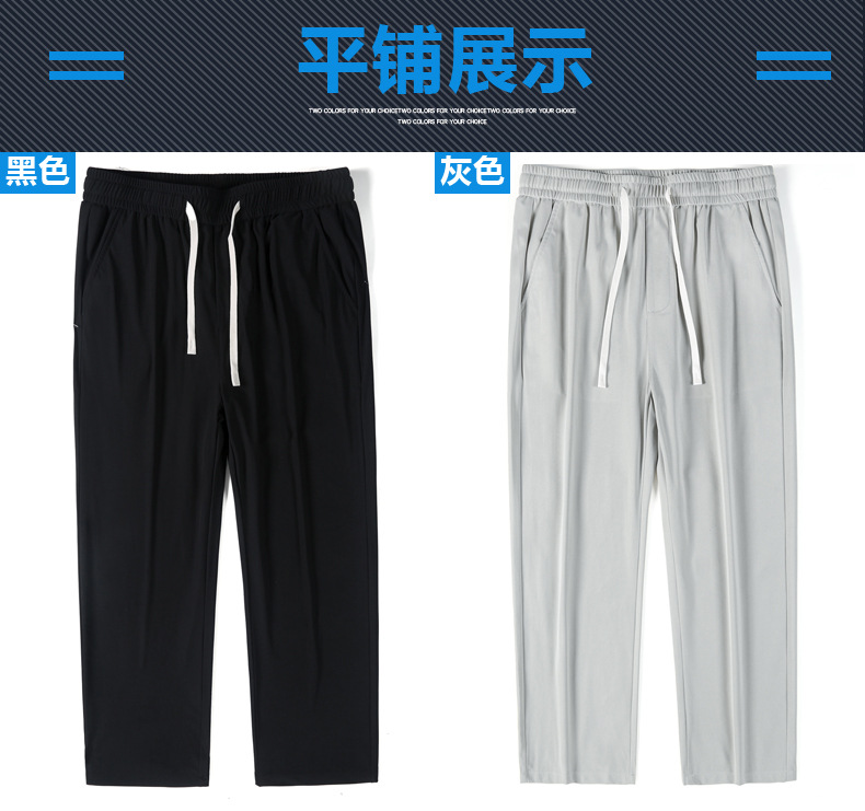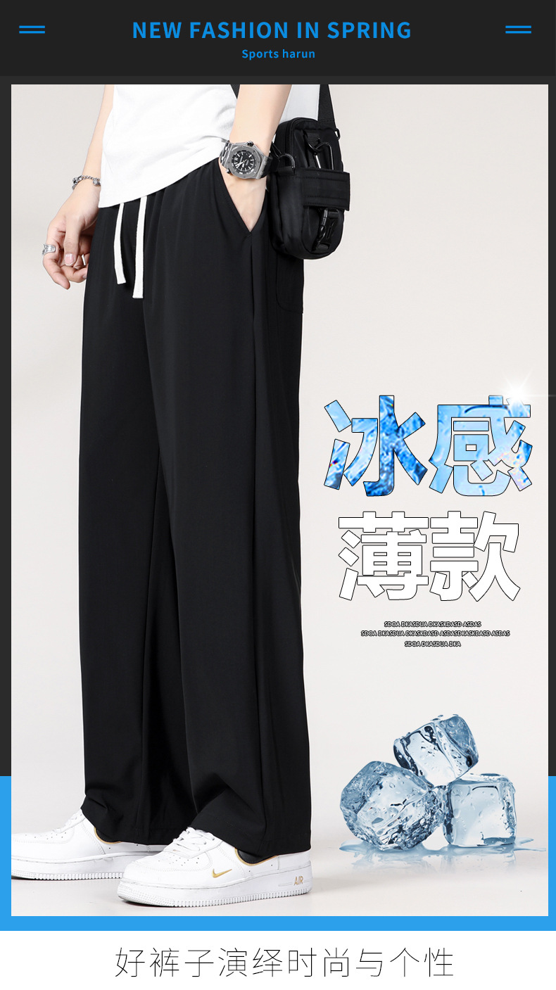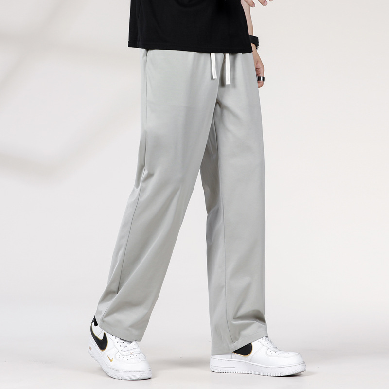 플러스 사이즈 남자의 여름 새로운 아이스 실크 와이드 레그 아빠 바지 느슨한 플러스 사이즈 간단한 졸라매는 끈 얇은 캐주얼 바지 남성용