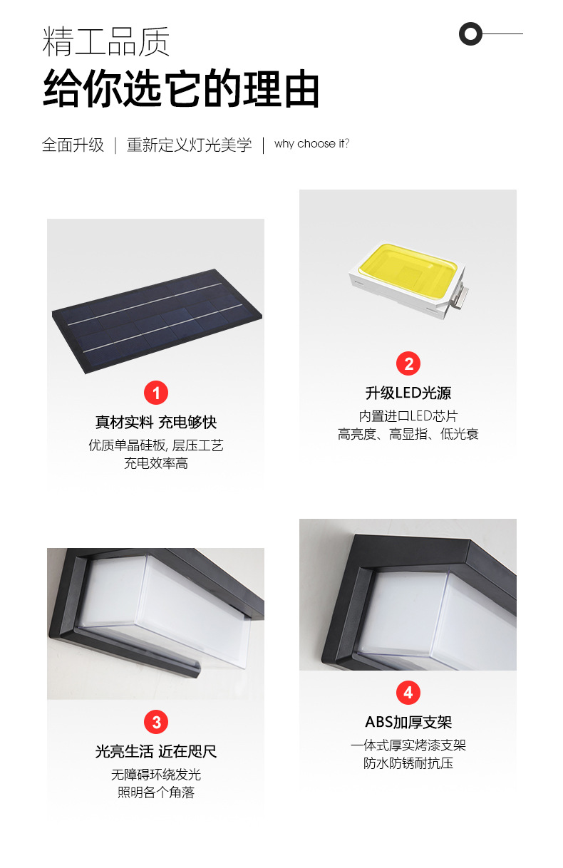 • 인체 유도 + 태양열 5 면 수직 3 색 디밍-대형 플레이트