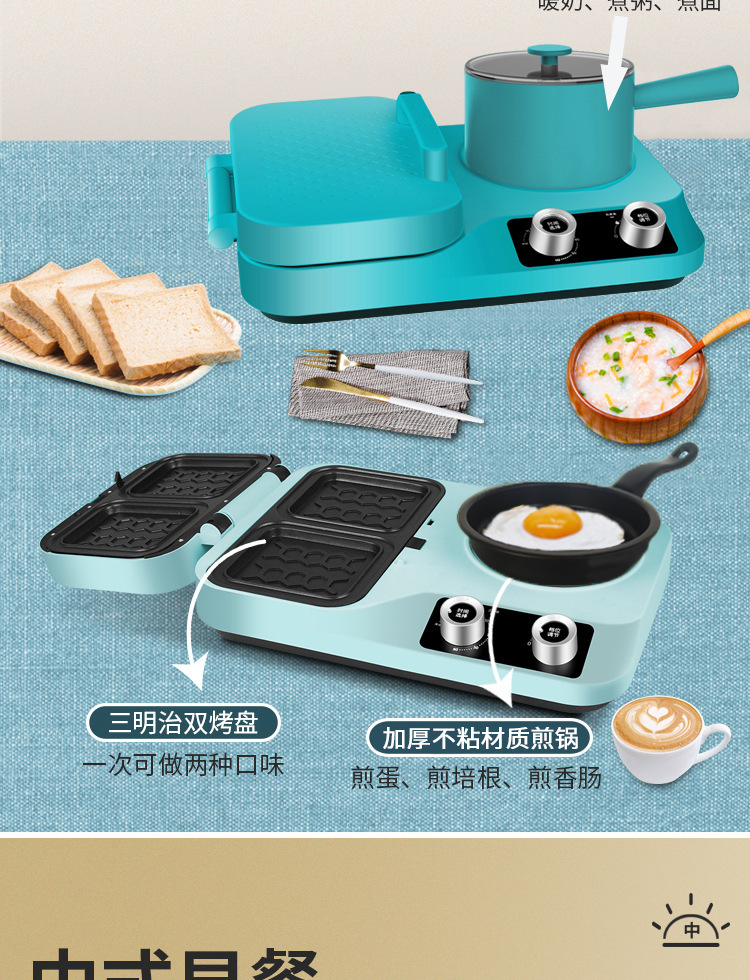 유럽 표준 영어 표준 4 대 1 아침 식사 기계 전기 밥솥 다기능 압력 토스트 샌드위치 토스트 게으른 가벼운 식품 기계스토어 가기