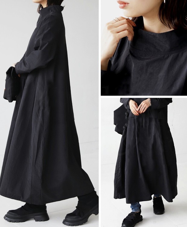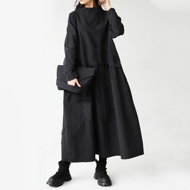 일본과 한국 재고 2023 봄 새로운 느슨한 플러스 사이즈 패션 높은 칼라 긴 소매 원피스 여성스토어 가기