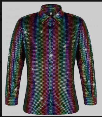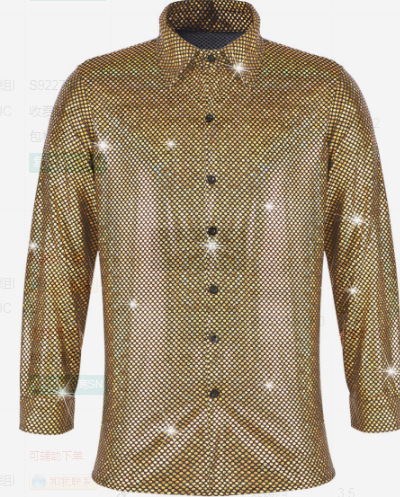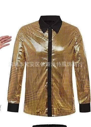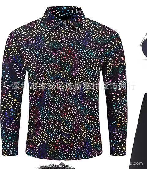 2023 새로운 남성 디스코 의류 폴카 도트 브론징 레이저 인쇄 긴 소매 버튼 다운 셔츠