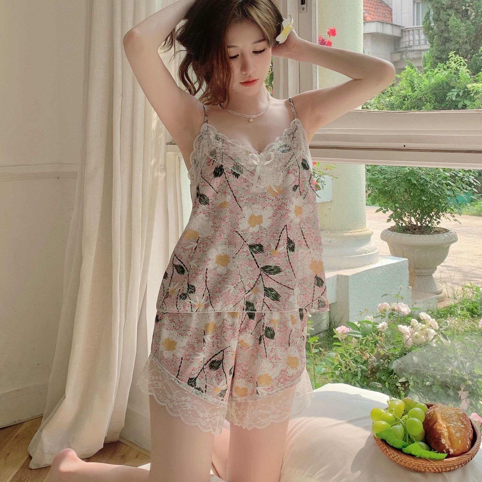 봄과 가을 얼음 실크 잠옷 여자의 여름 슬링 스커트 섹시한 한국 스타일 순수한 욕망 새로운 달콤한 가정 옷 세트스토어 가기