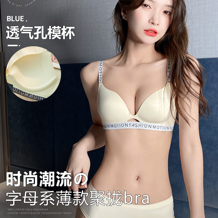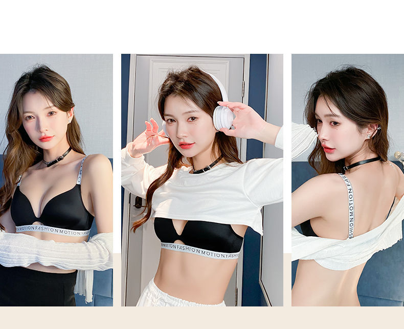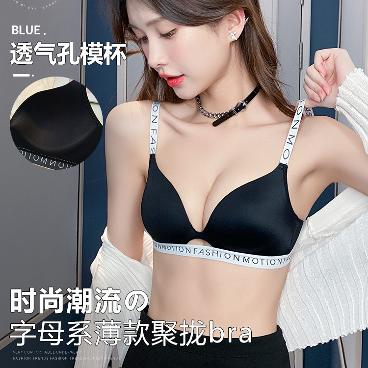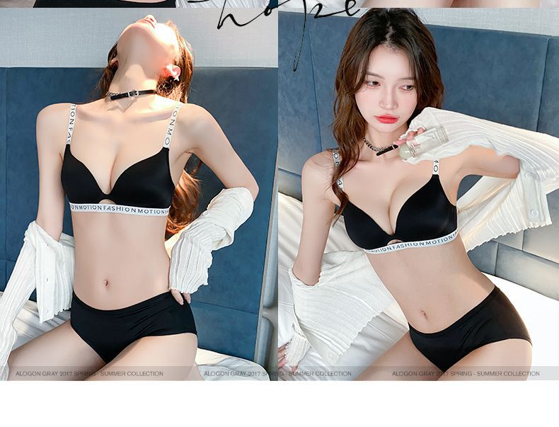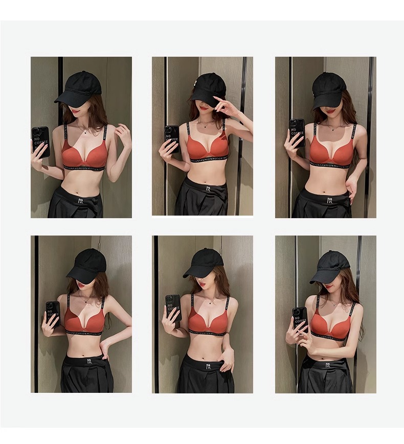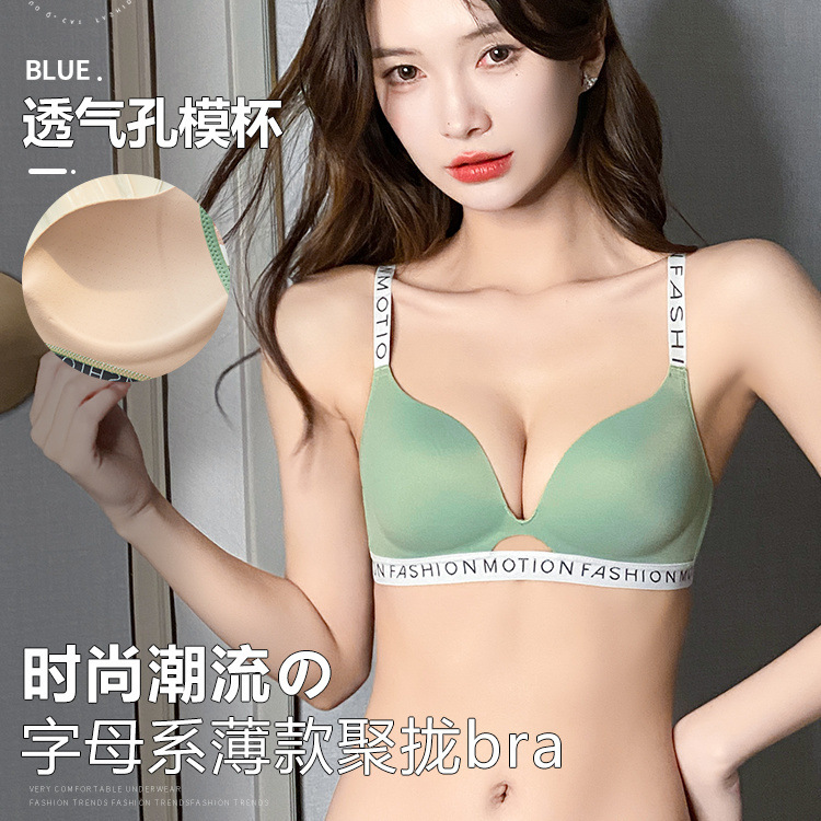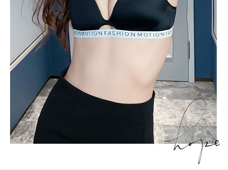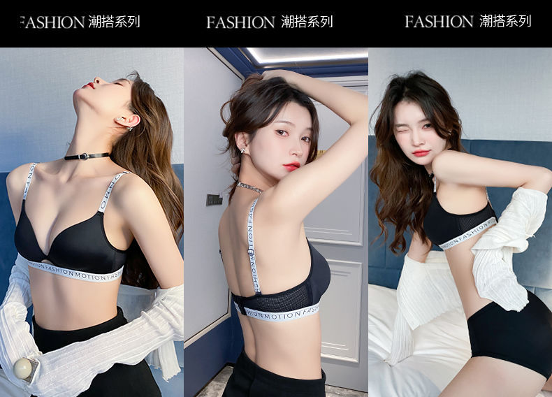 원활한 속옷 여성의 작은 가슴이 큰 무선 처짐 방지 스포츠 노출 된 편지 어깨 끈 브래지어 세트스토어 가기