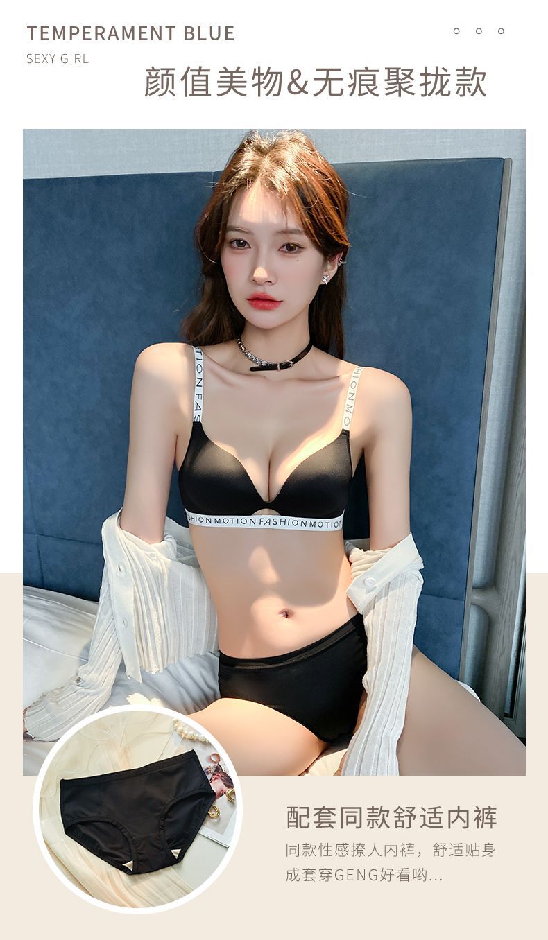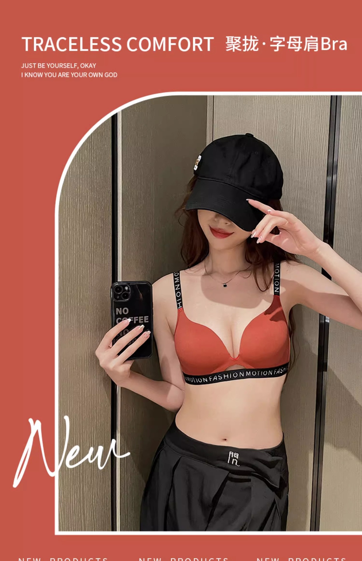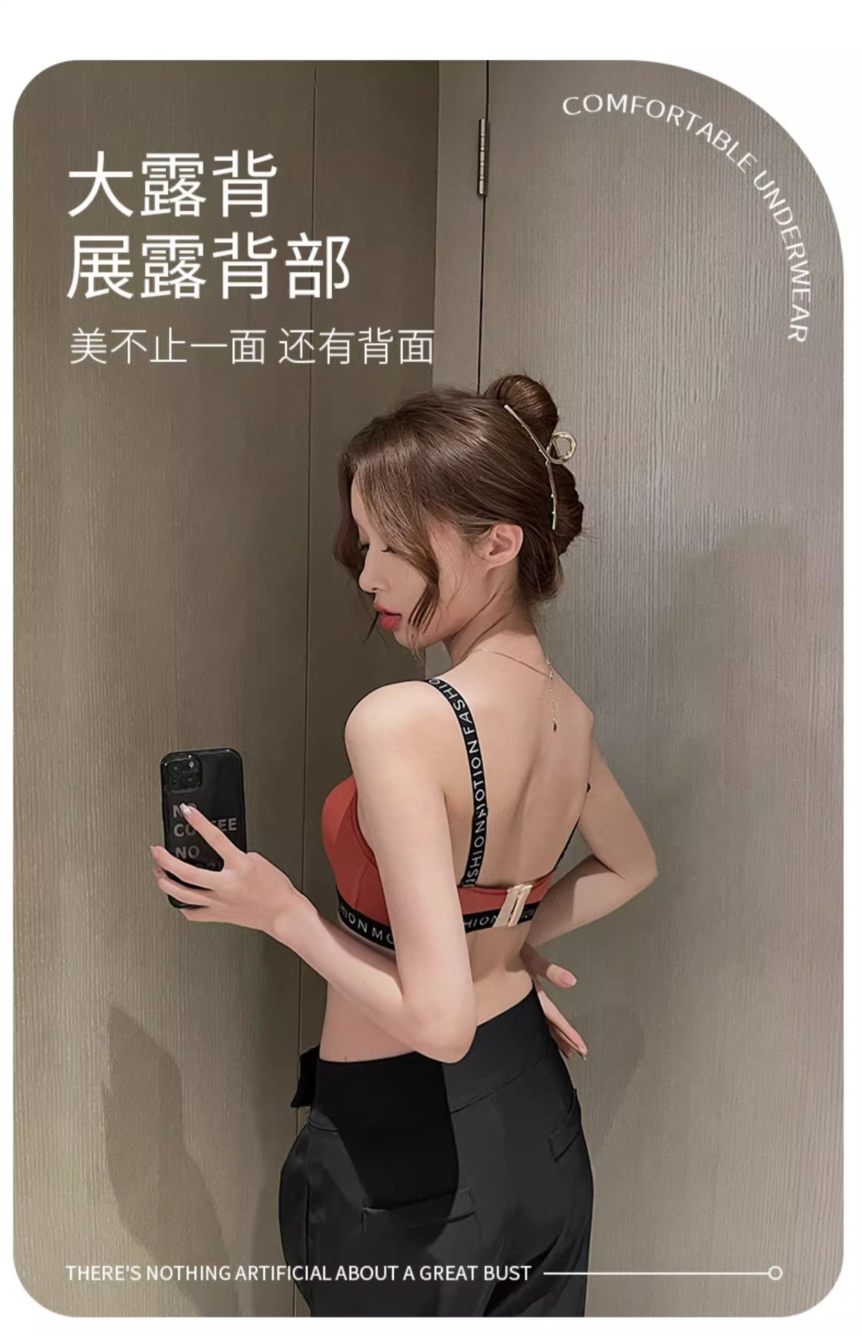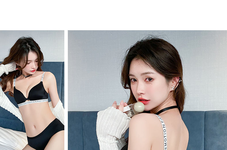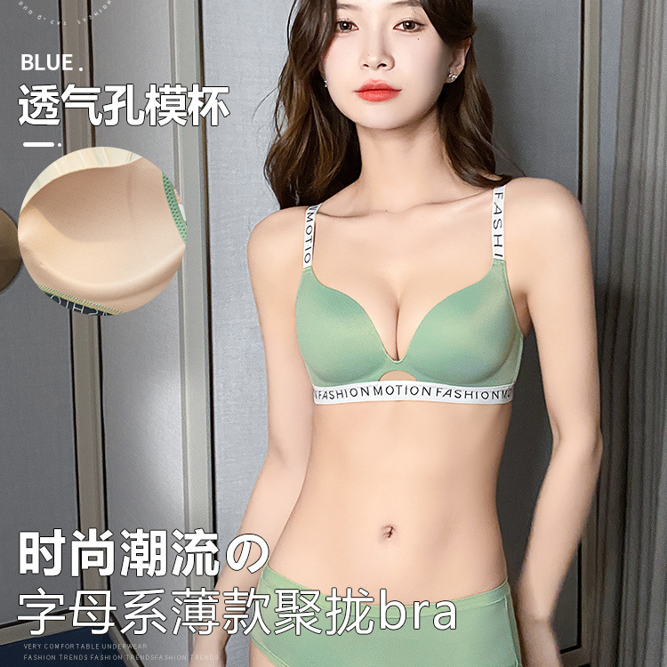 원활한 속옷 여성의 작은 가슴이 큰 무선 처짐 방지 스포츠 노출 된 편지 어깨 끈 브래지어 세트스토어 가기