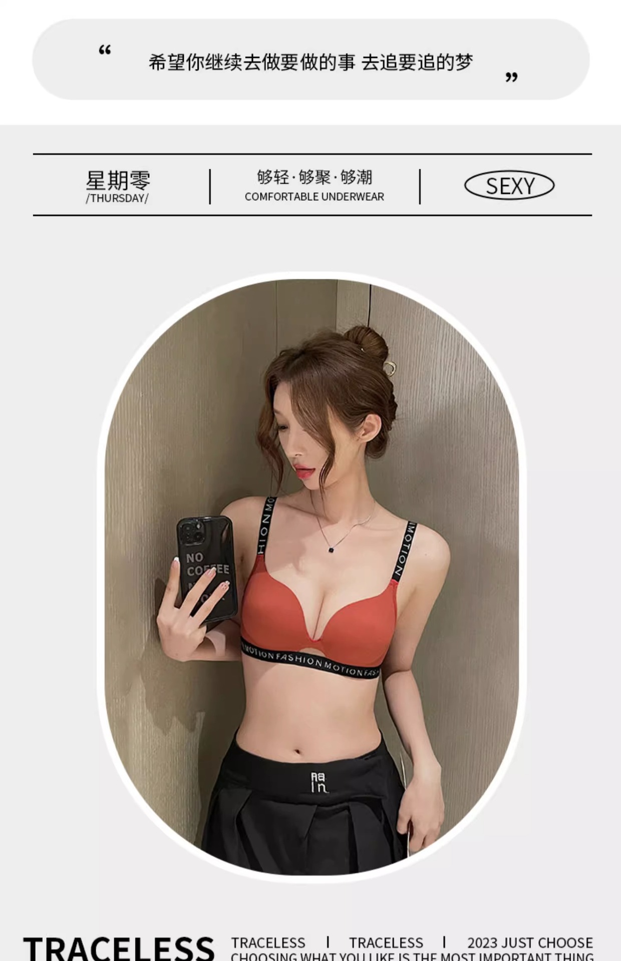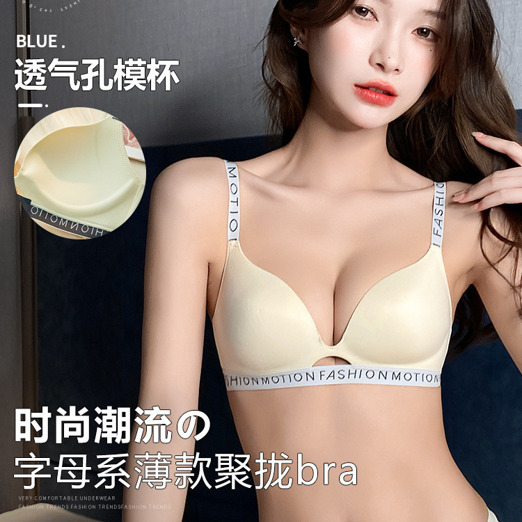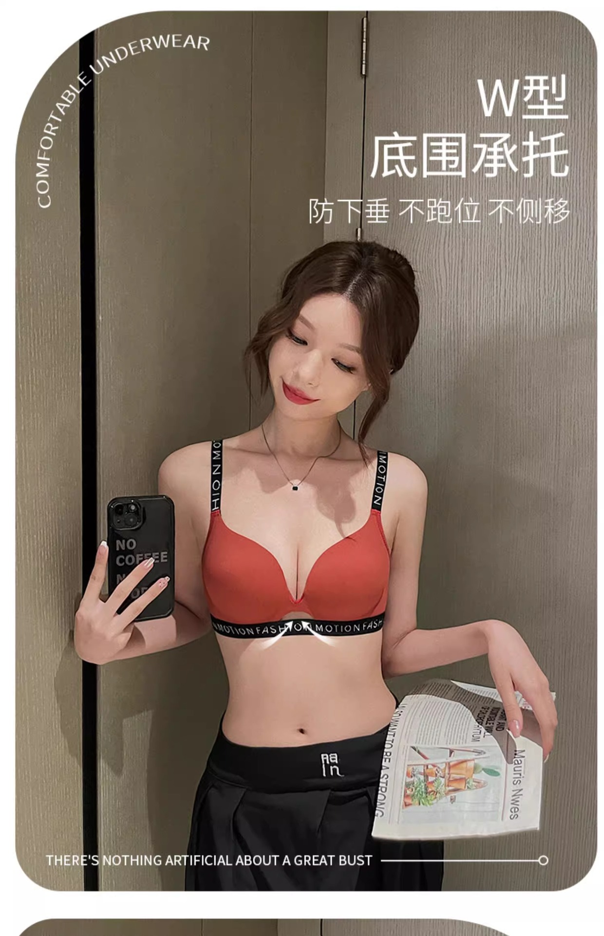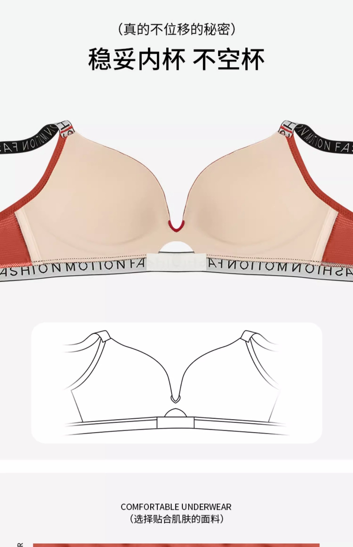 원활한 속옷 여성의 작은 가슴이 큰 무선 처짐 방지 스포츠 노출 된 편지 어깨 끈 브래지어 세트스토어 가기