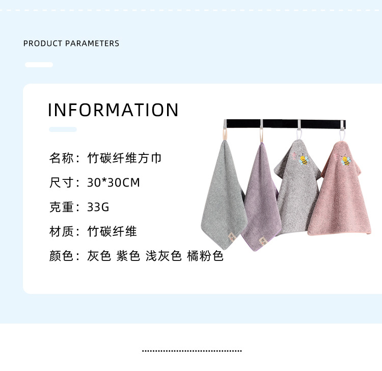 대나무 숯 A급 사각 수건, 산호 벨벳 작은 수건, 흡수성, 속건성, 부드러운 어린이 세안 수건, 핸드 타올, 제조업체 도매스토어 가기