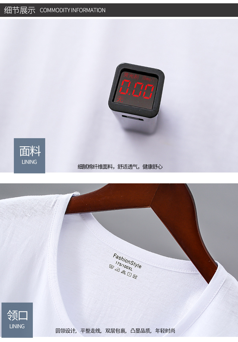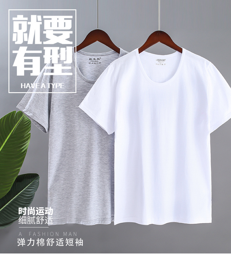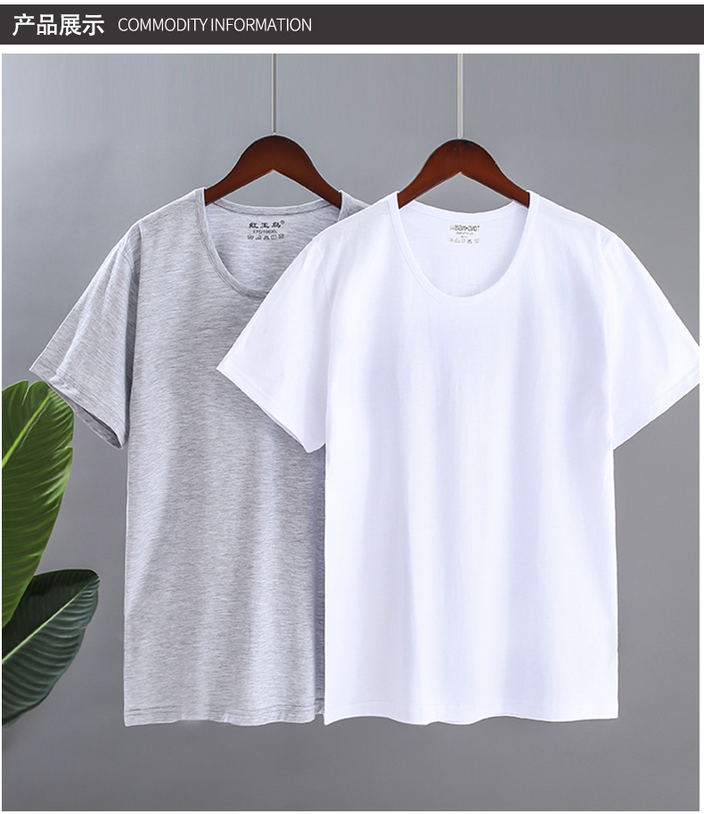 중년 노인 순면 조끼 티셔츠 라운드 넥 티셔츠 여름 구식 통기성 땀 흡수 순백색 빗질 면스토어 가기