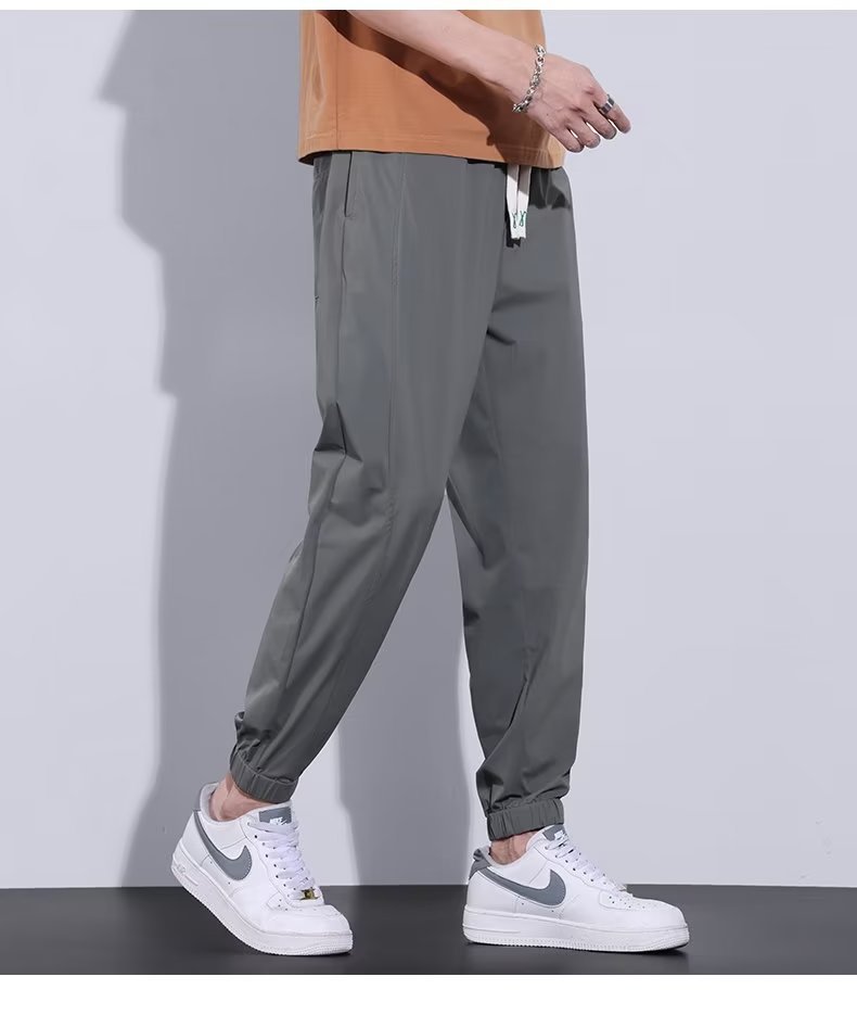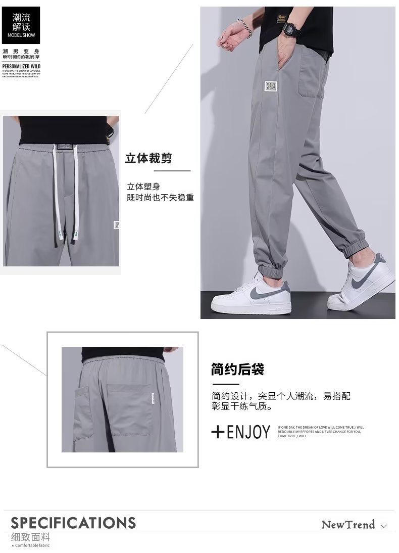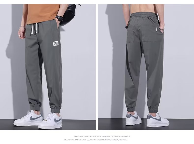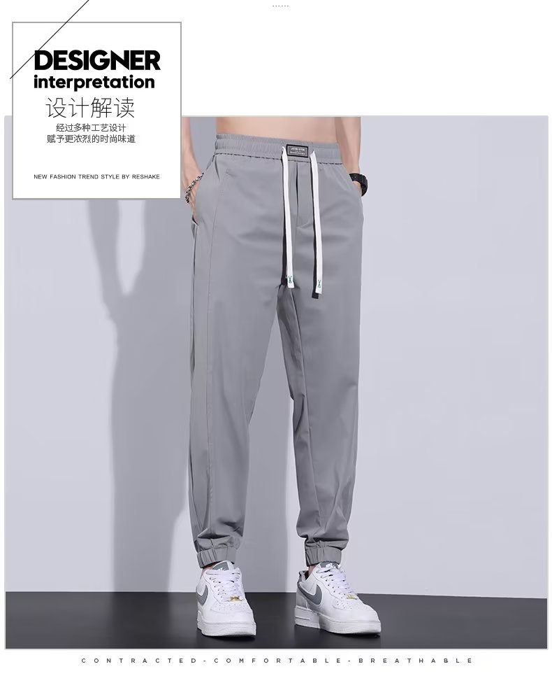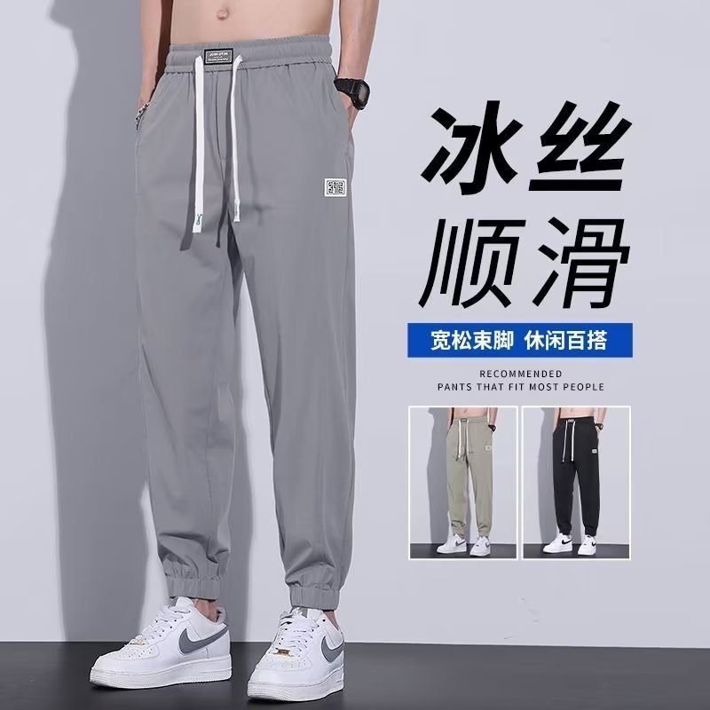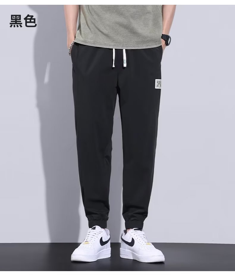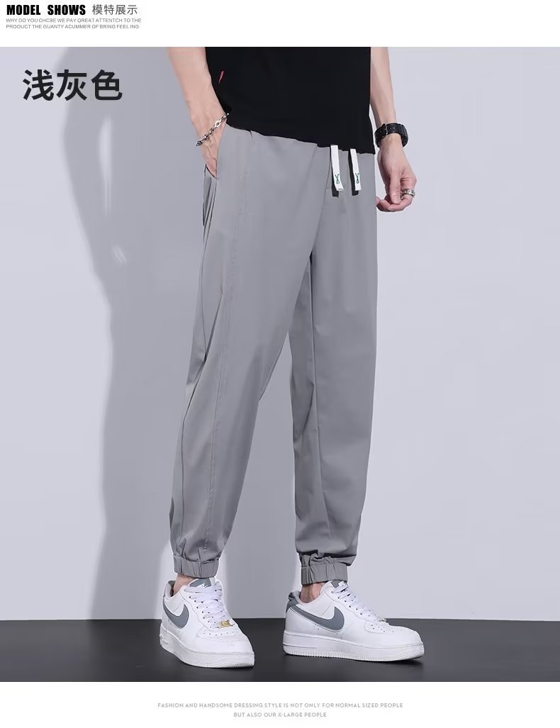 아이스 실크 9부 캐주얼 팬츠 남성용 2023 여름 신상 심플 얇은 탄력 허리 밴딩 조거 팬츠스토어 가기