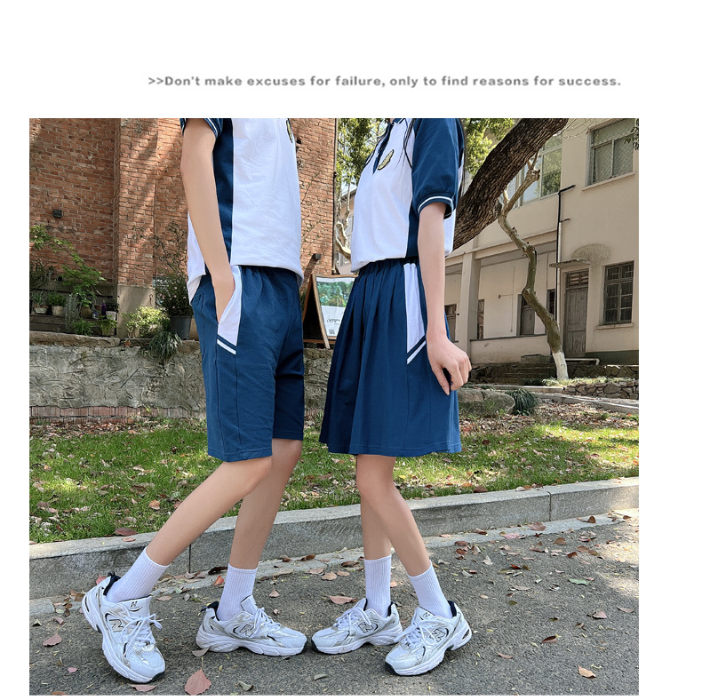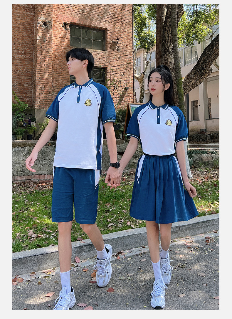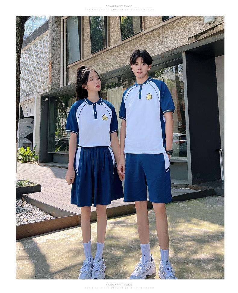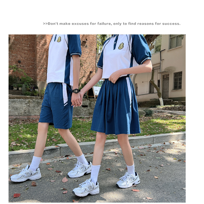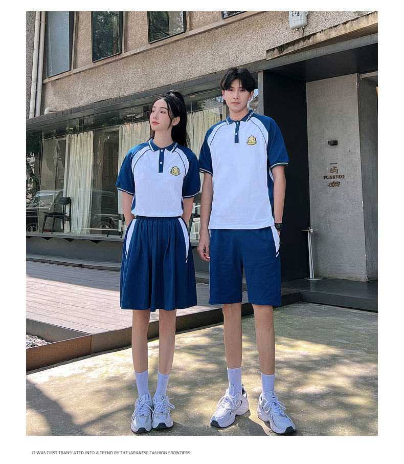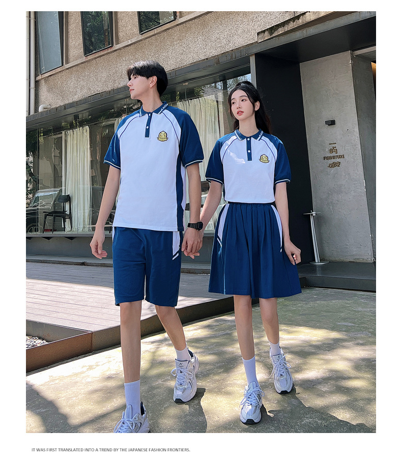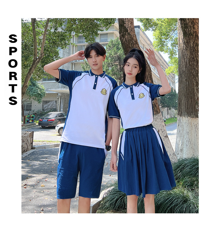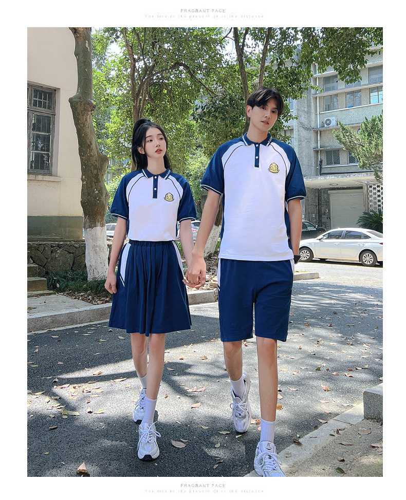 2023 여름 커플 의류 아카데미 스타일 남자와 여자의 반팔 티셔츠 스커트 세트 아카데미 스타일 클래스 의류스토어 가기