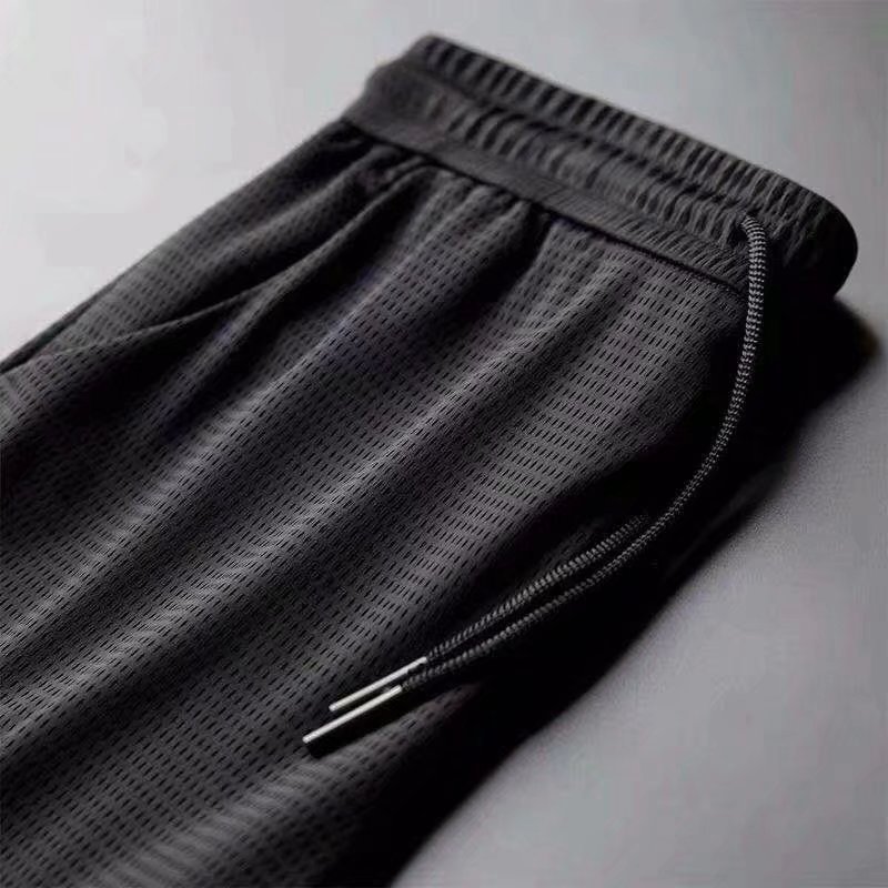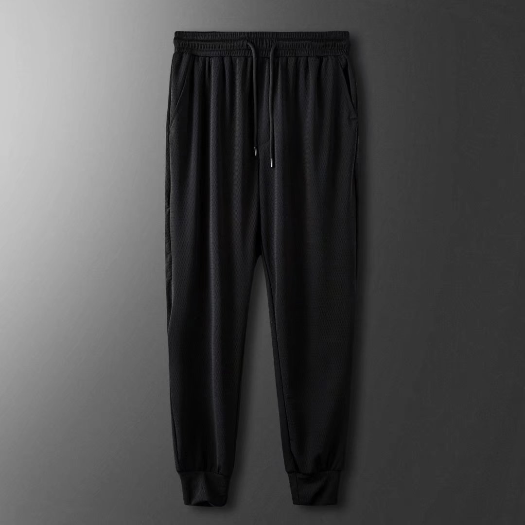 여름 아이스 실크 바지 남성용 초박형 캐주얼 바지 특대형 탄성 속건 통기성 실키 남성 바지 에어컨 바지