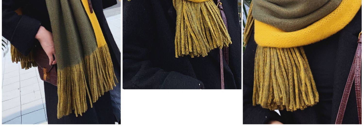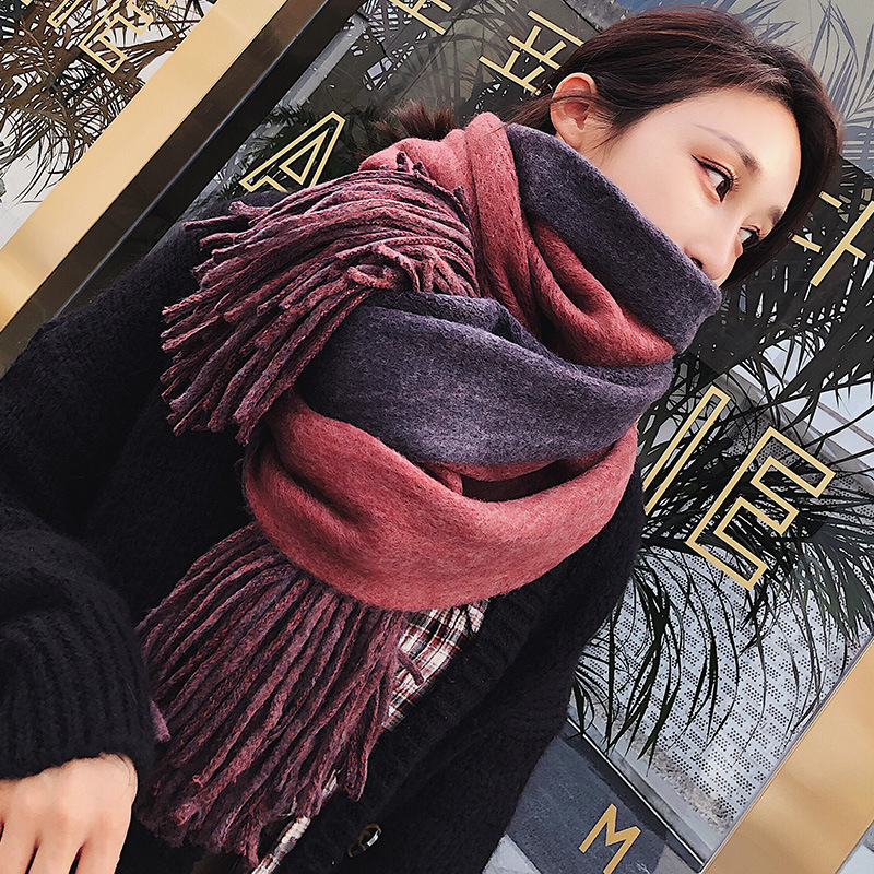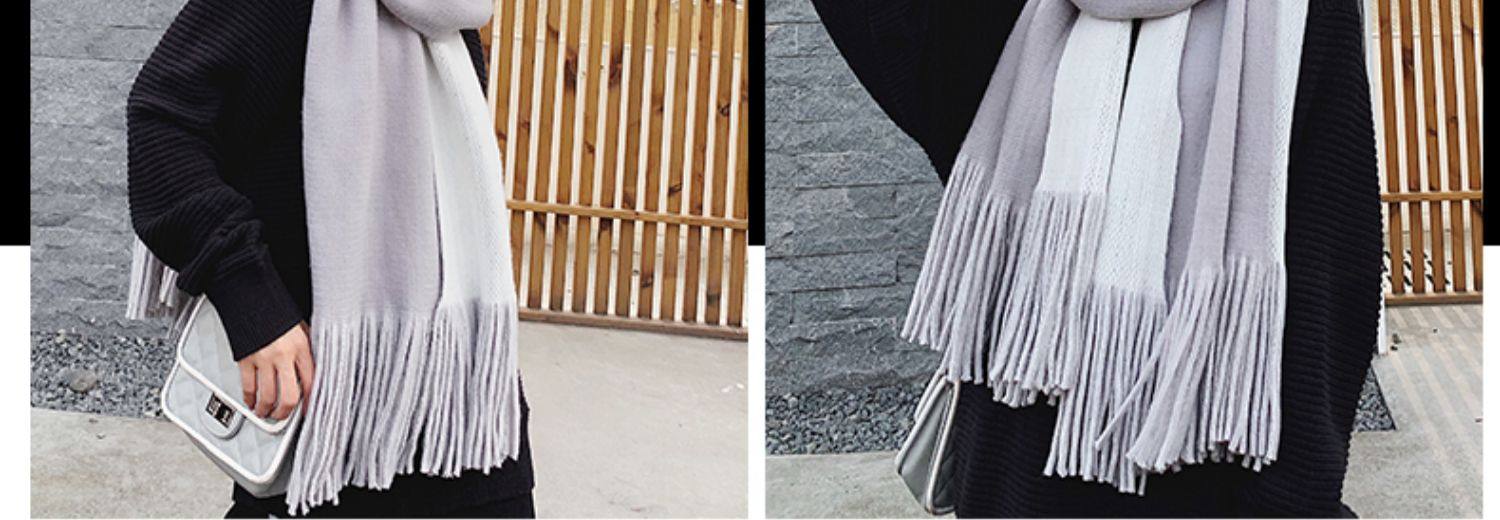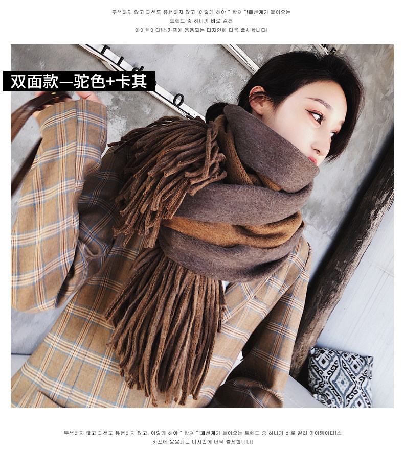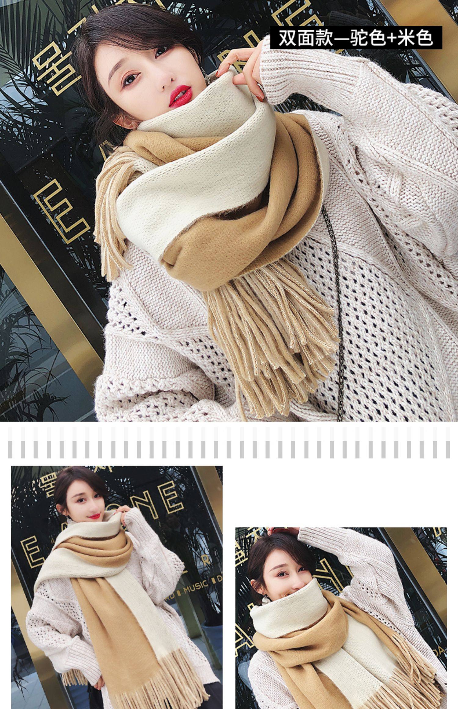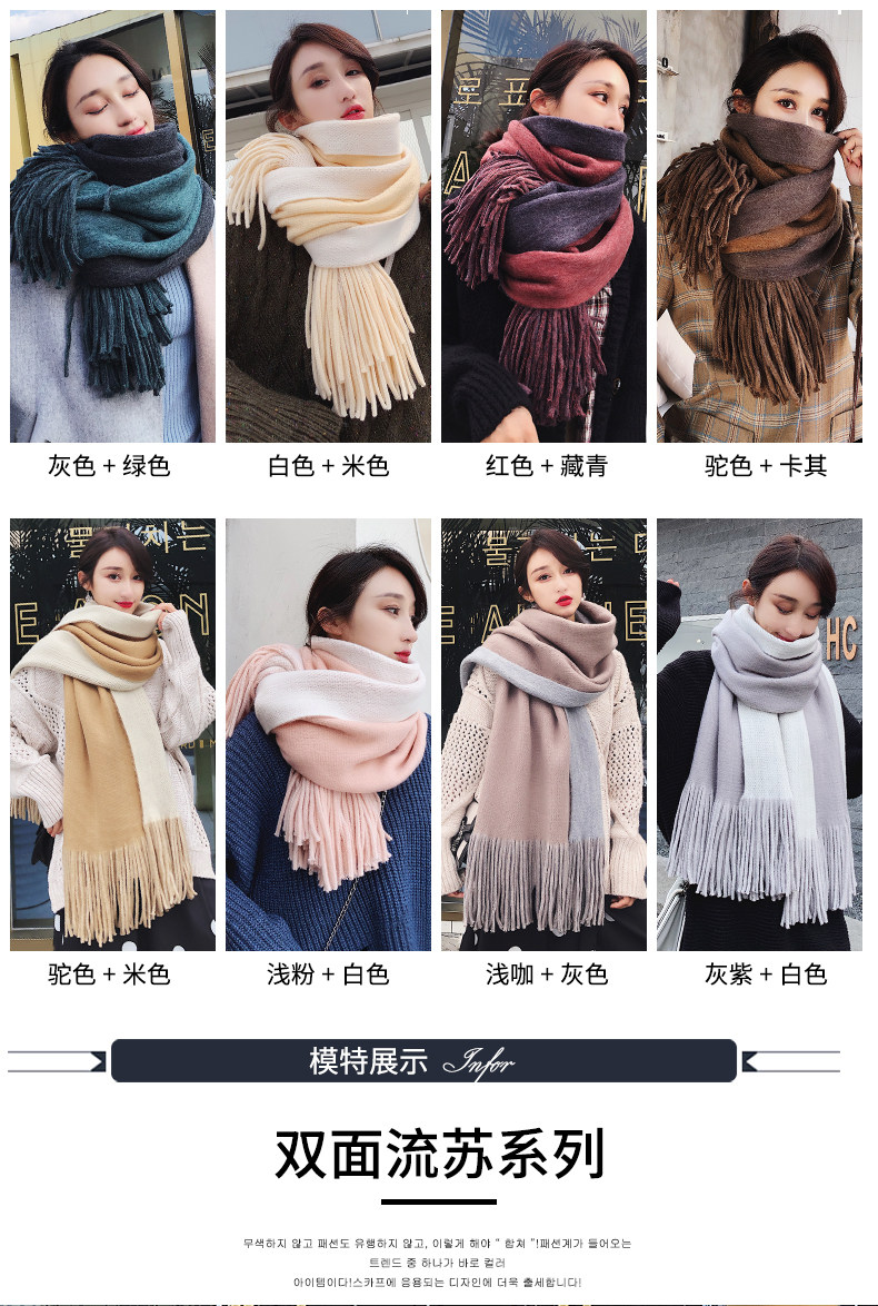 여성용 겨울 스카프 한국식 학생 양면 올 매치 이중 목적 두꺼운 따뜻한 숄 남성용 롱 울 니트 스카프
