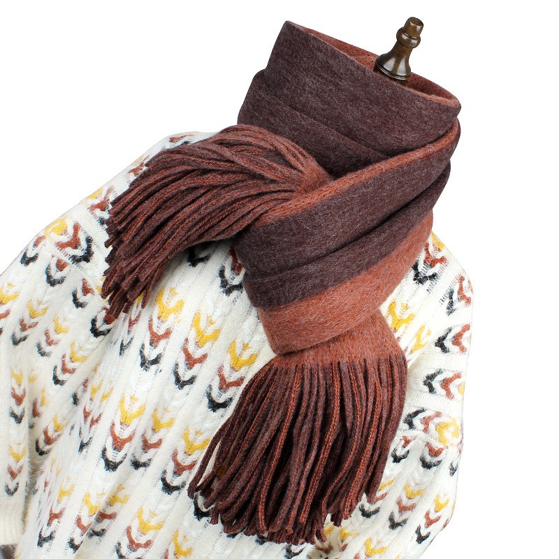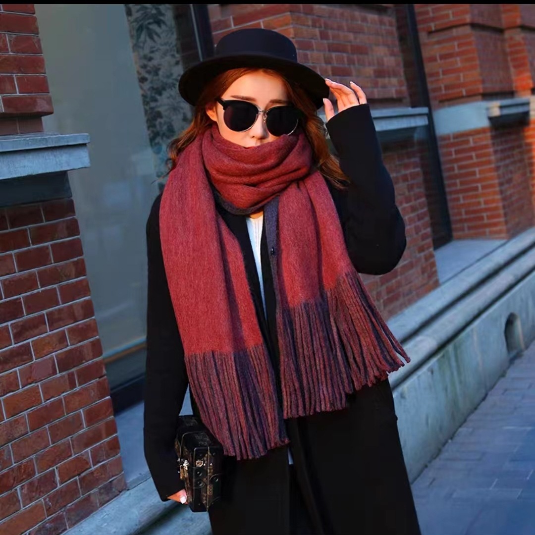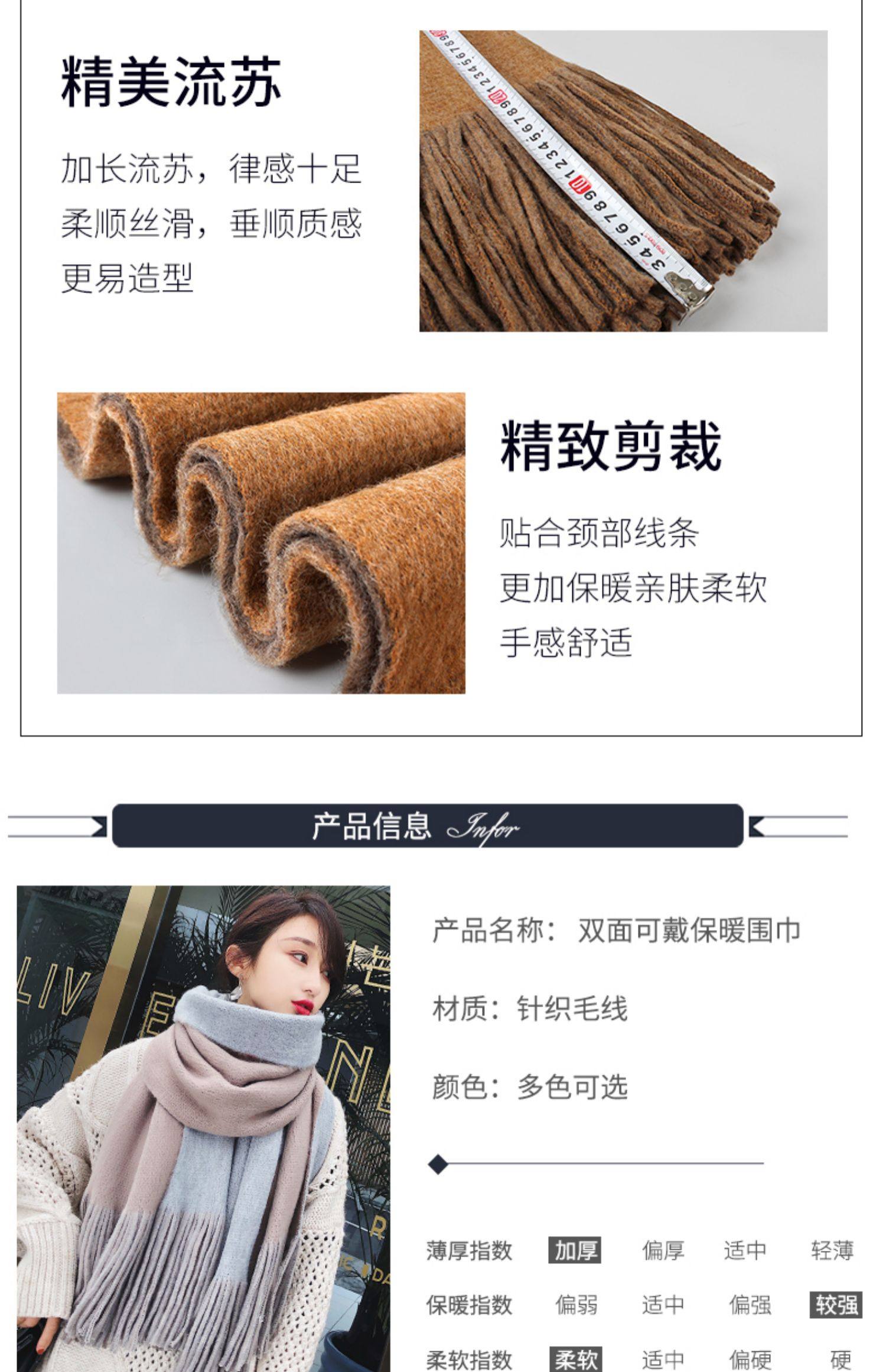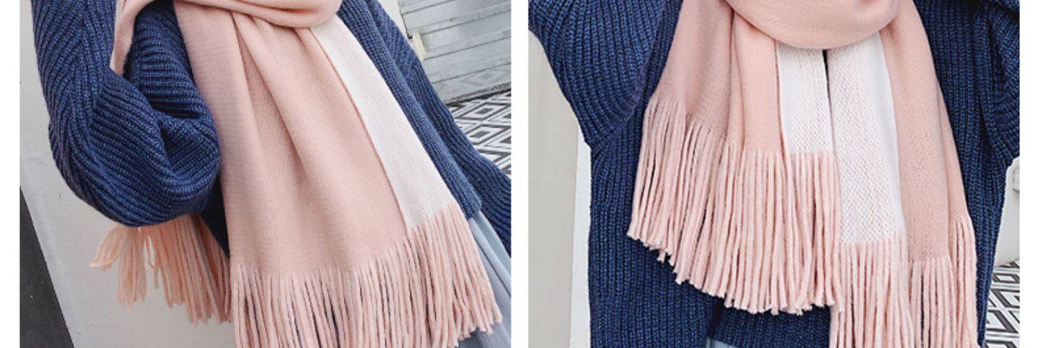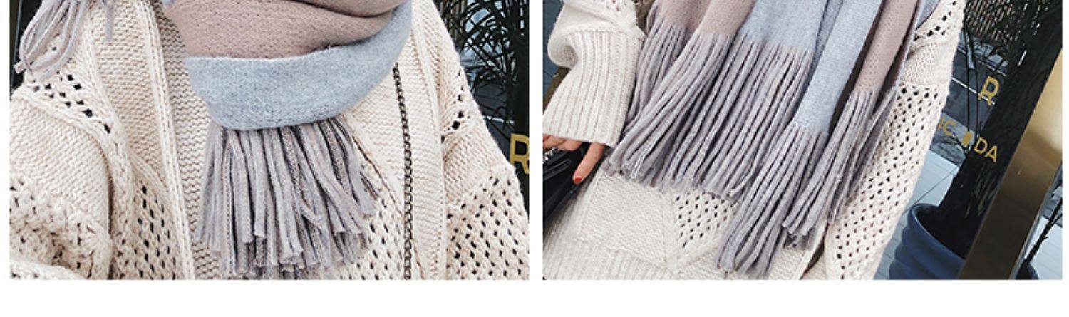여성용 겨울 스카프 한국식 학생 양면 올 매치 이중 목적 두꺼운 따뜻한 숄 남성용 롱 울 니트 스카프