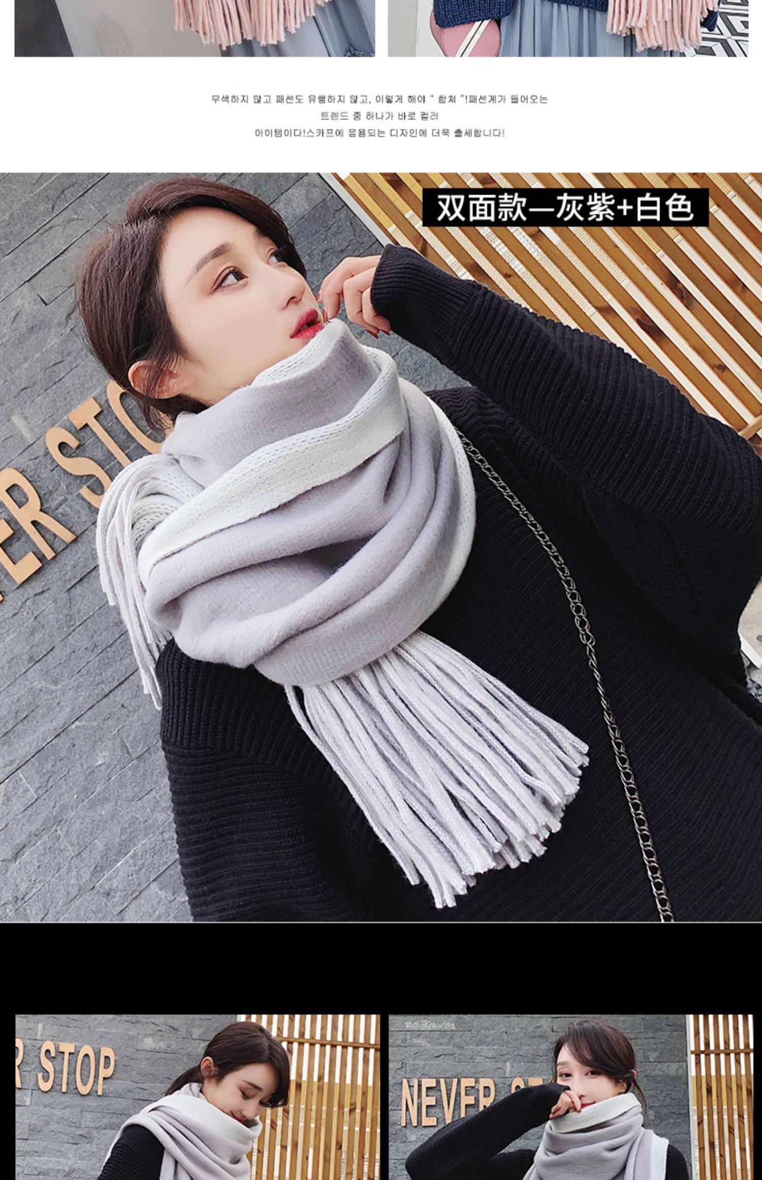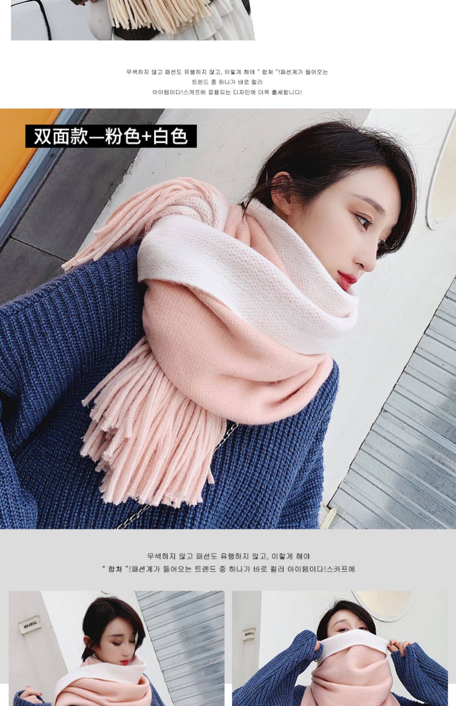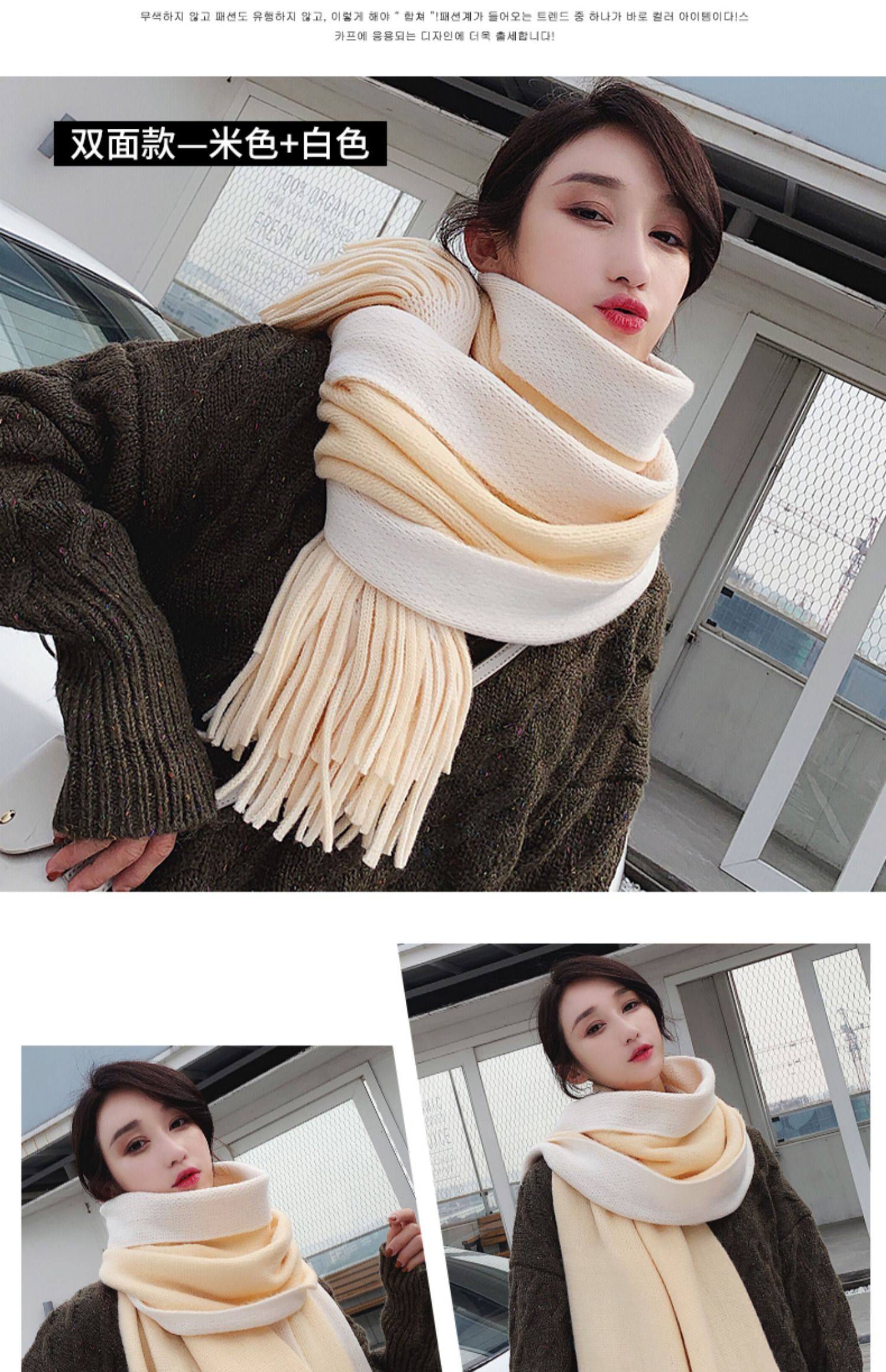 여성용 겨울 스카프 한국식 학생 양면 올 매치 이중 목적 두꺼운 따뜻한 숄 남성용 롱 울 니트 스카프스토어 가기