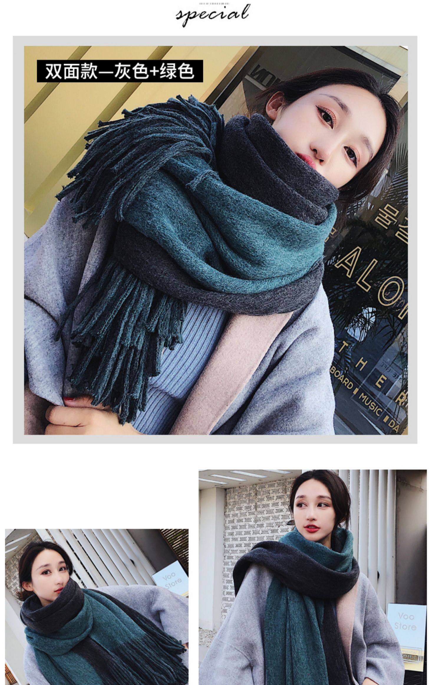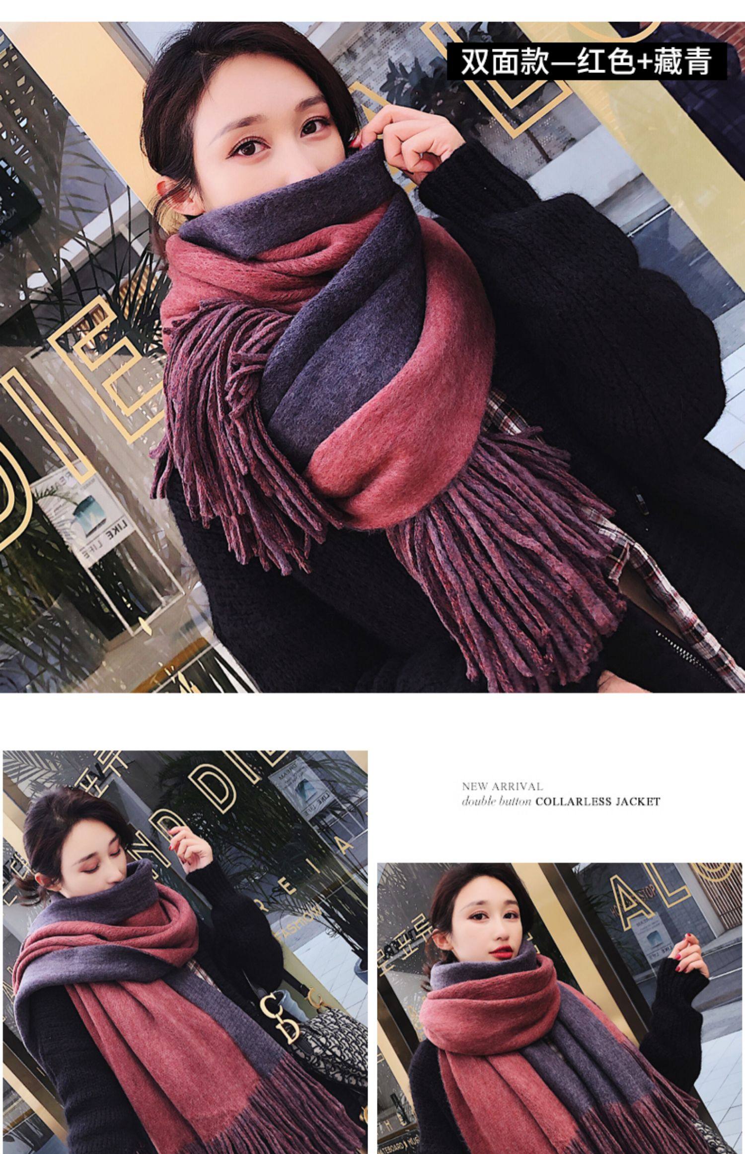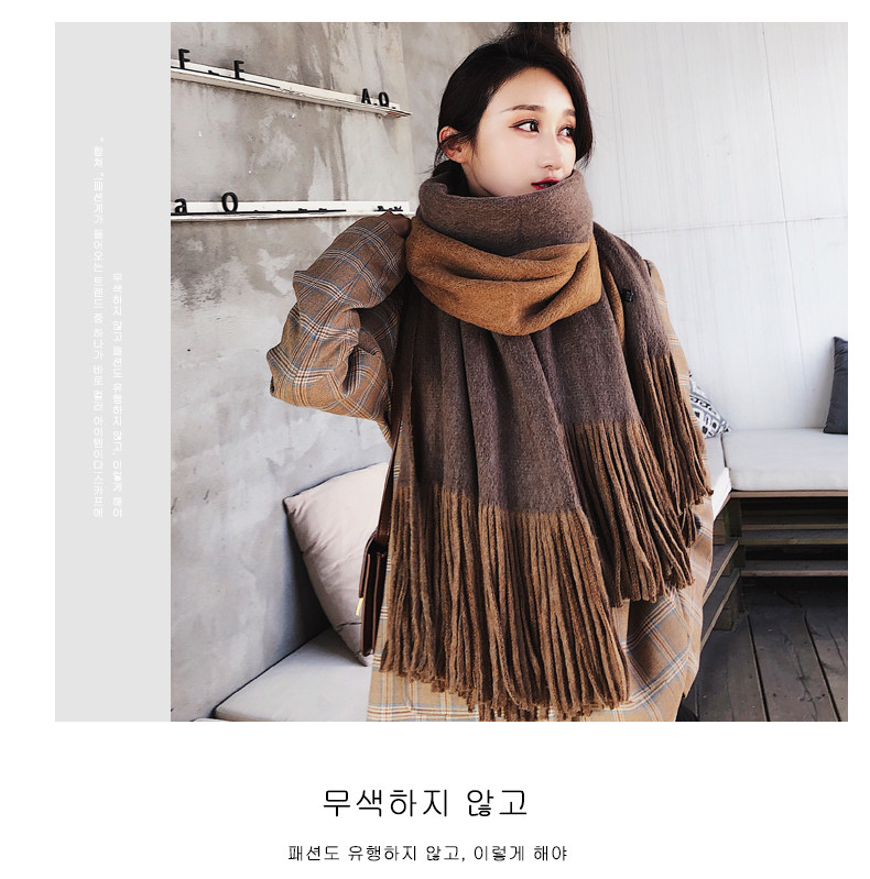 여성용 겨울 스카프 한국식 학생 양면 올 매치 이중 목적 두꺼운 따뜻한 숄 남성용 롱 울 니트 스카프스토어 가기
