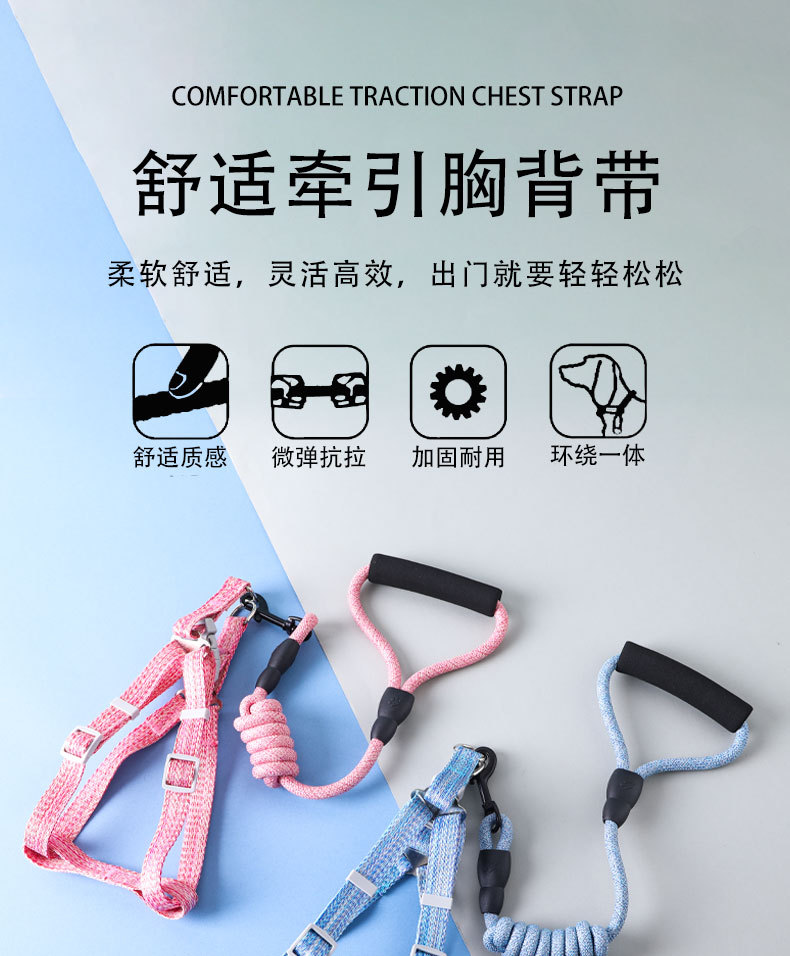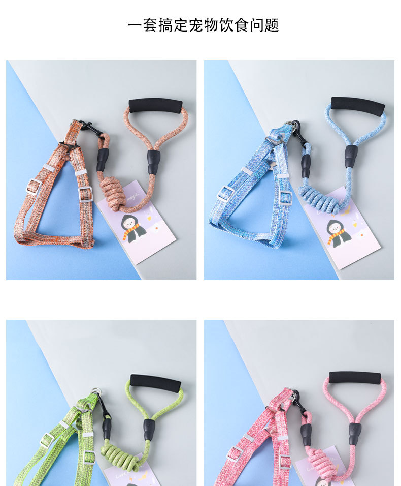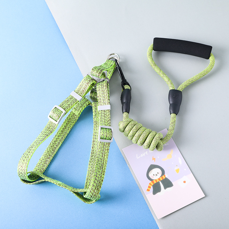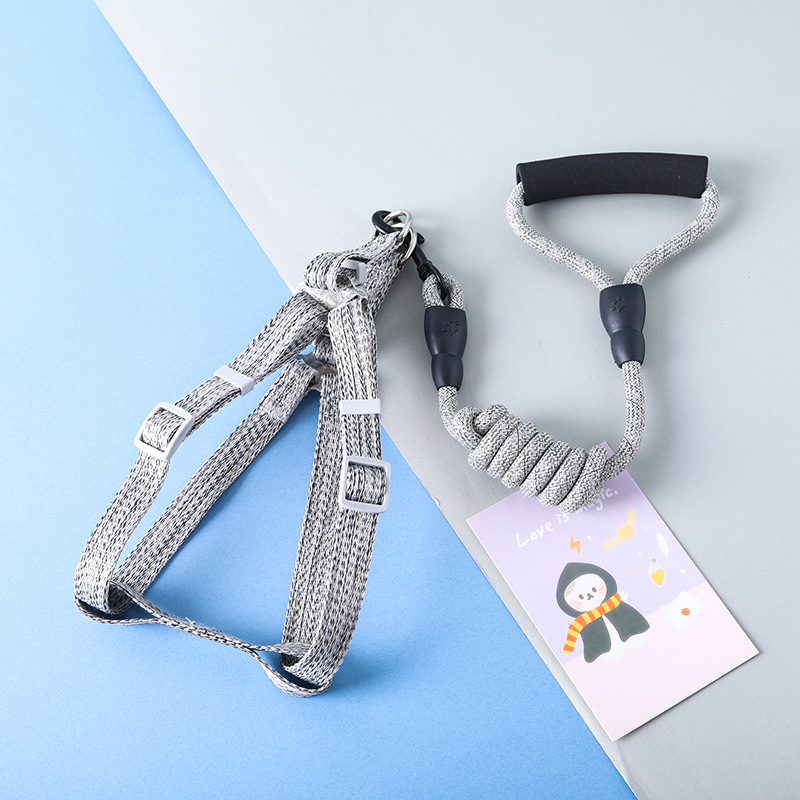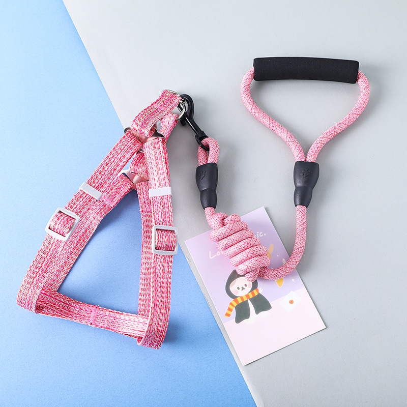 새로운 도매 애완 동물 제품 폼 핸들 모란디 린넨 라운드 로프 가슴 등 견인 벨트 개 견인 로프
