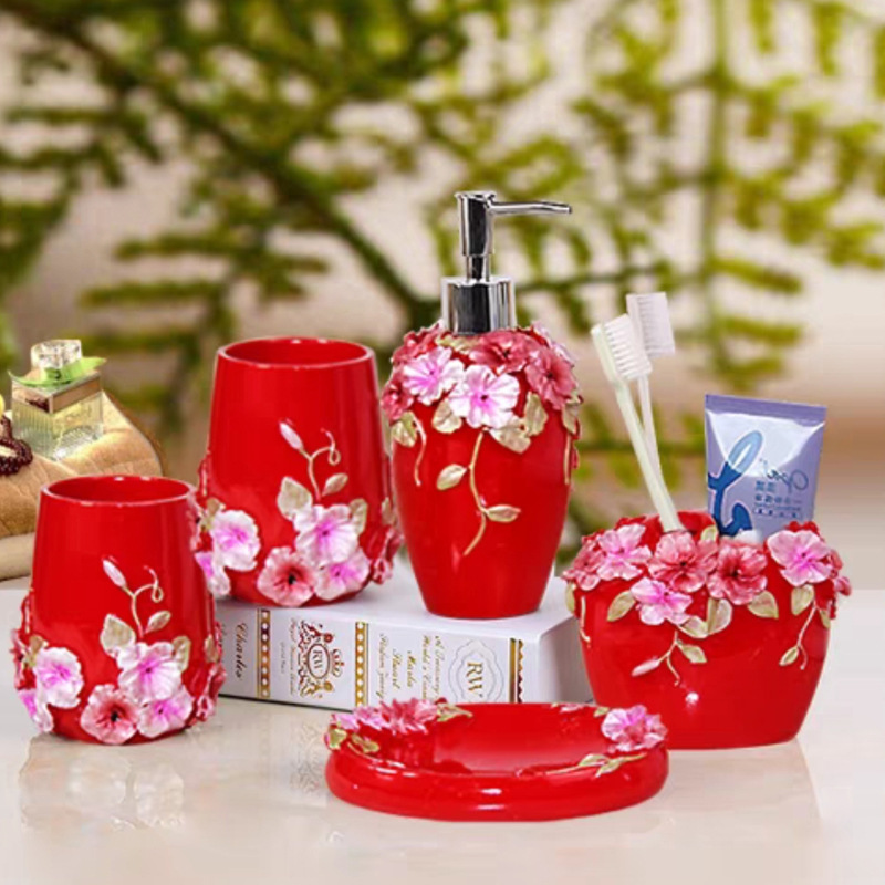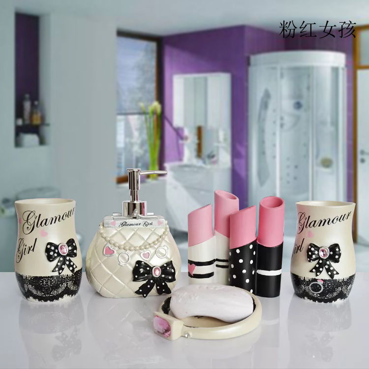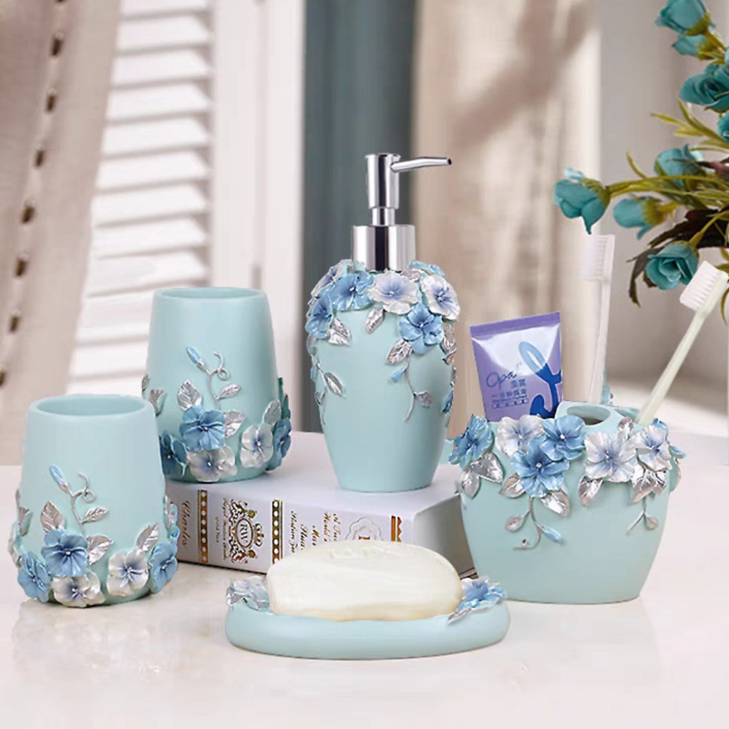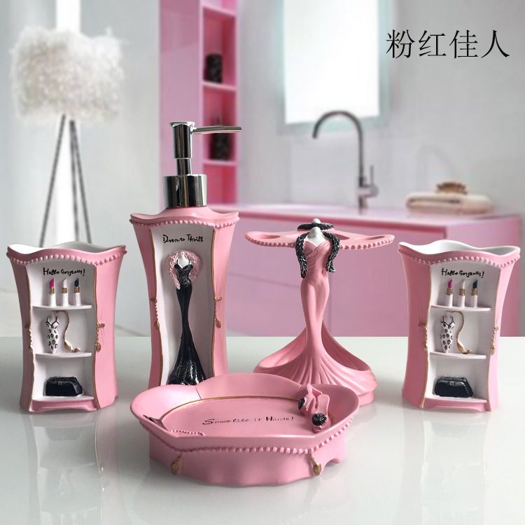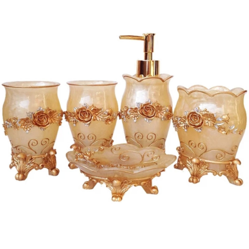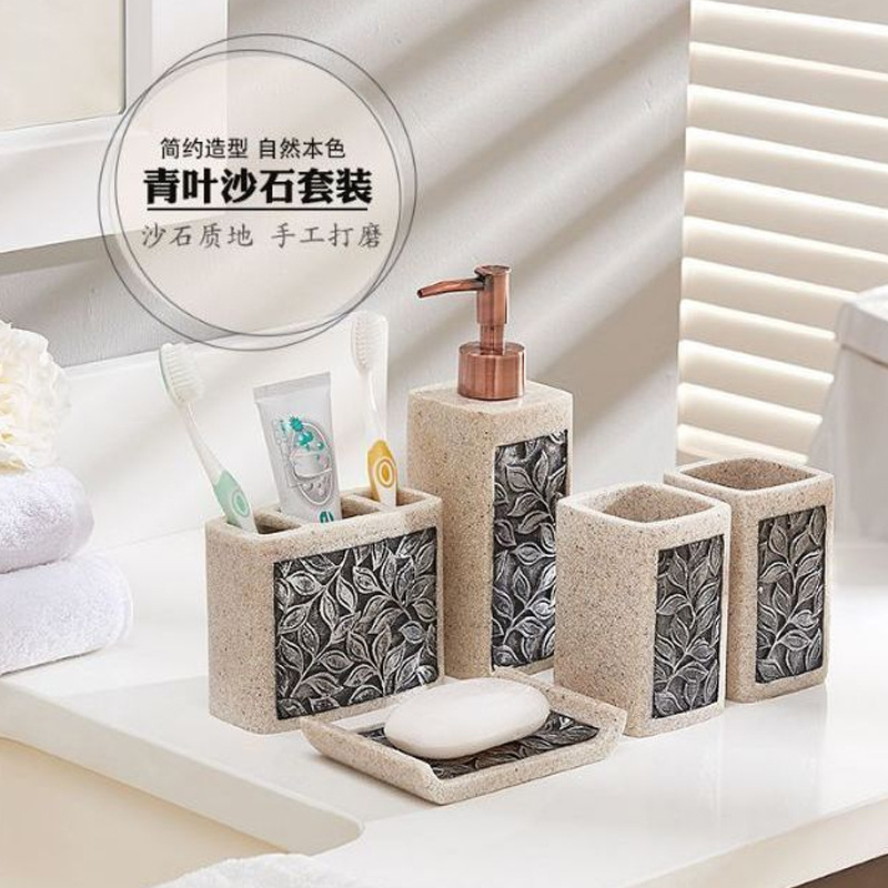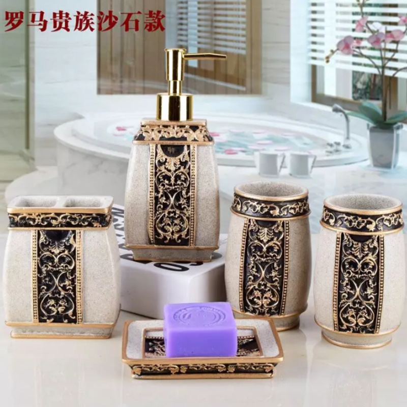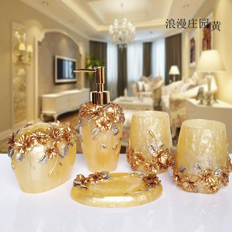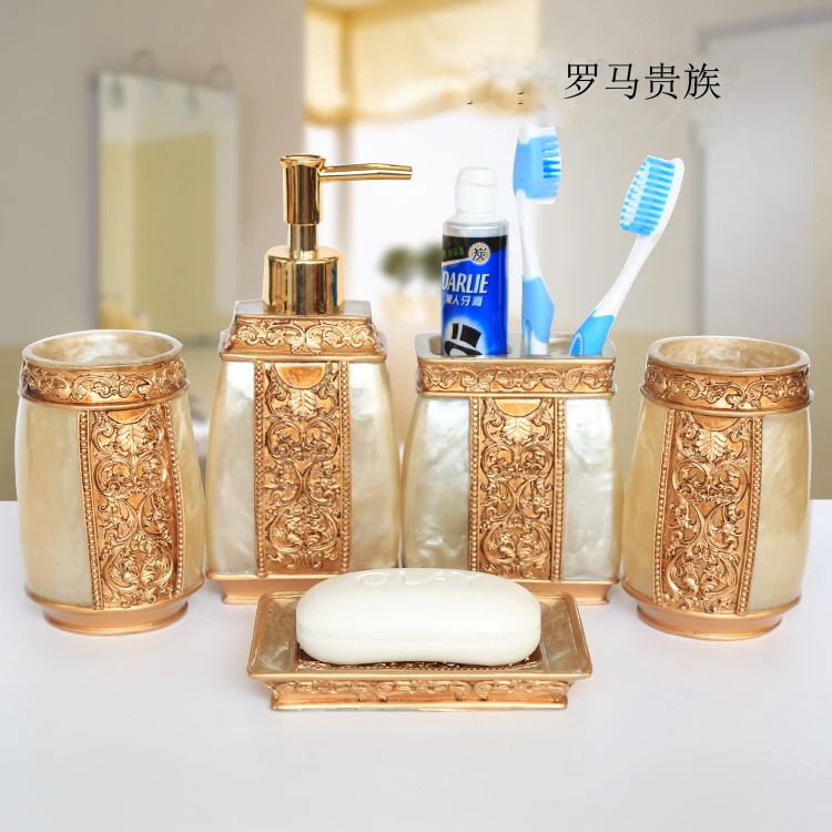 욕실 세차 세트 고급 욕실 장식품 빛 럭셔리 욕실 5 피스 칫솔 컵 세트 창조적 인 결혼 선물
