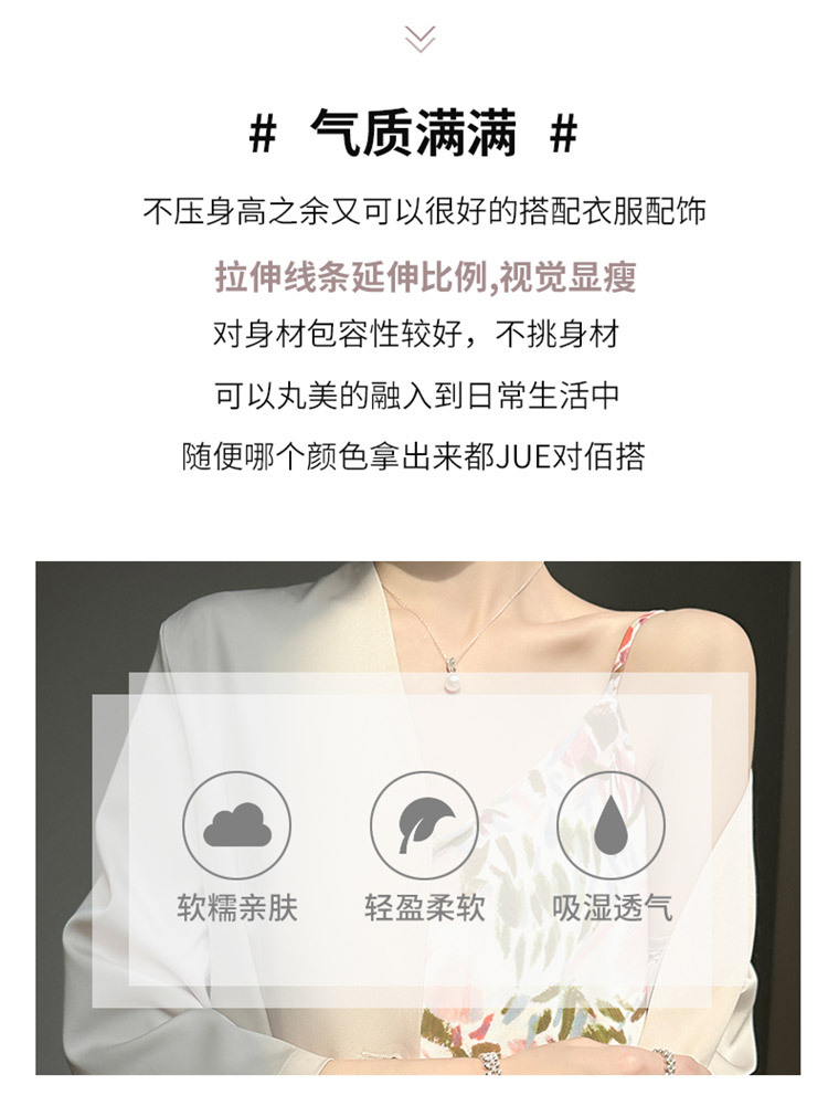 2023 신상품 화이트 칼라리스 봄과 가을 우아한 아세트산 새틴 7 소매 슬림 핏 짧은 작은 세트 재킷