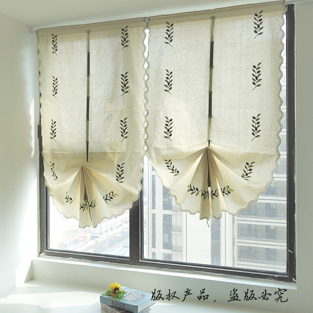 프랑스 스타일 라이트 럭셔리 반 차양 장식 커튼 올리브 가지 면 린넨 프릴 신선한 파티션 장식 블로우 커튼스토어 가기