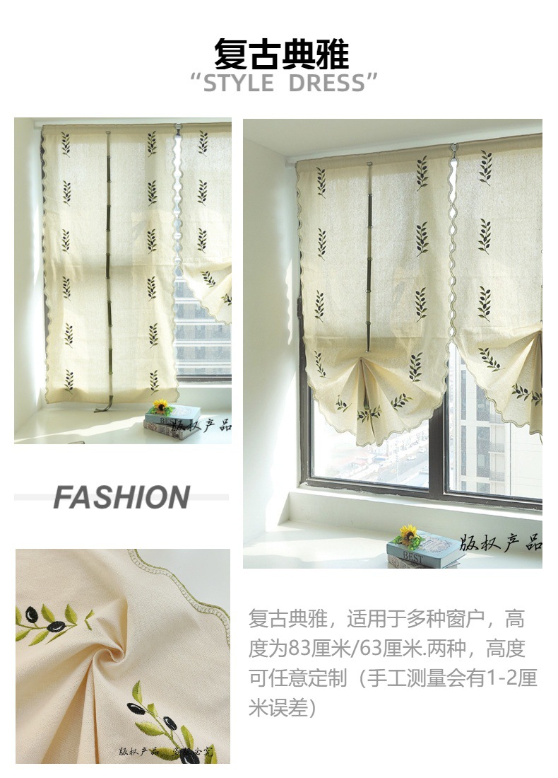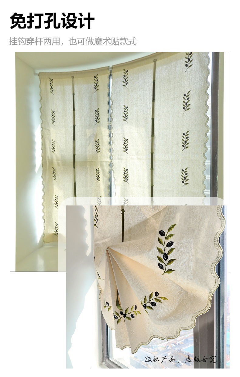 프랑스 스타일 라이트 럭셔리 반 차양 장식 커튼 올리브 가지 면 린넨 프릴 신선한 파티션 장식 블로우 커튼