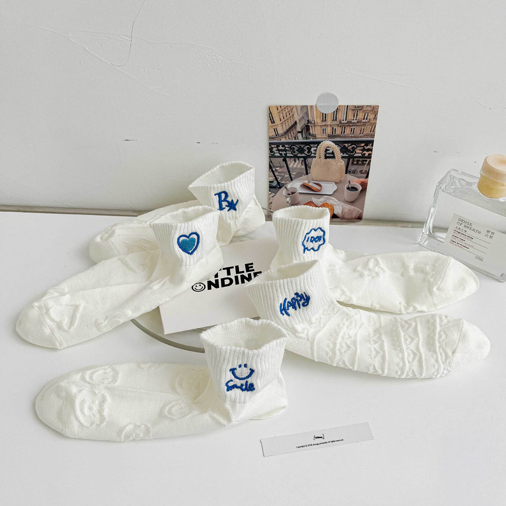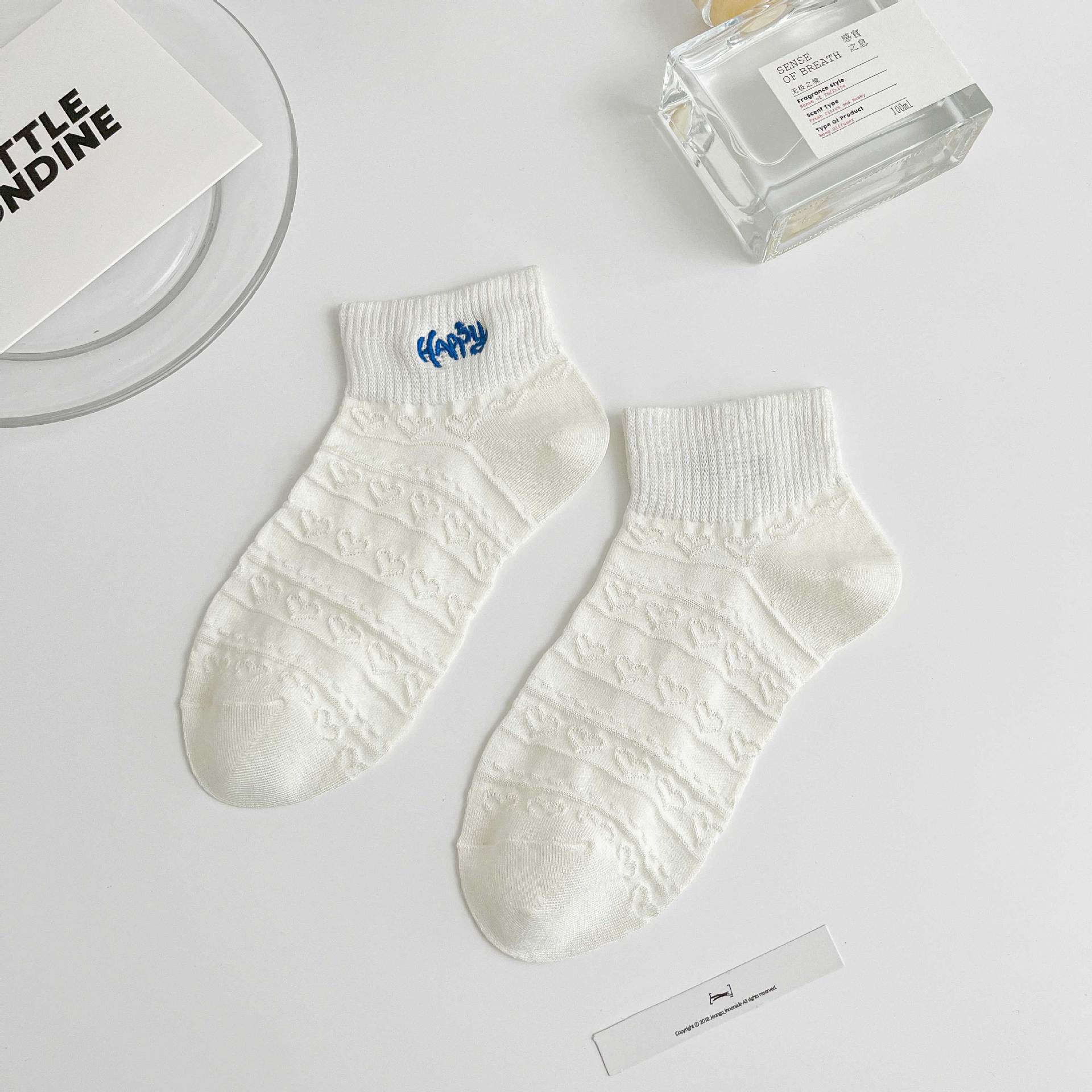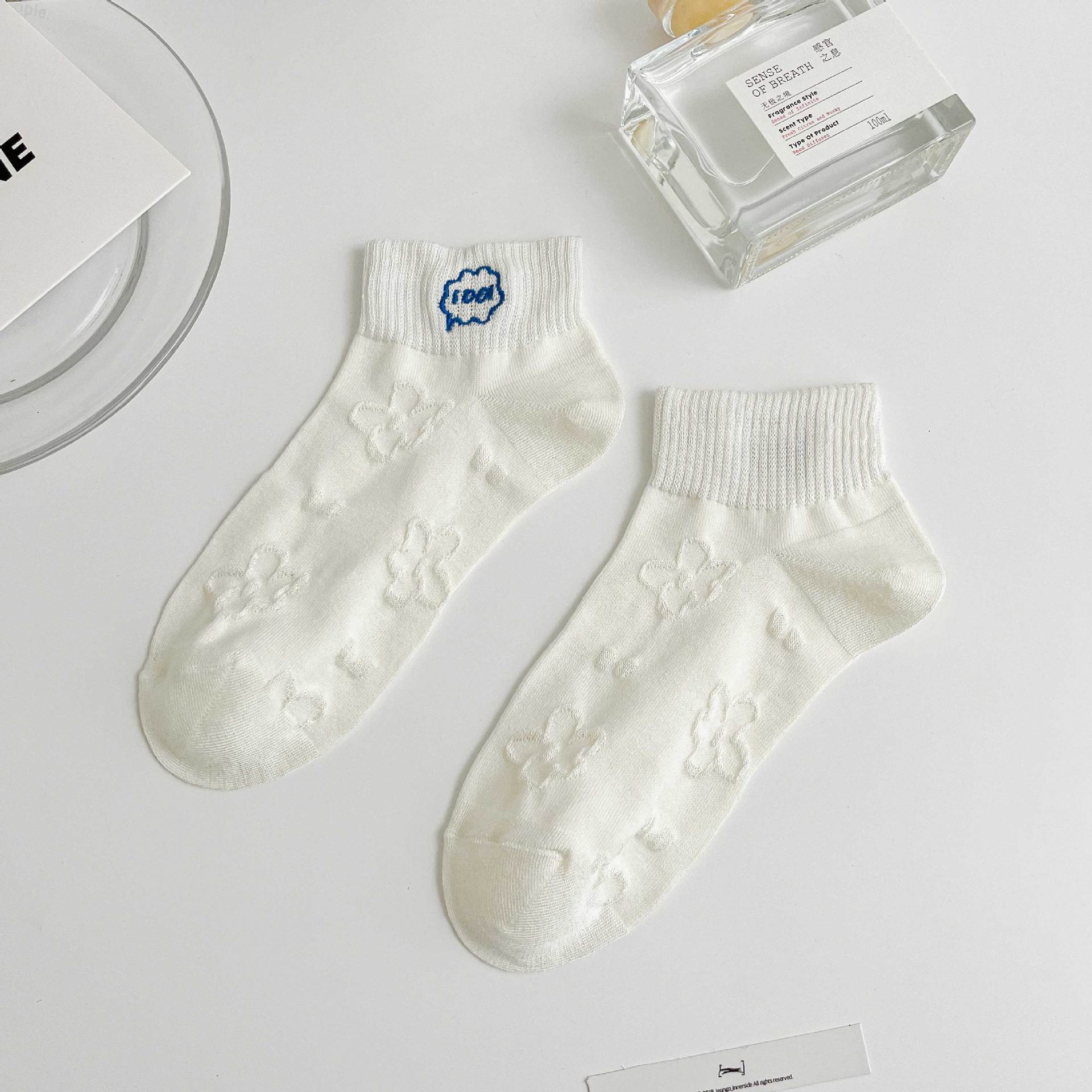 신선한 짧은 튜브 양말 간단한 숙녀 양말 자수 23 년 봄과 여름 통기성 메쉬 양말 숙녀 면화 양말 도매스토어 가기