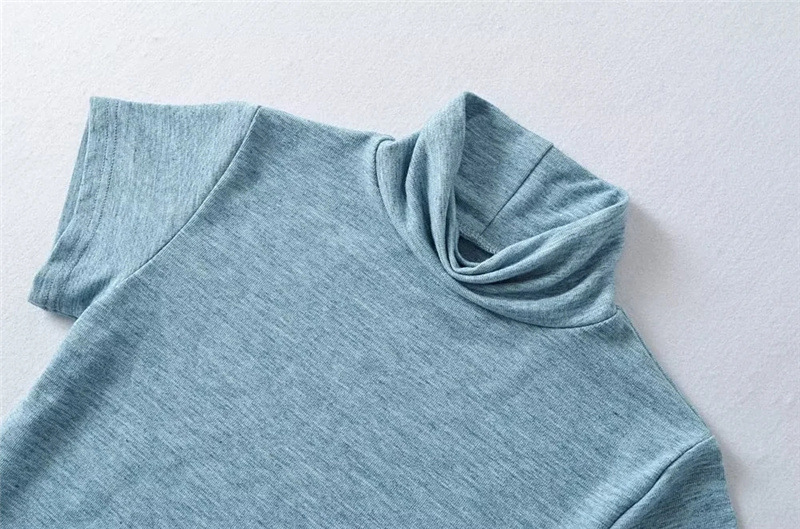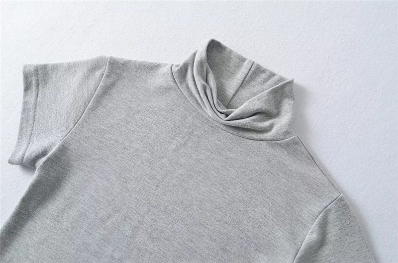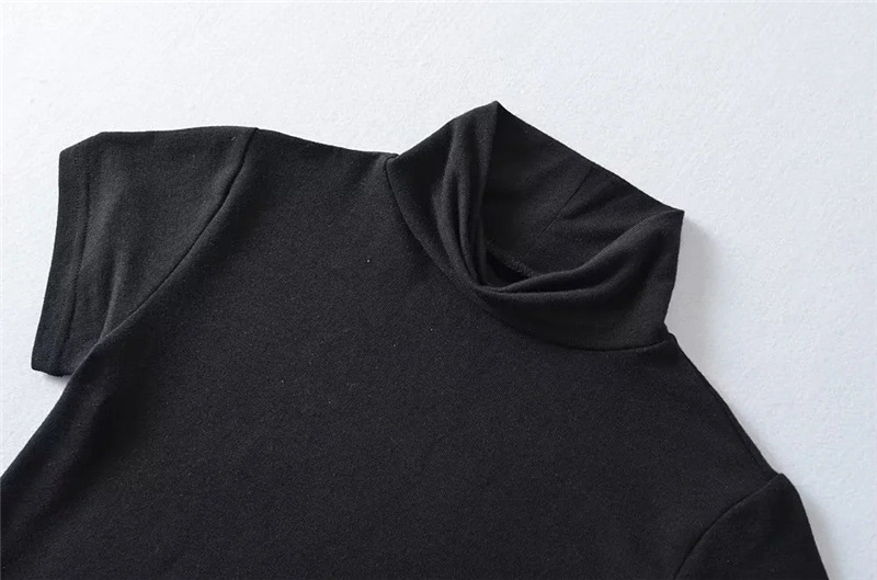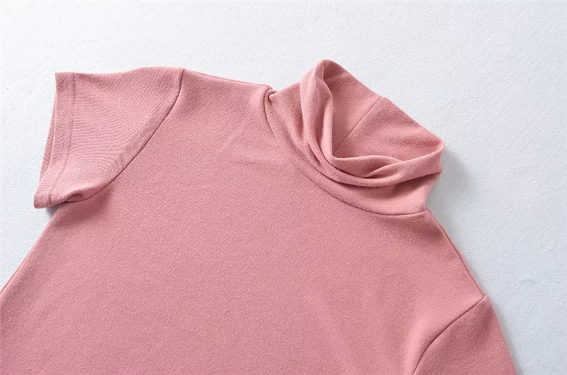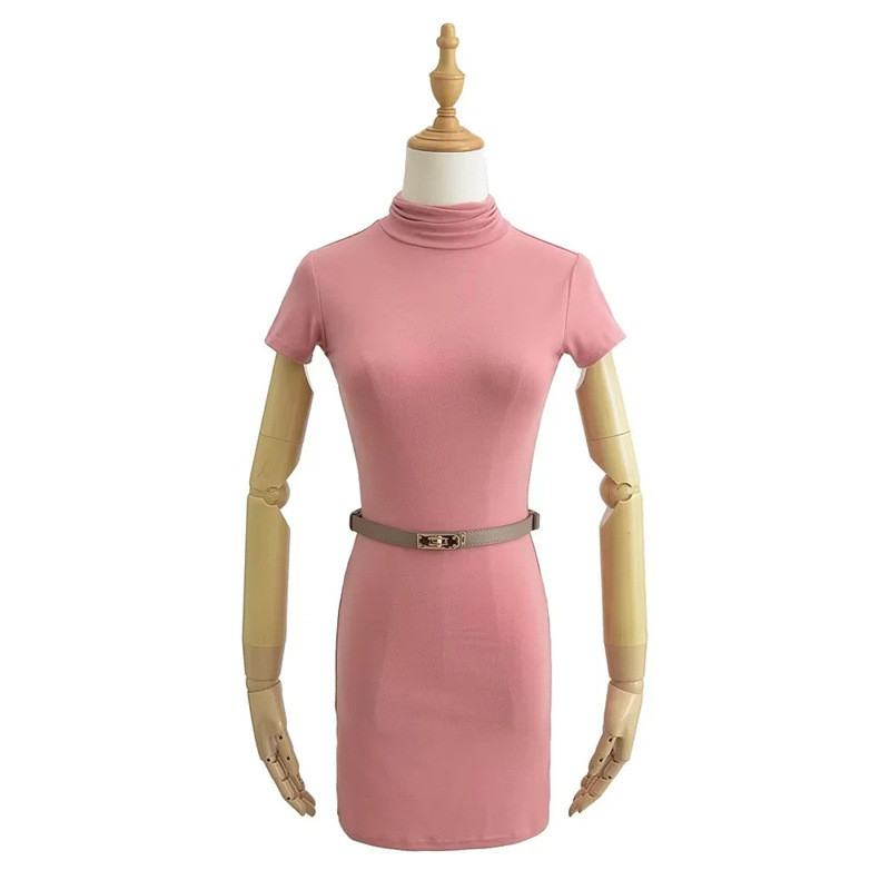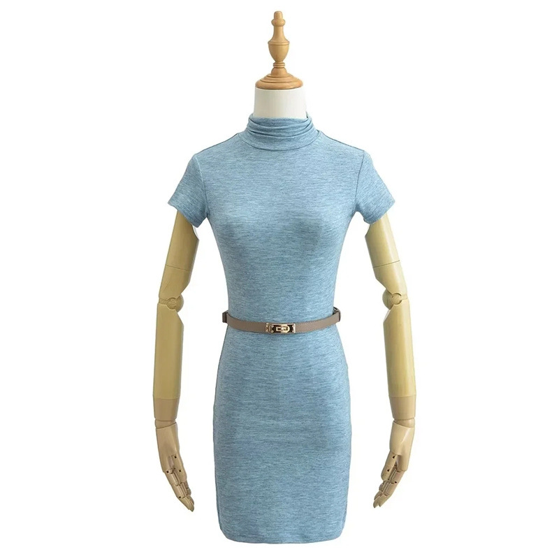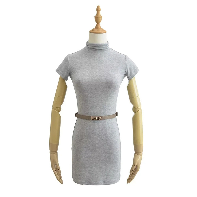 순수한 욕망 스타일 꽉 엉덩이 하이 넥 짧은 소매 원피스 벨트 슬림 핏 슬리밍 단색 향신료 소녀 기본 스커트