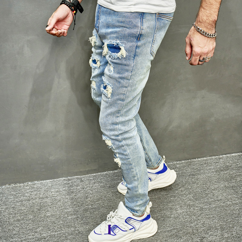국경 간 대외 무역 데님 미국 하이 스트리트 패션 브랜드는 슬림 핏 스키니 탄성 청바지 남성용 슬림 핏