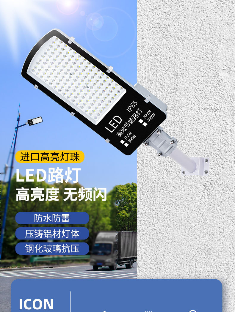 야밍 led 가로등 머리 야외 정원 램프 방수 새로운 농촌 도로 도시 전신 폴 팔 가로등 100w스토어 가기
