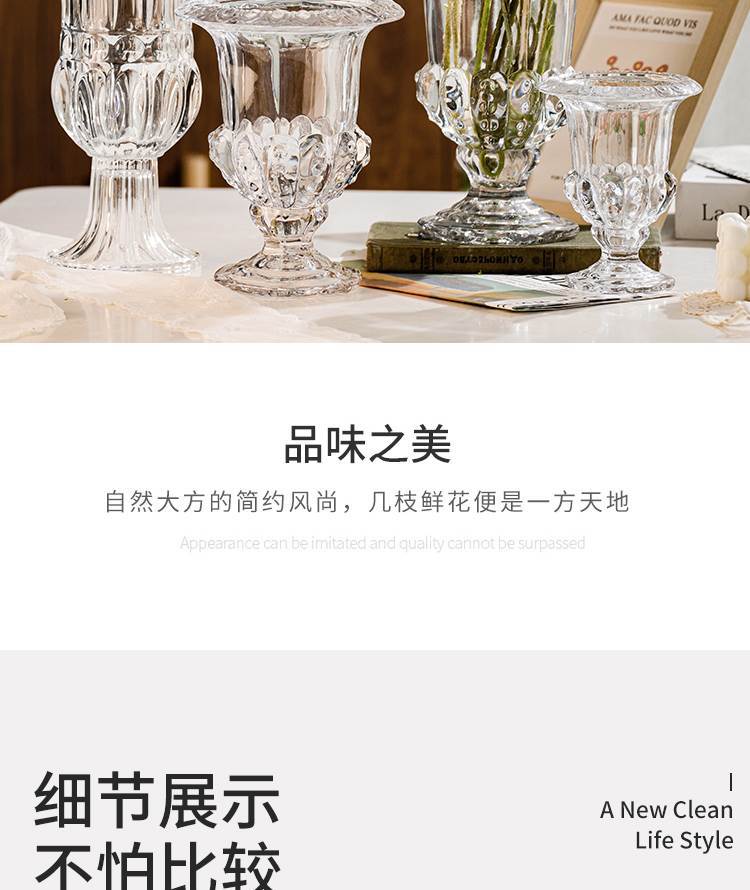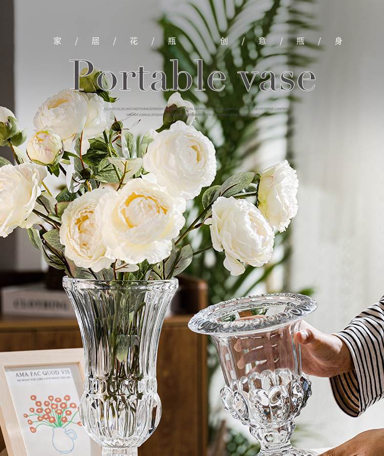 빈티지 크리에이 티브 엔트리 럭셔리 윈드 램프 높은 다리 유리 꽃병 투명 크리스탈 꽃 배열 홈스테이 장식품에 로마 꽃병스토어 가기