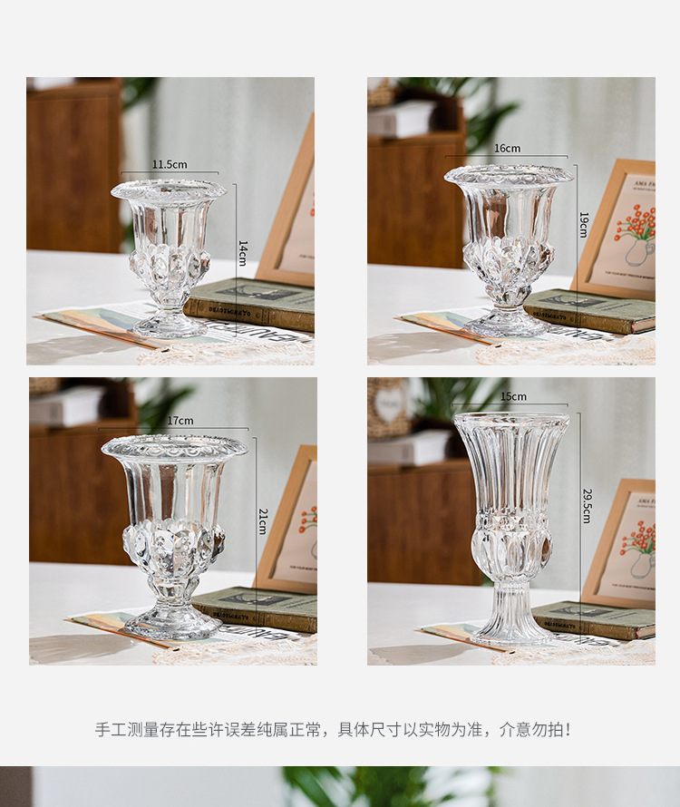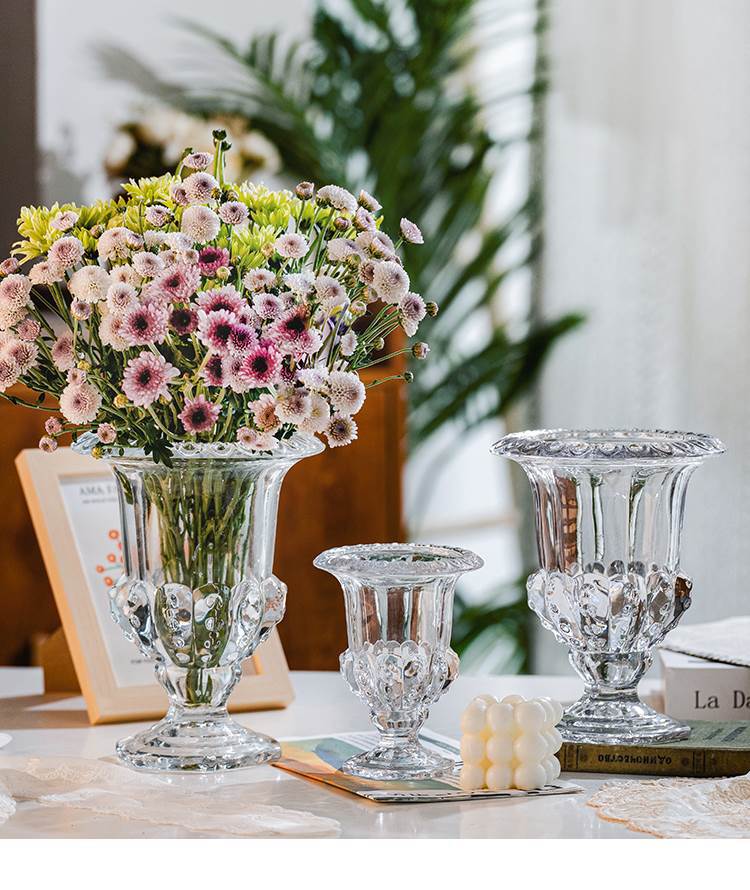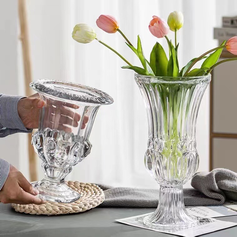 빈티지 크리에이 티브 엔트리 럭셔리 윈드 램프 높은 다리 유리 꽃병 투명 크리스탈 꽃 배열 홈스테이 장식품에 로마 꽃병