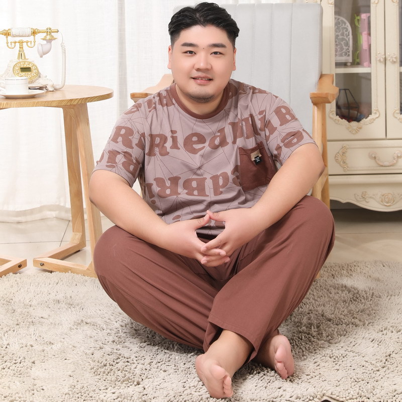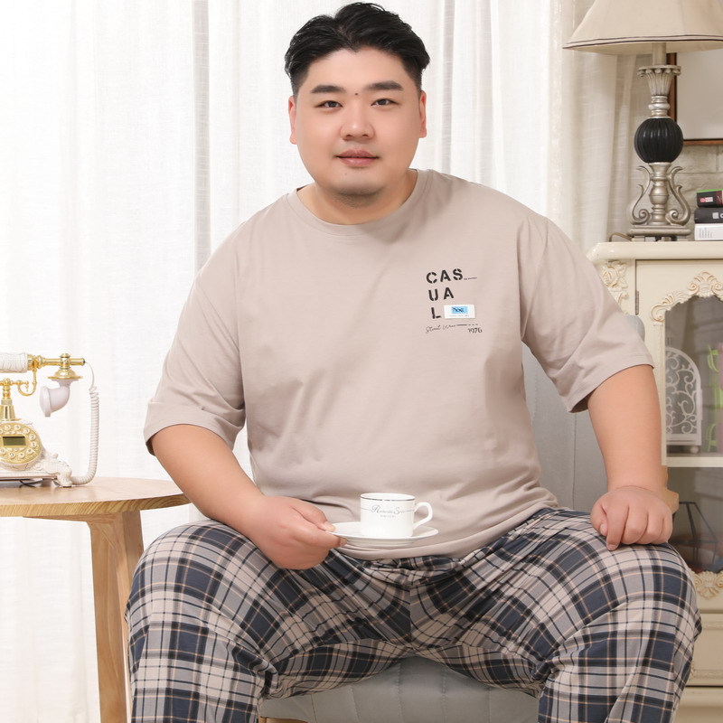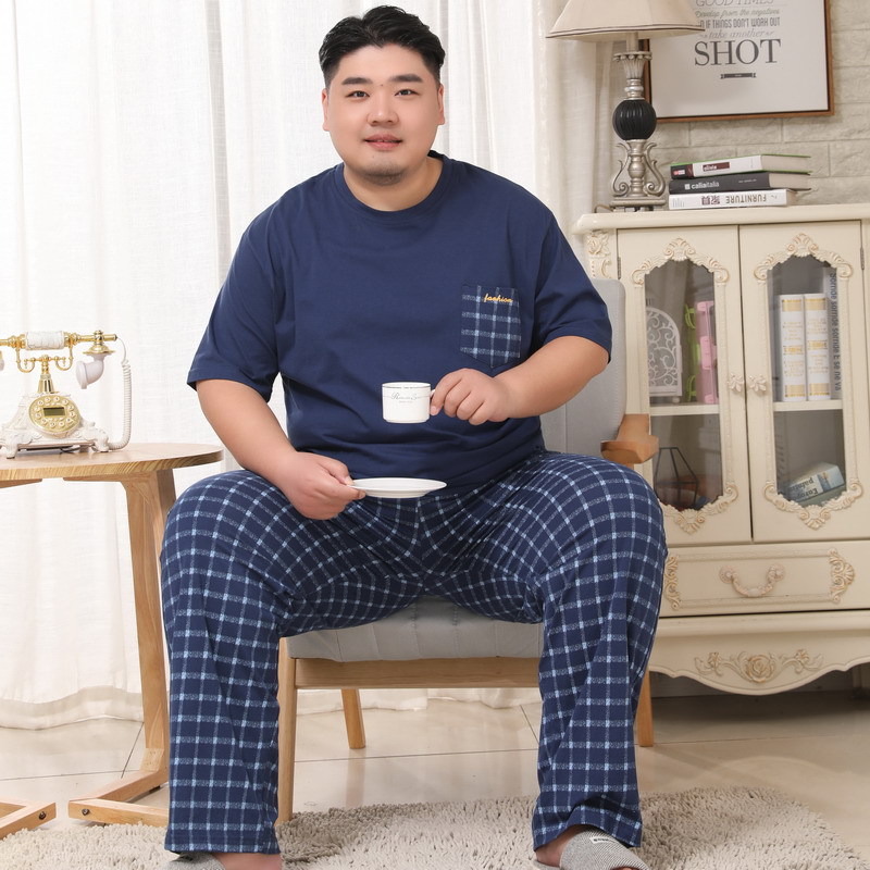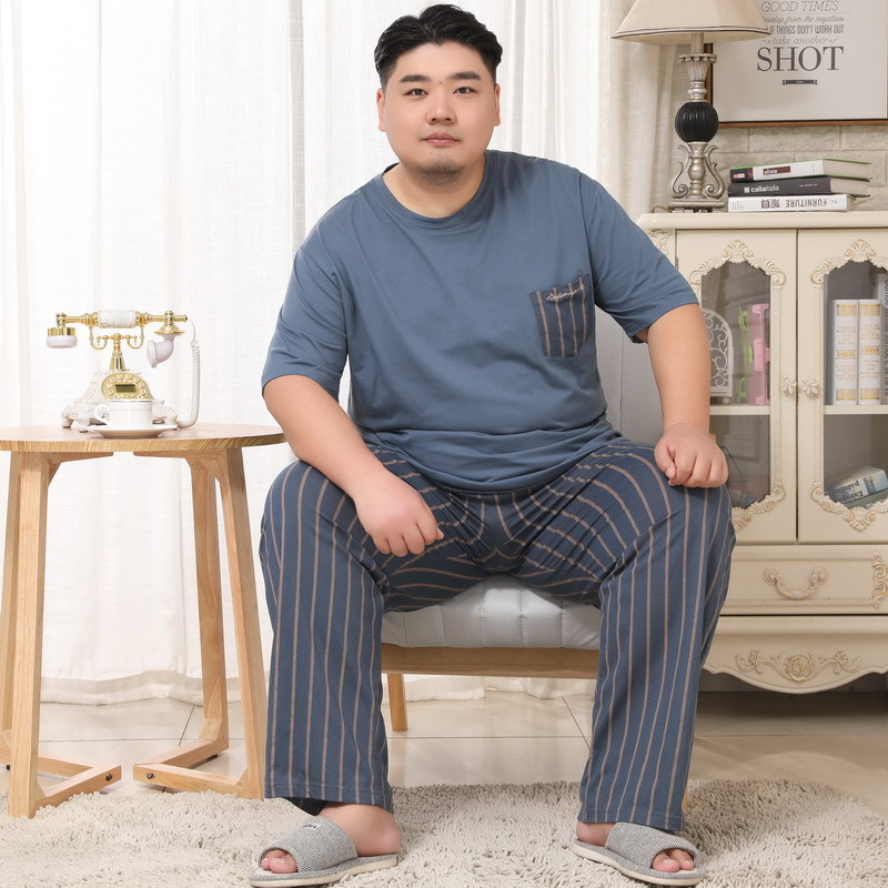 메이지 윤 남자의 순면 라운드 넥 짧은 소매 바지 잠옷 5XL 플러스 지방 플러스 세트