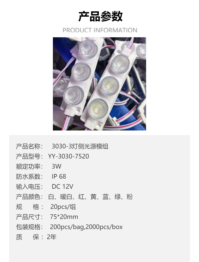 LED 사출 성형 모듈 3등 측면 광원 3W 방수 고휘도 12V 양면 라이트 박스 초박형 라이트 박스 LED 라이트 스트립
