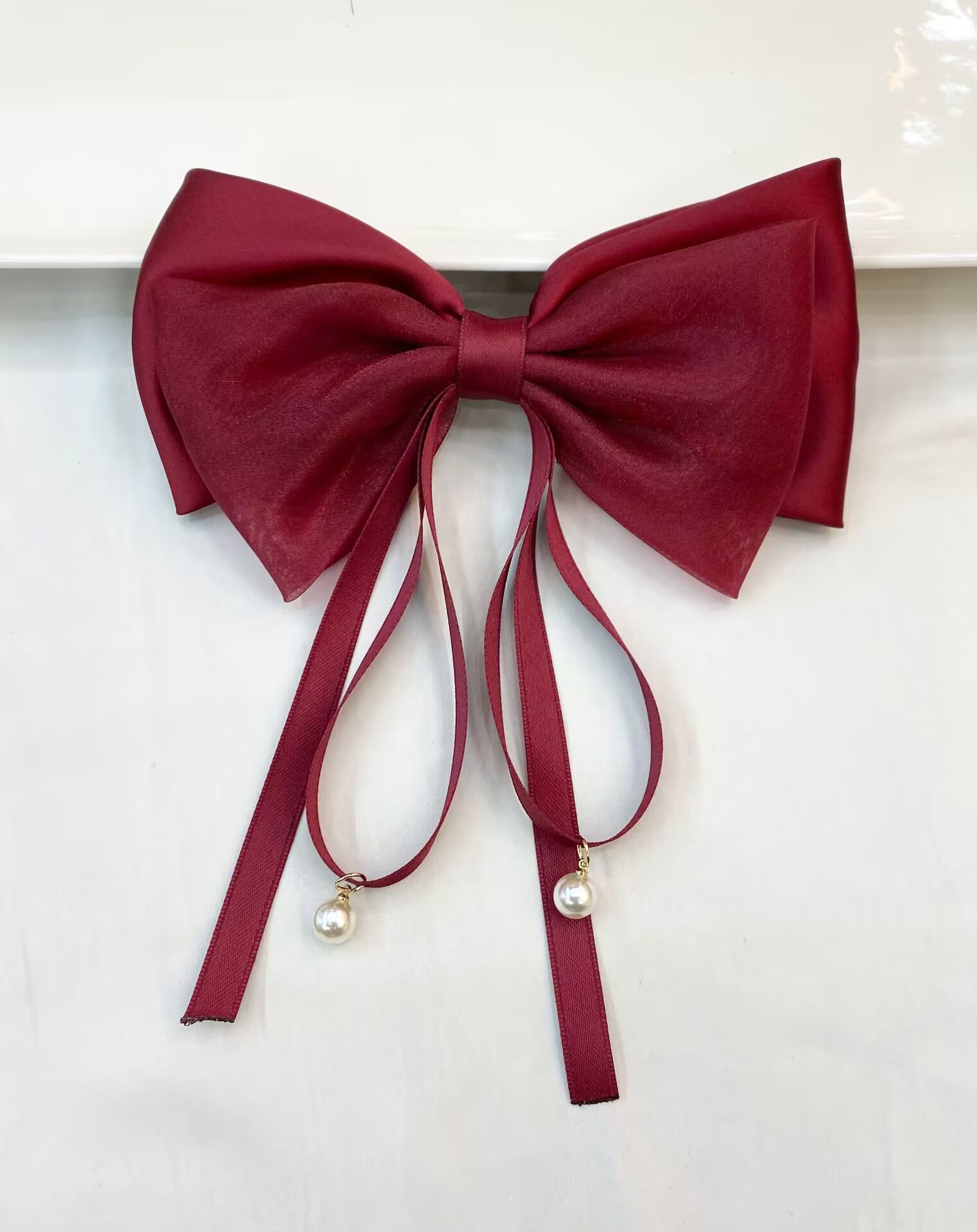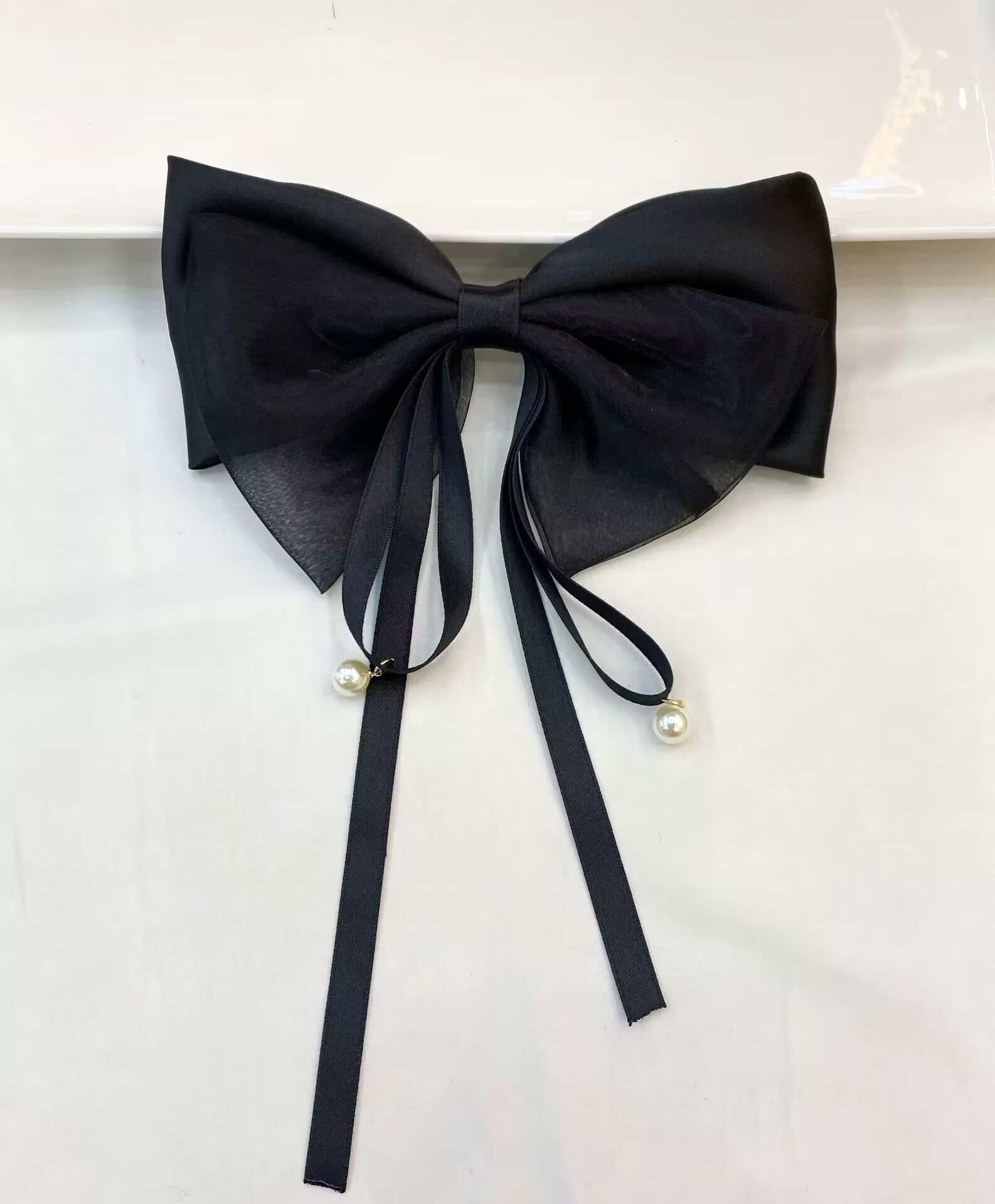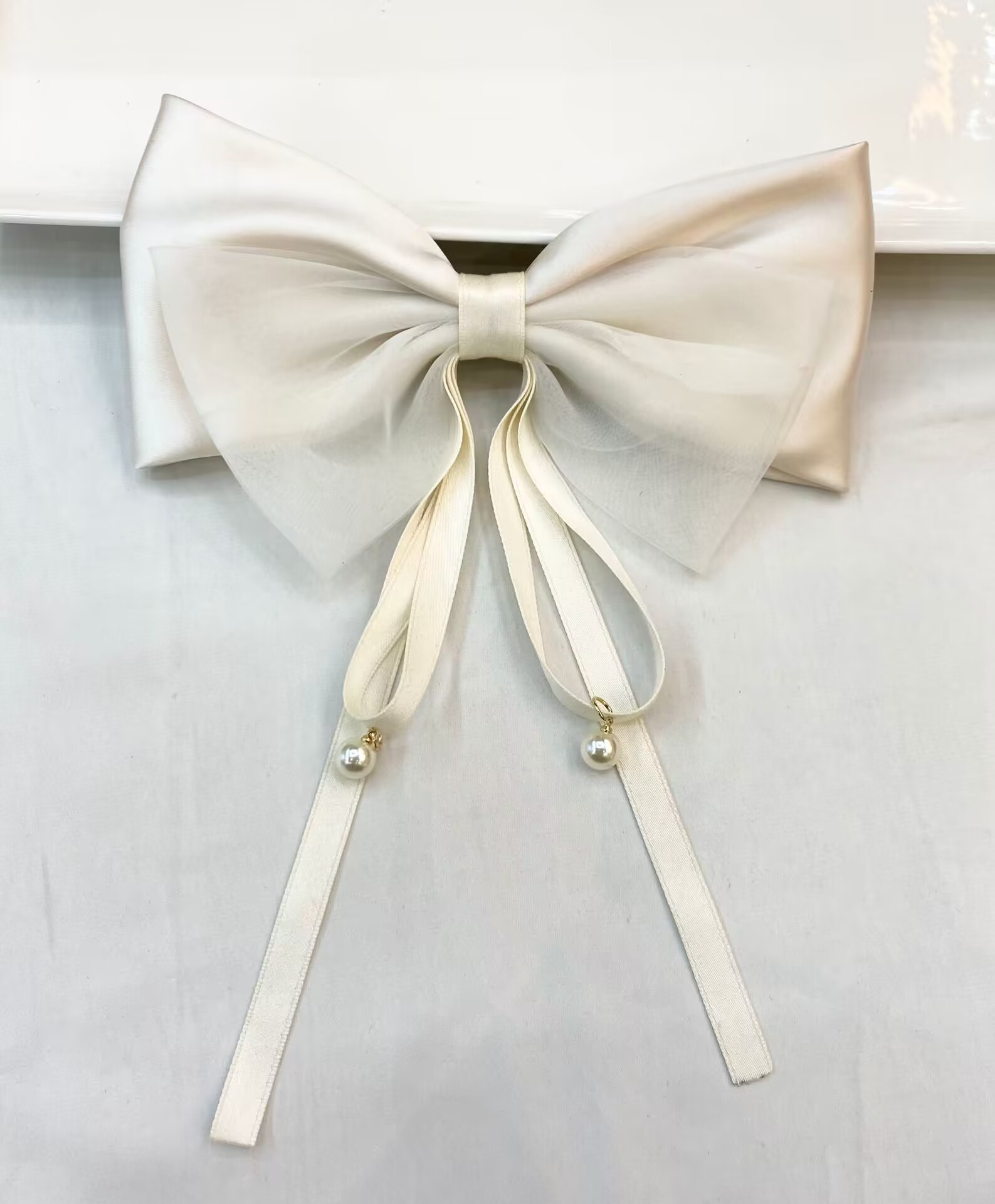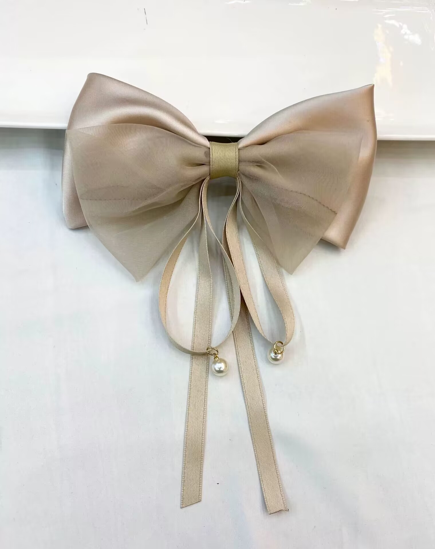한국 여자 슈퍼 요정 모리 실크 리본 헤어핀 봄 클립 뒤로 머리 상단 클립 기질 큰 활 클립