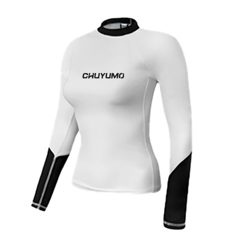 • WCY041 수영복 화이트와 블랙 소매 라운드넥