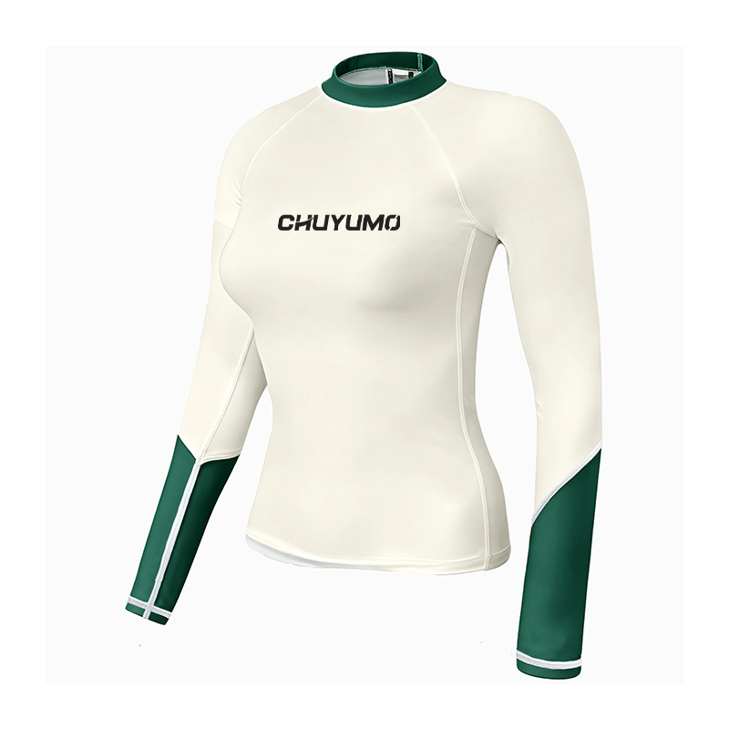 • WCY026 수영복 베이지 그린 소매 라운드넥