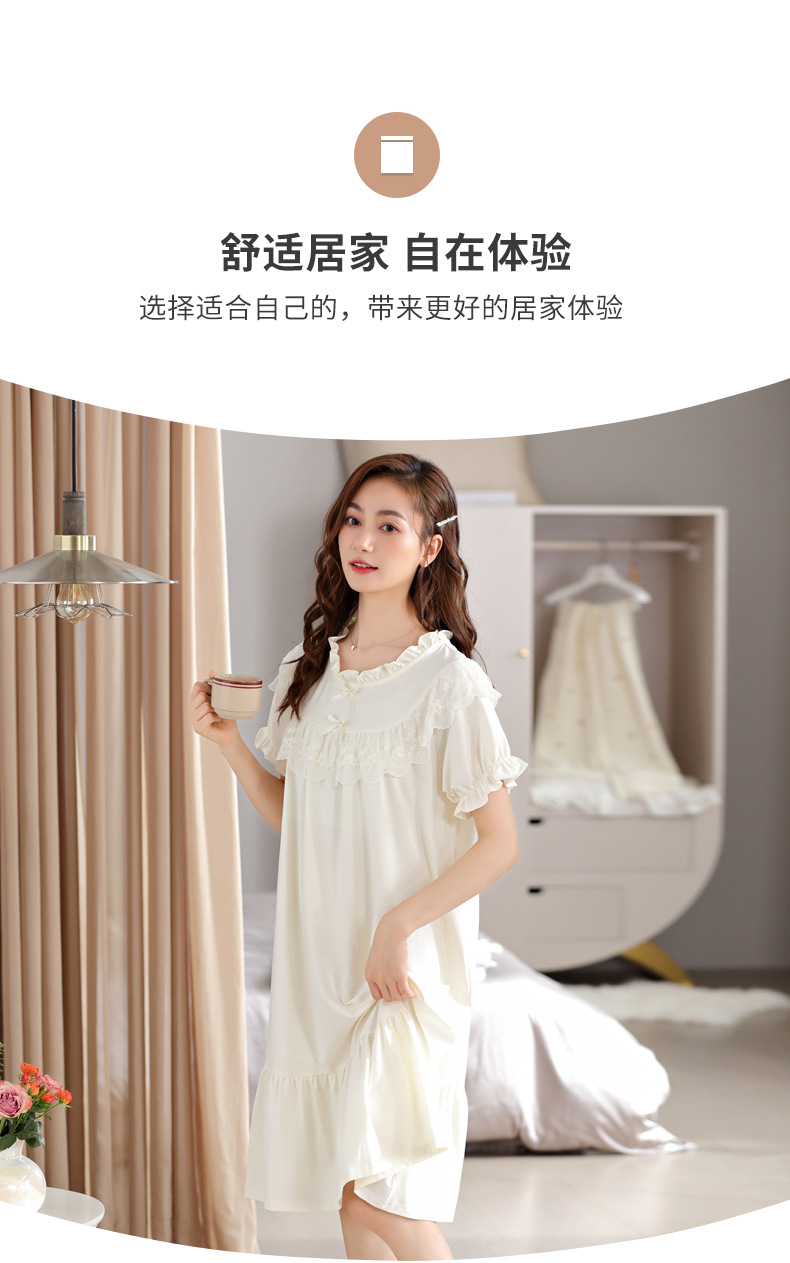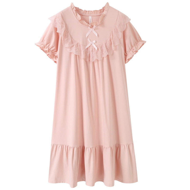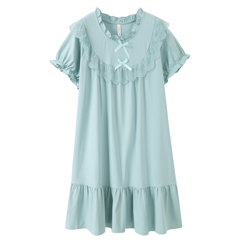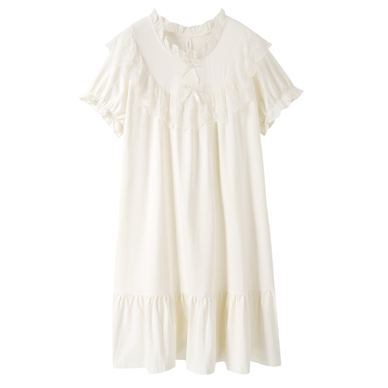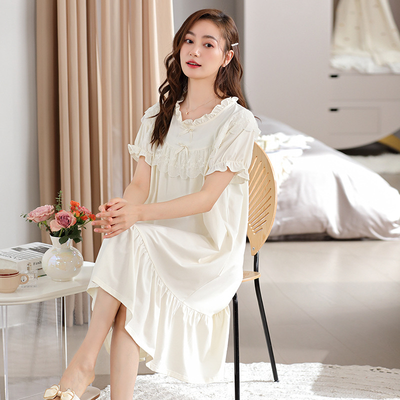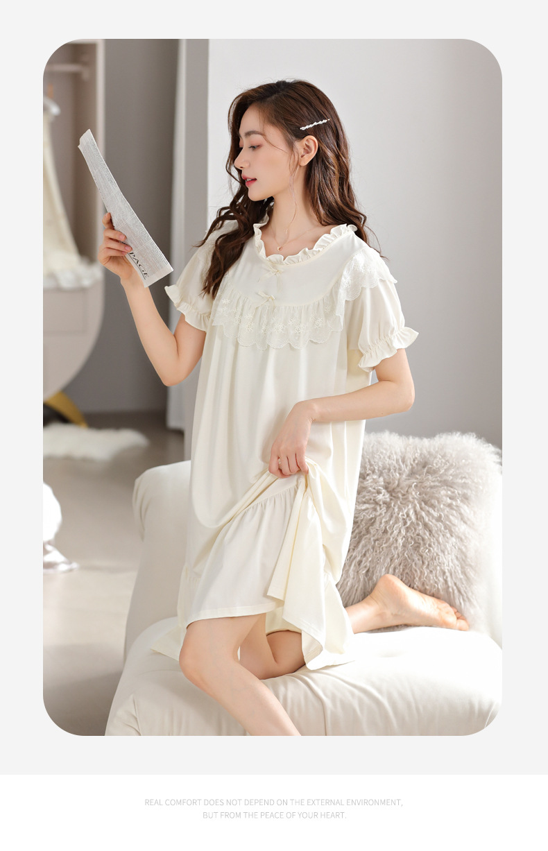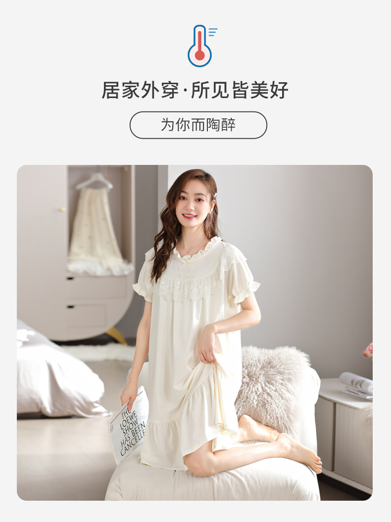 잠옷 여자의 여름 궁전 스타일 하이 엔드 얇은 시원한 면 아웃웨어 공주 스타일 여자의 가정 옷 긴 원피스스토어 가기