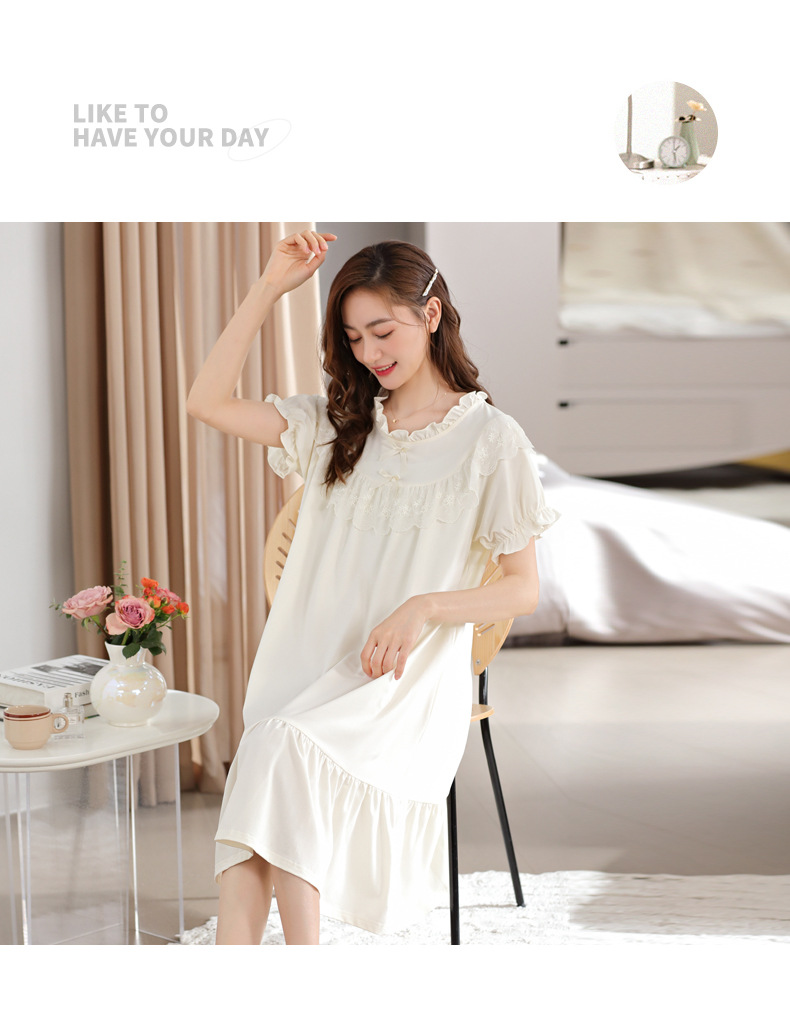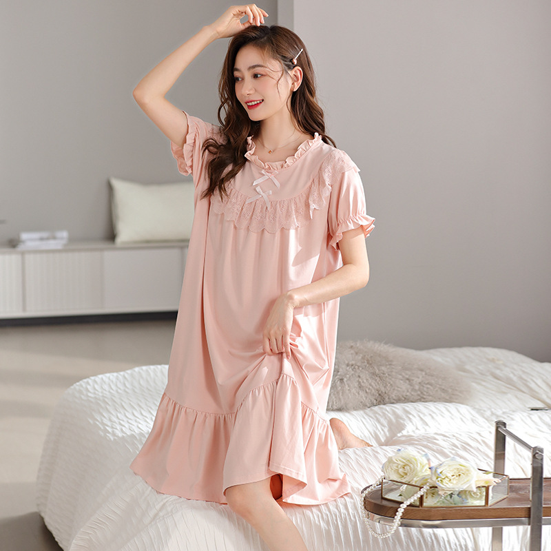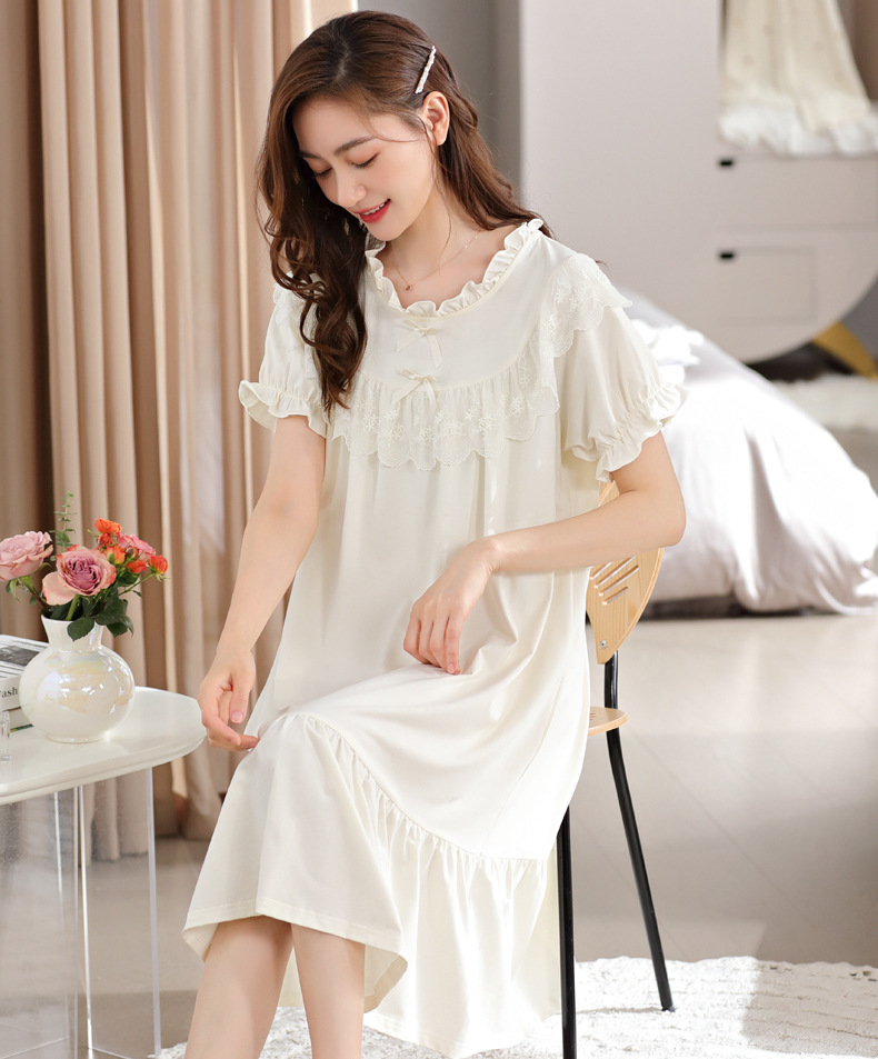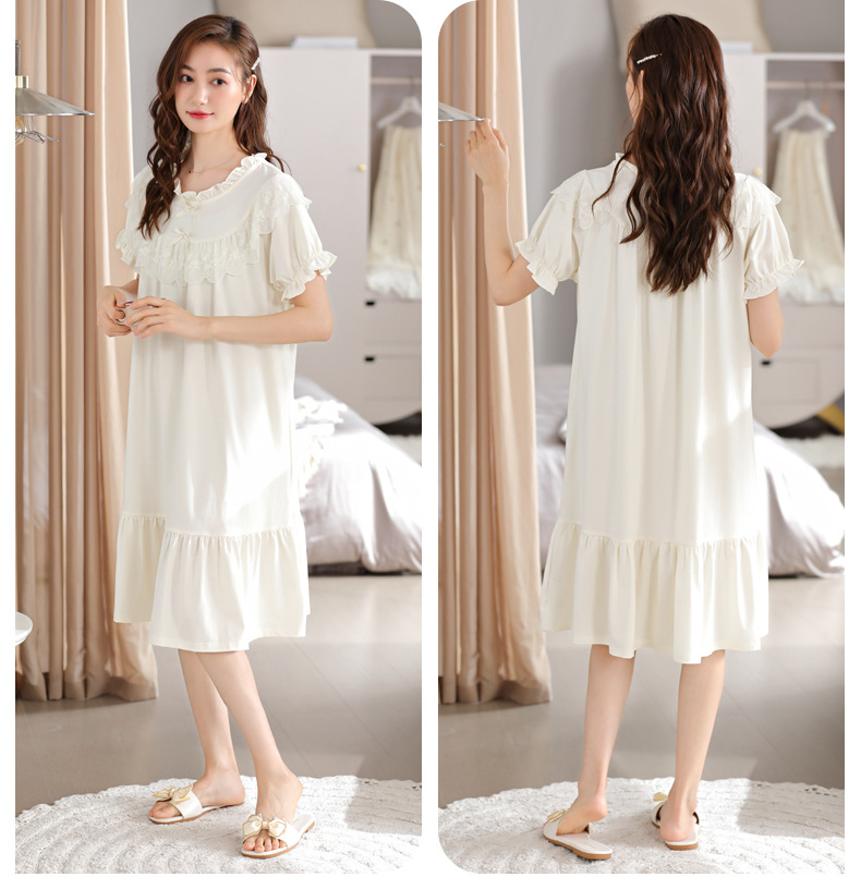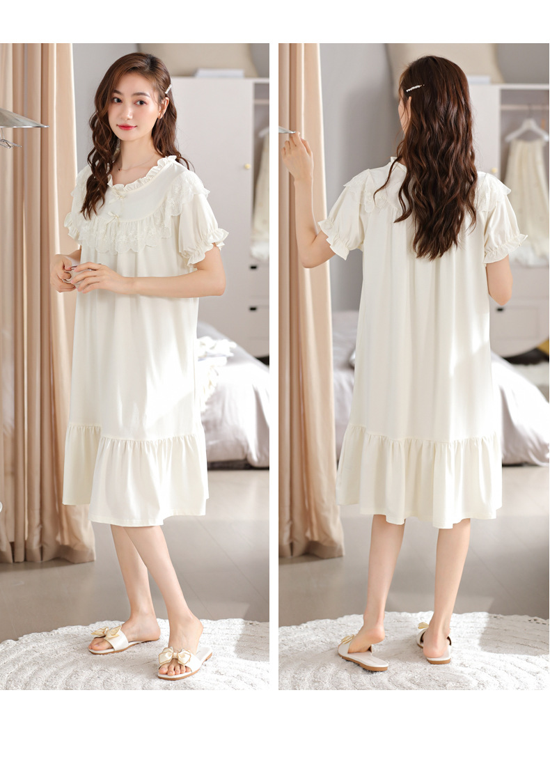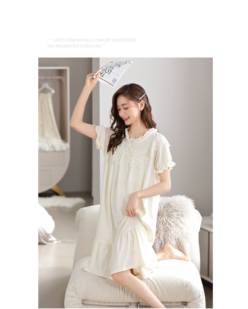 잠옷 여자의 여름 궁전 스타일 하이 엔드 얇은 시원한 면 아웃웨어 공주 스타일 여자의 가정 옷 긴 원피스스토어 가기