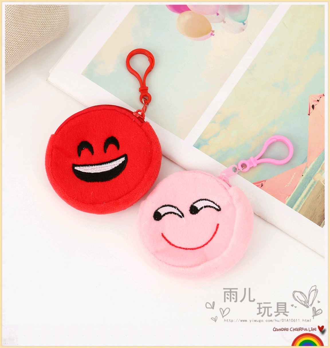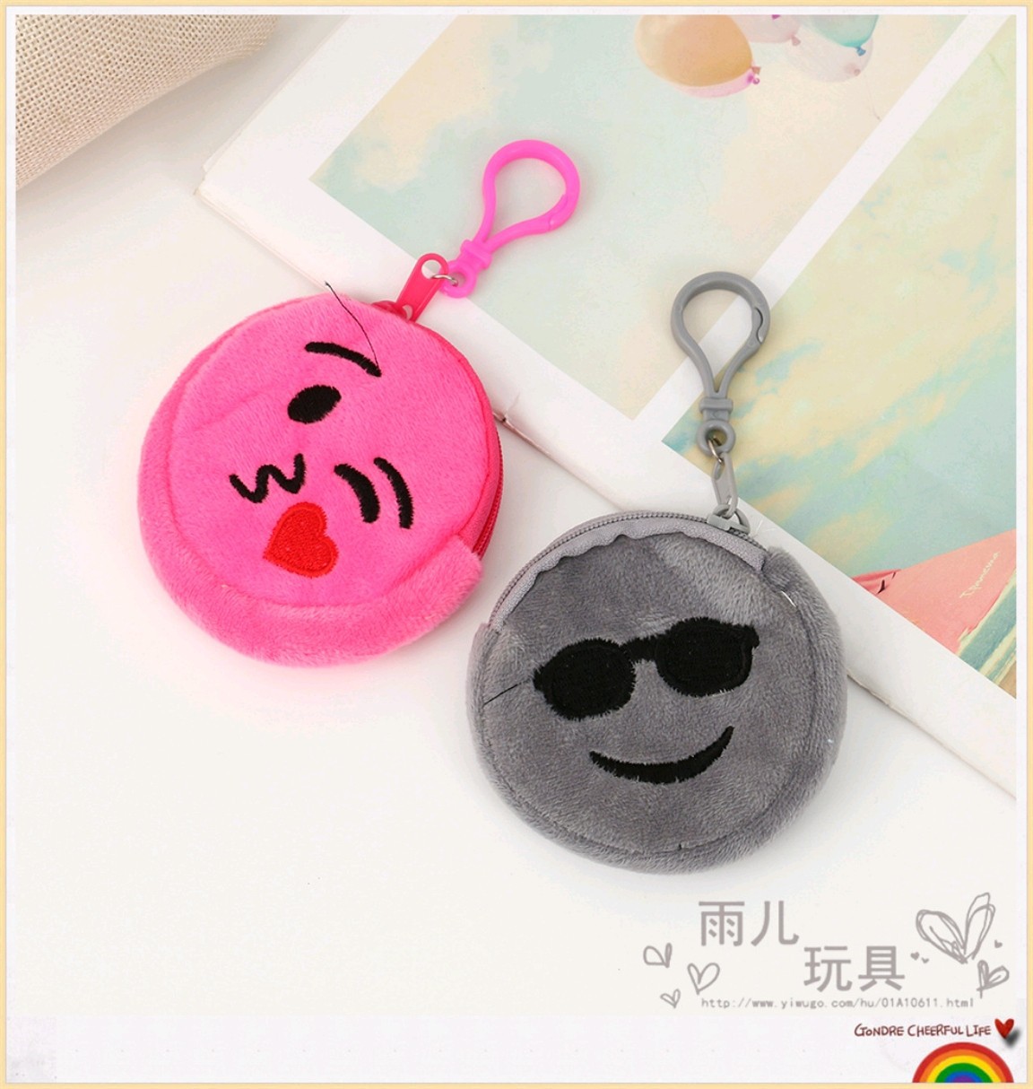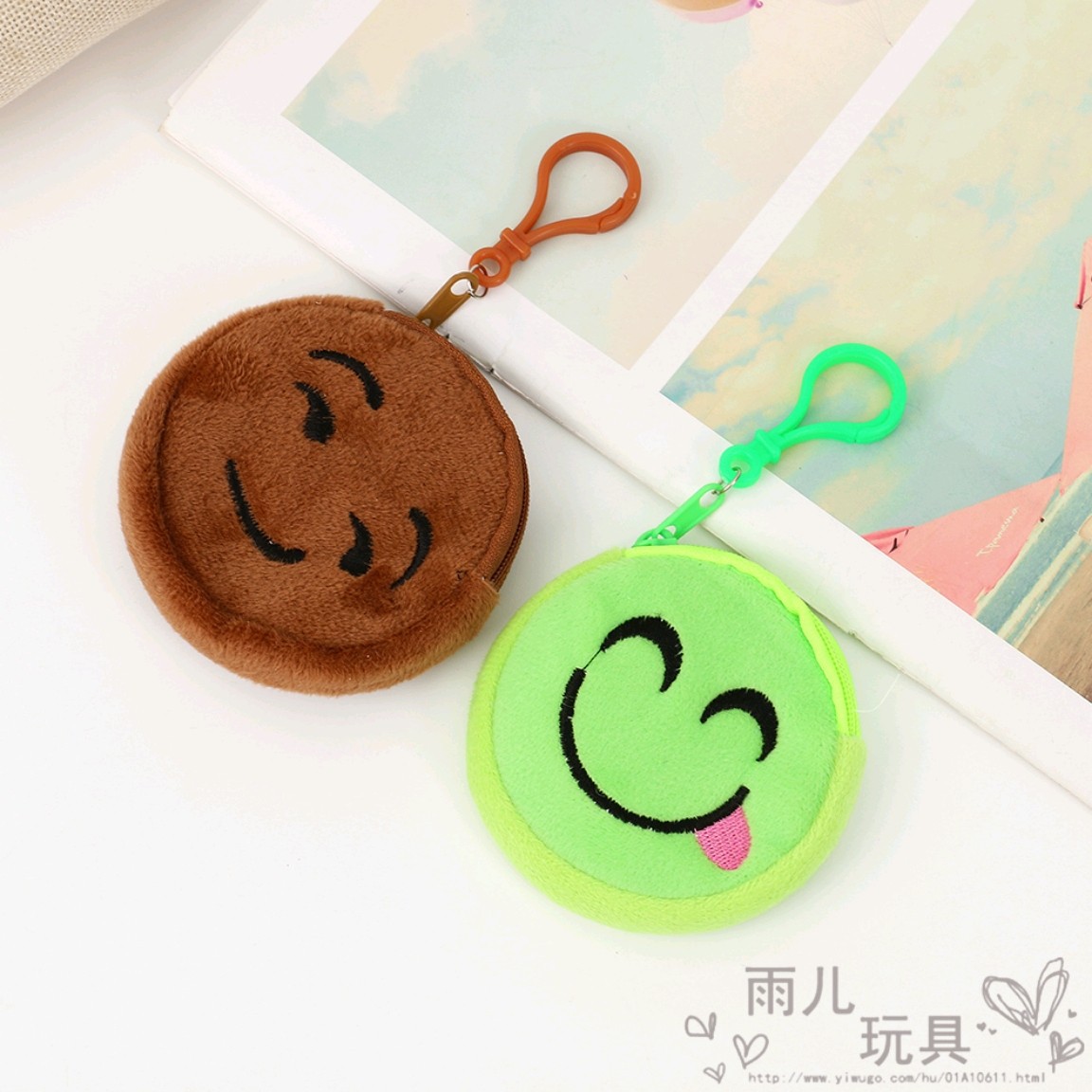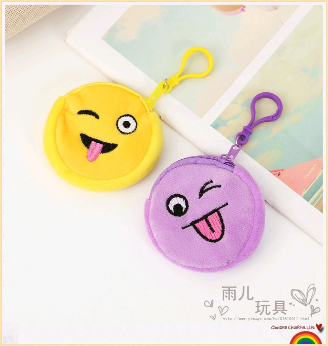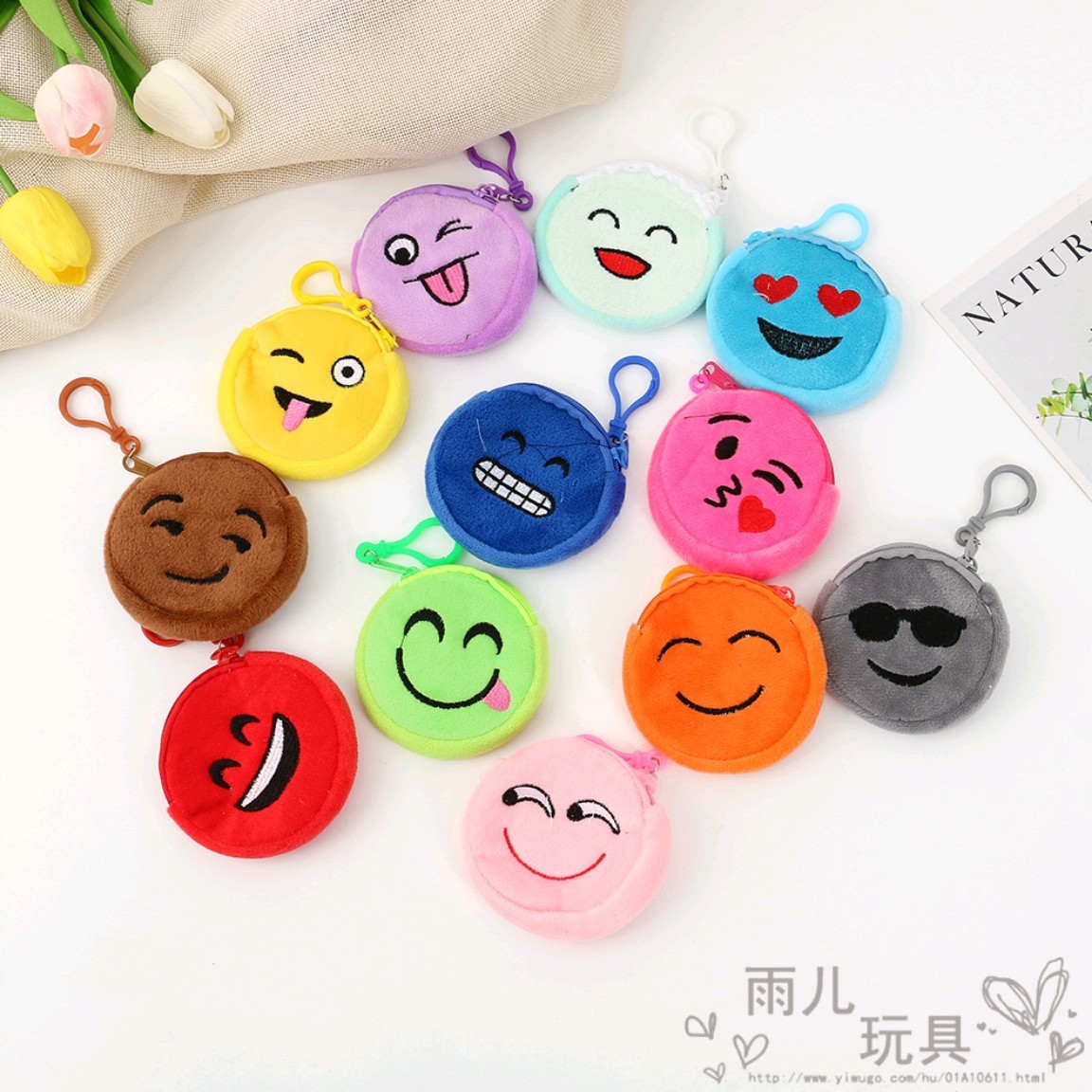2023 원형 동전 지갑 혼합 스타일 혼합 색상 이모티콘 동전 지갑 만화 자수 작은 가방 어린이 동전 지갑 도매