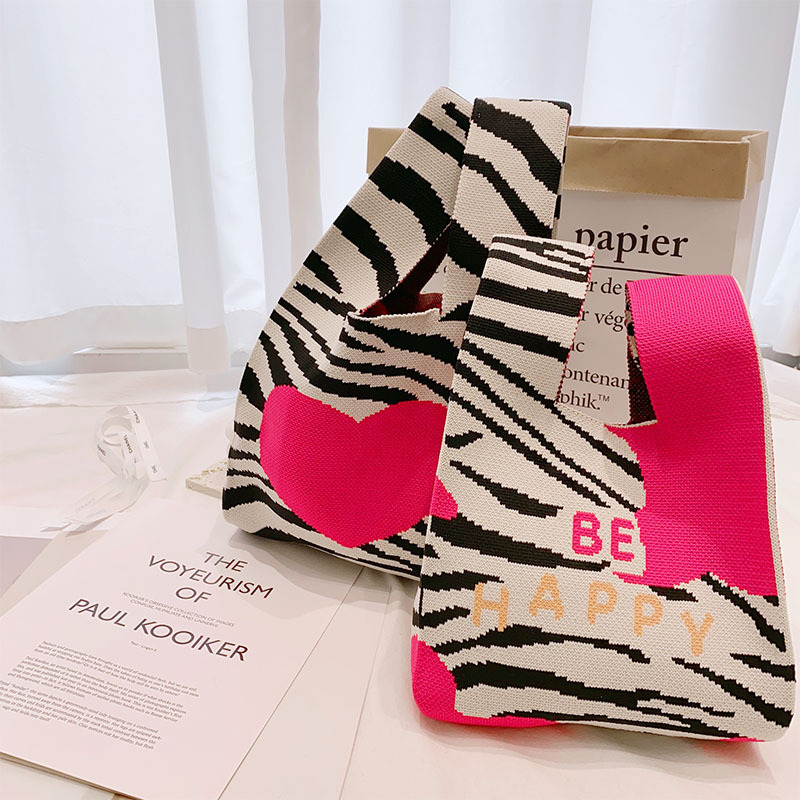 한국식 동대문 조끼 가방 여성용 스몰 프레쉬 러브 마카롱 컬러 니트 백 달콤한 모든 매치 대비 컬러 니트 백스토어 가기