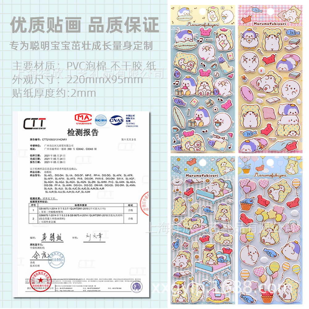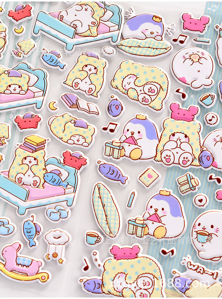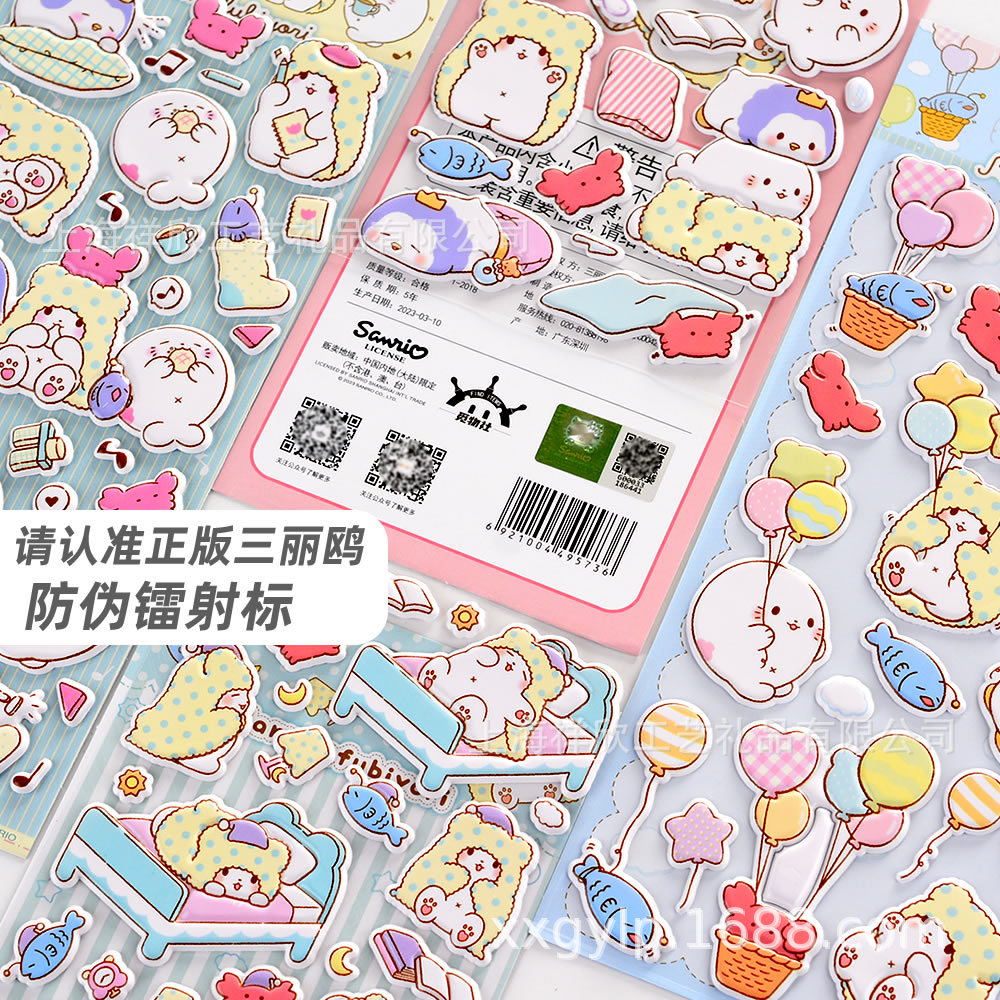 셰인 ATK 산리오 정품 담요 곰 모푸 침실 3D 버블 스티커 어린이 소녀 스티커
