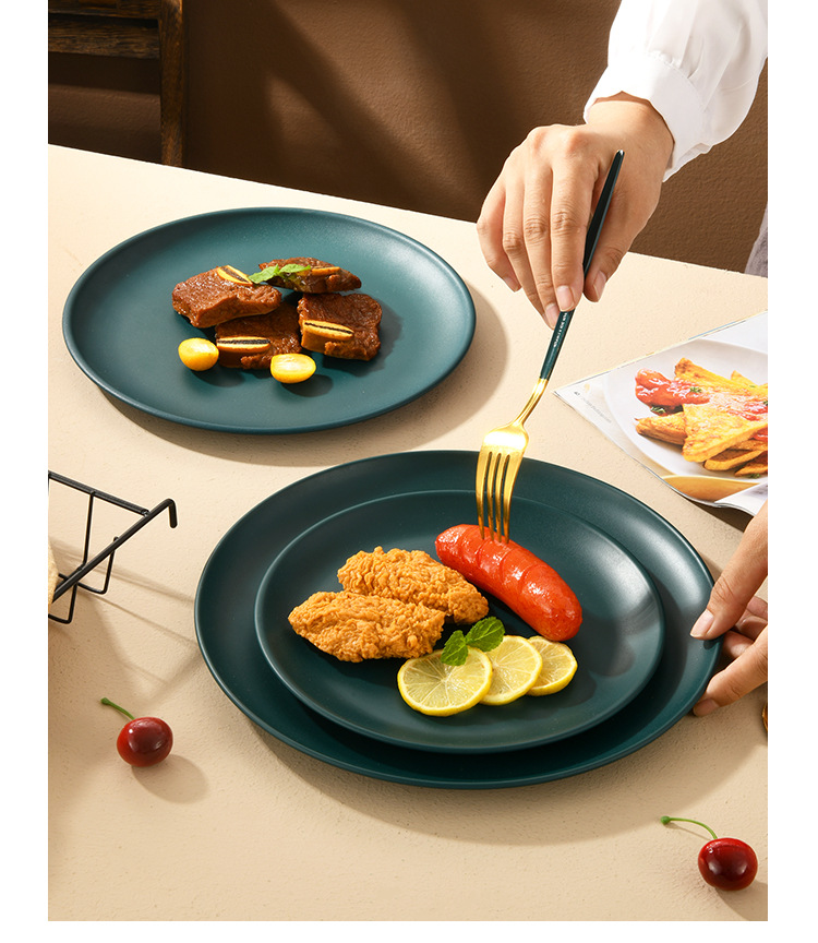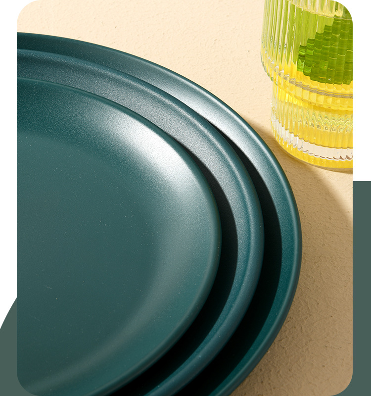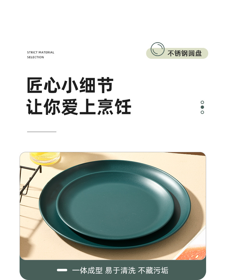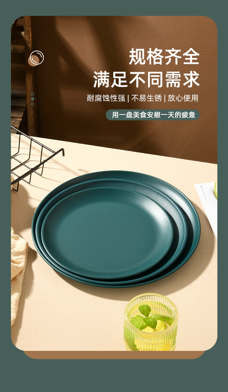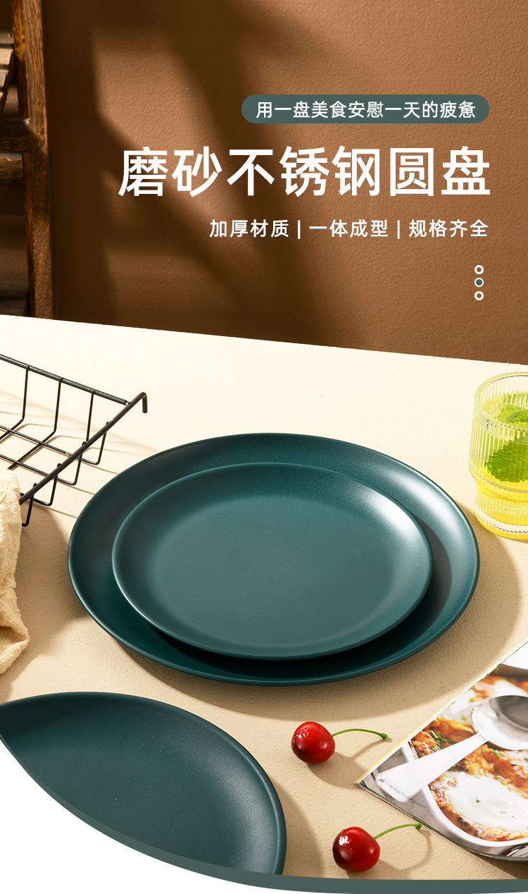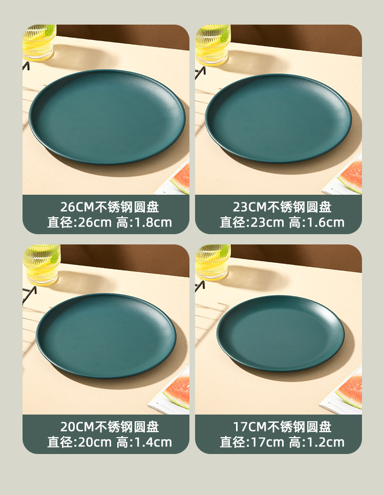 유럽식 창조적 인 접시 스테인레스 스틸 바베큐 접시 다크 그린 라운드 스낵 접시 서양 파스타 접시 스낵 접시