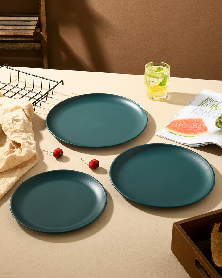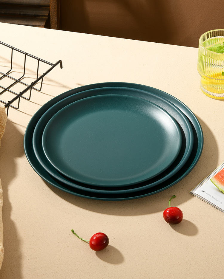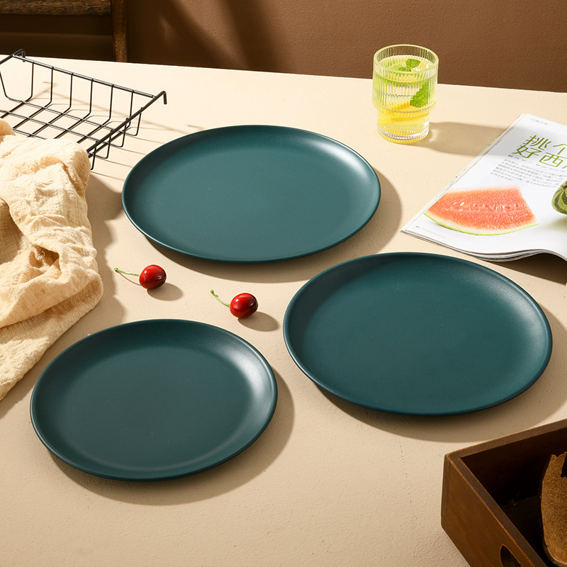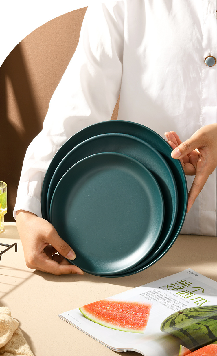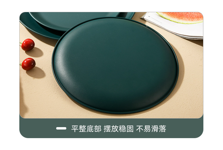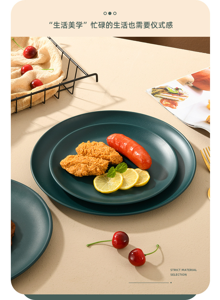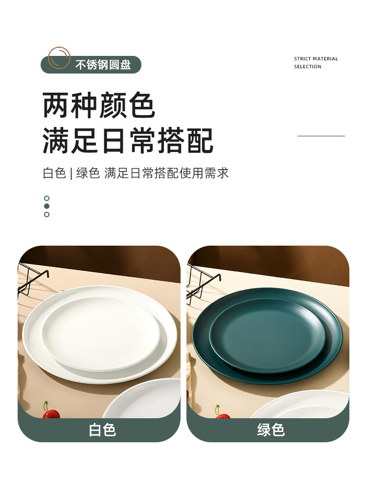 유럽식 창조적 인 접시 스테인레스 스틸 바베큐 접시 다크 그린 라운드 스낵 접시 서양 파스타 접시 스낵 접시