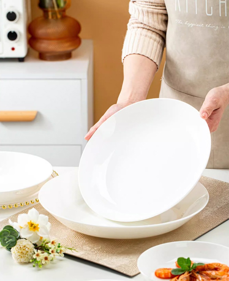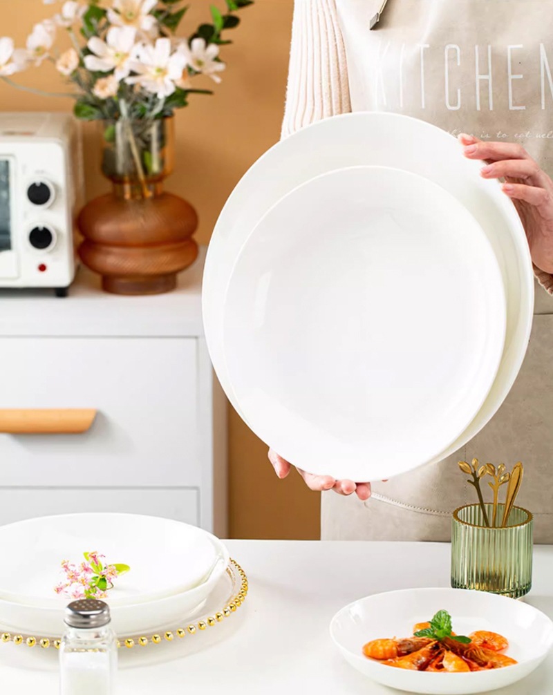 공장 스트레이트 헤어 뼈 도자기 순수한 흰색 야채 플레이트 쌀 플레이트 접시 세라믹 디너 플레이트 딥 플레이트 인쇄 가능한 로고스토어 가기