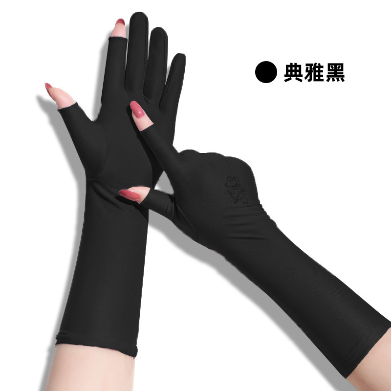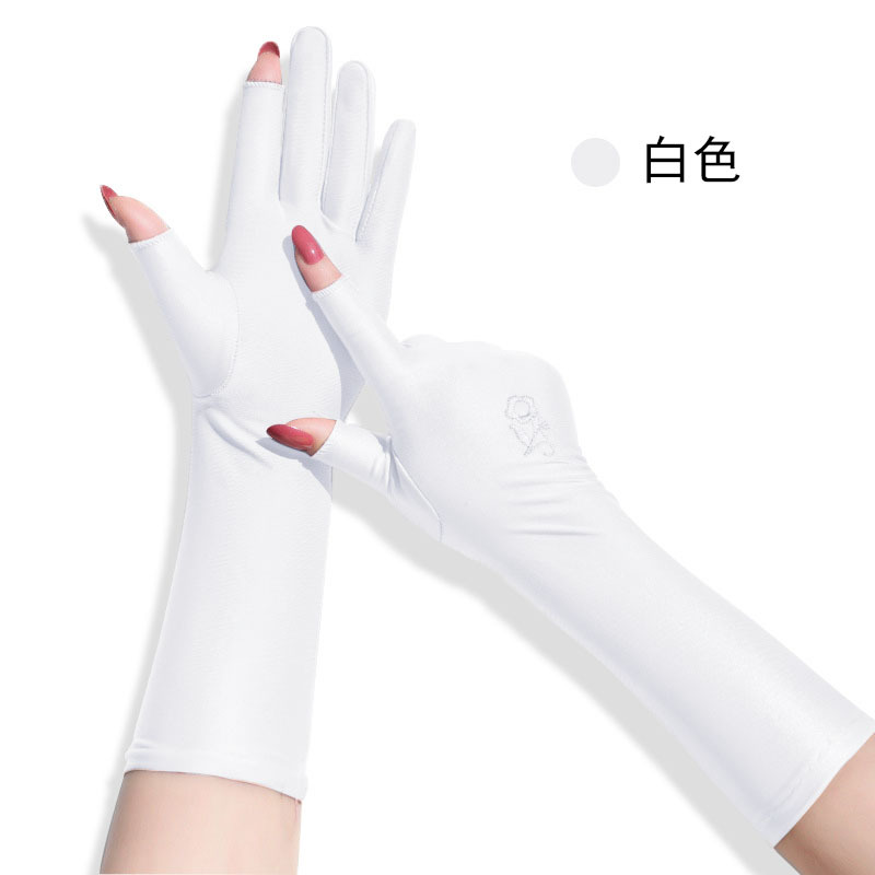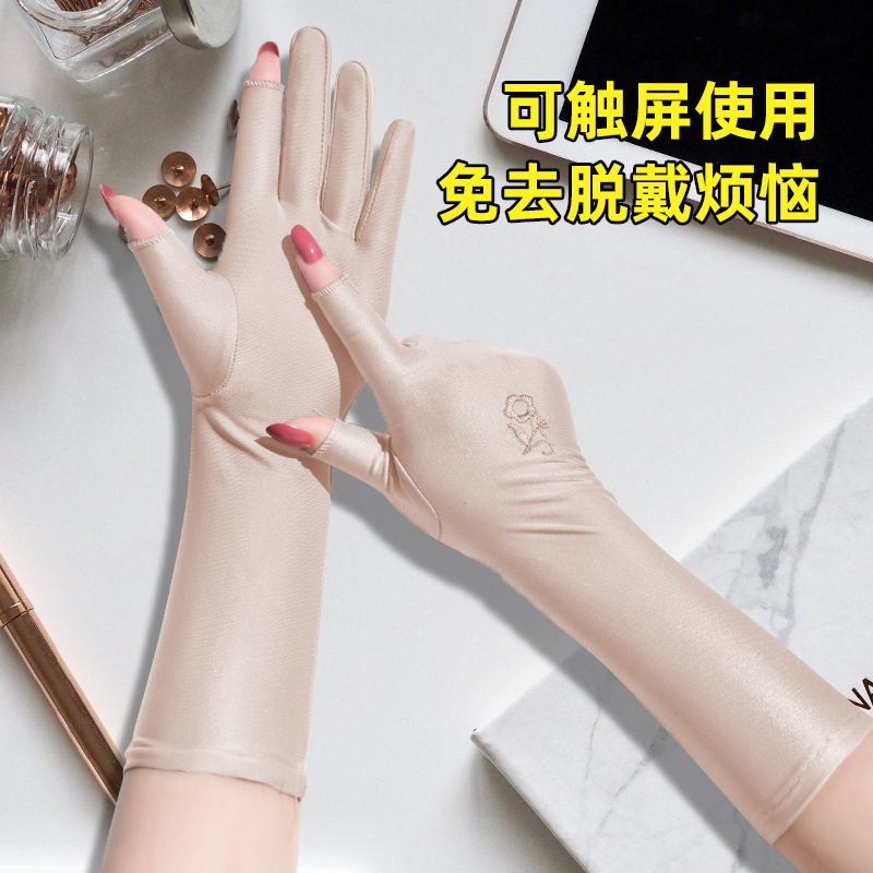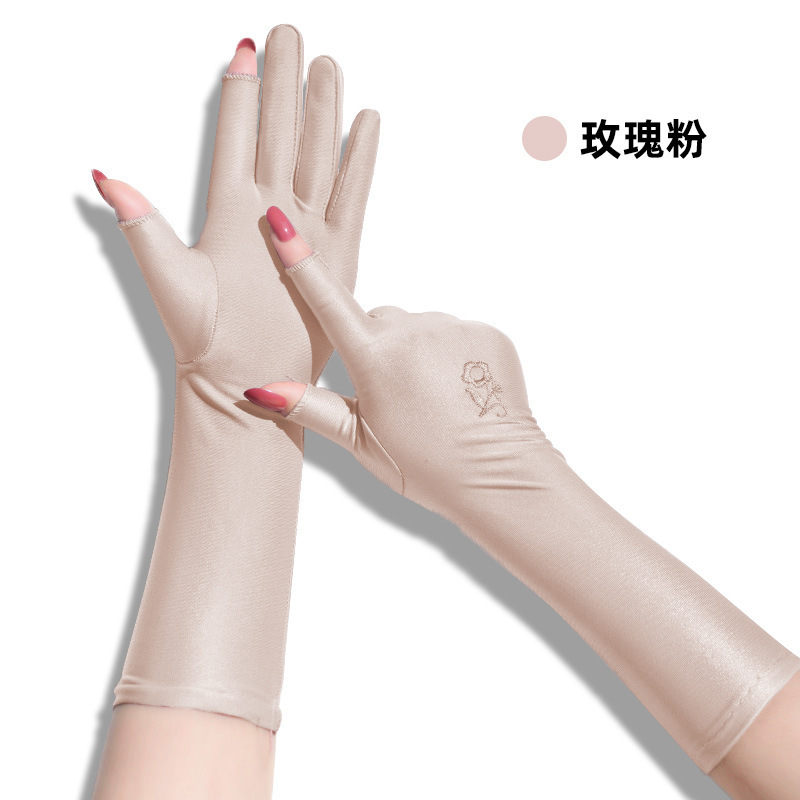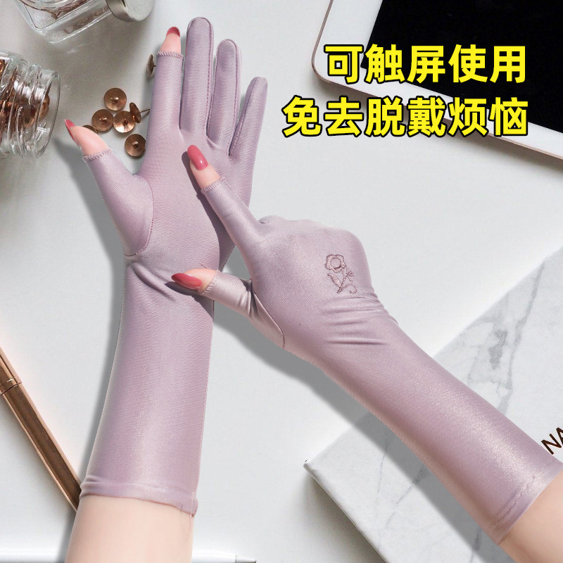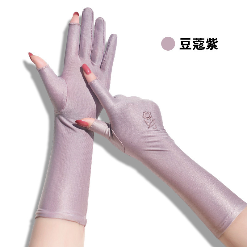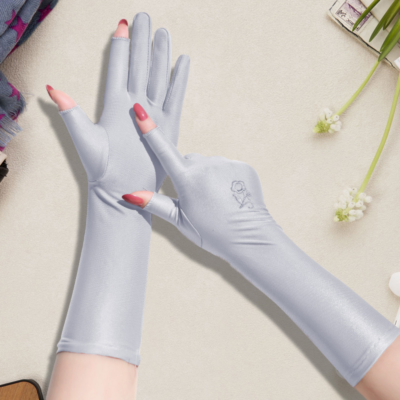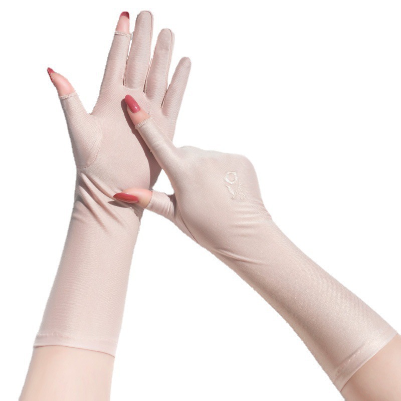 스판덱스 자수 터치스크린 자수 통기성 장갑 여성용 야외 사이클링 및 운전 자외선 차단 장갑 얇은 확장 장갑