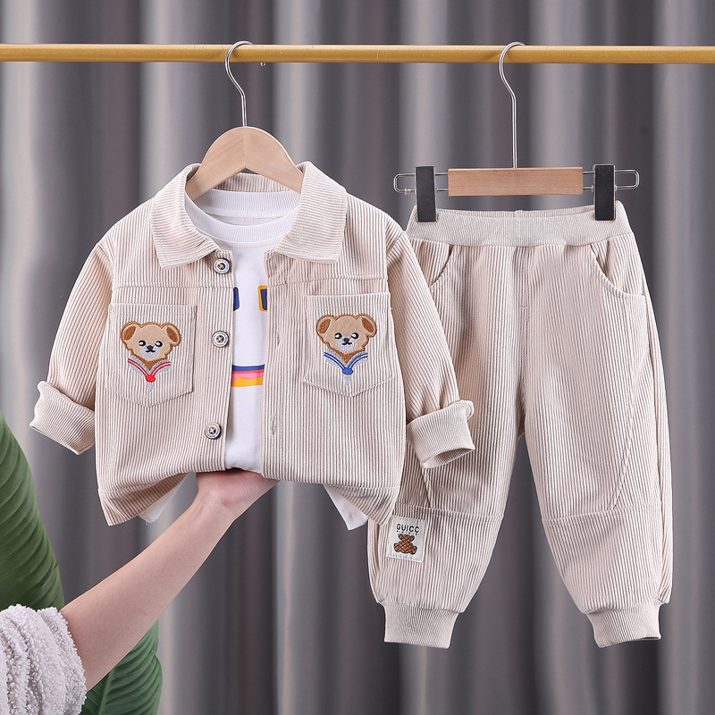 어린이와 소년 만화 캐주얼 3 피스 세트 아기 잘 생긴 옷 새로운 코듀로이 어린이 바지 재킷스토어 가기