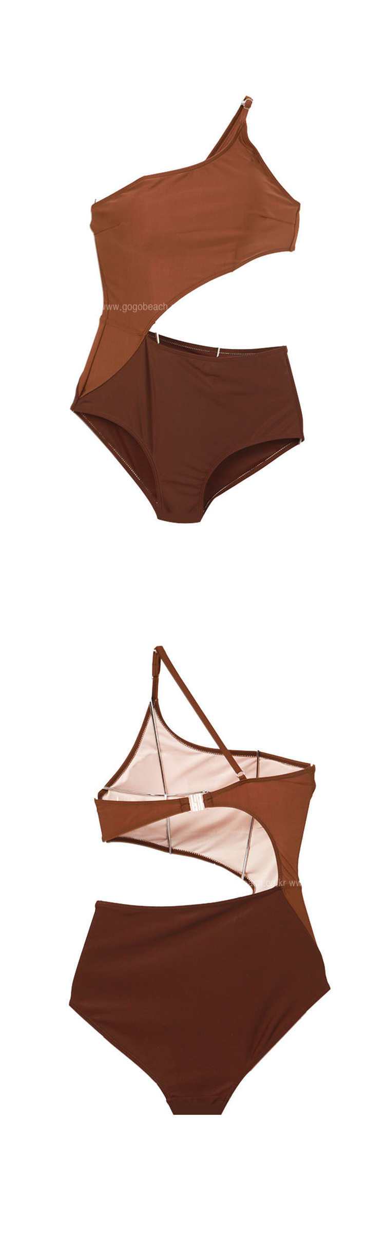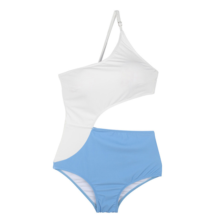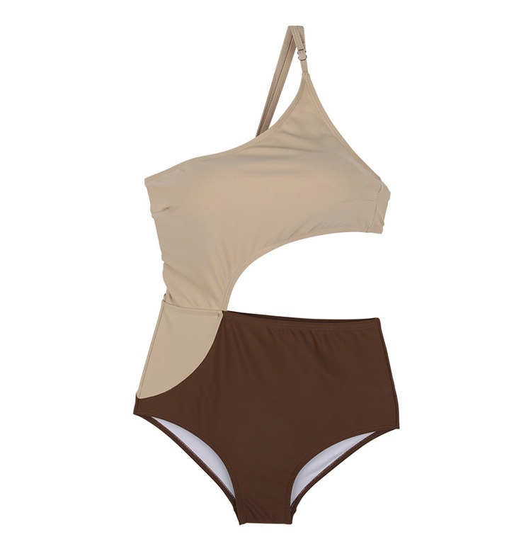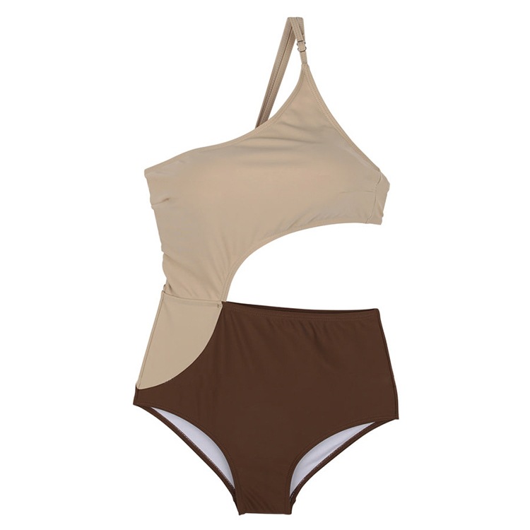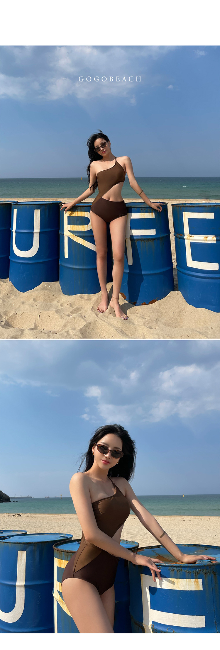 한국 수영복 2023 온천 새로운 원 숄더 컬러 매칭 하이 웨이스트 배꼽 커버 슬리밍 섹시한 원피스 섹시 수영복 여성용스토어 가기