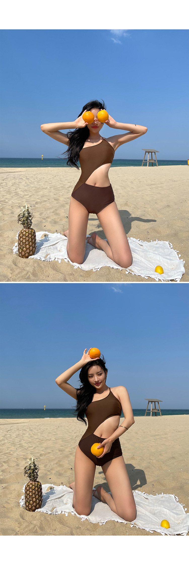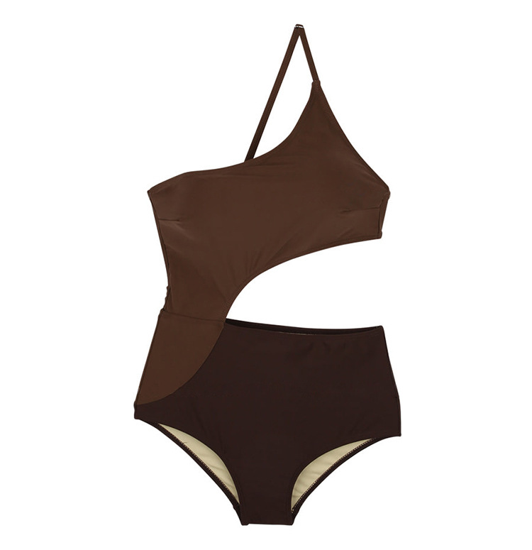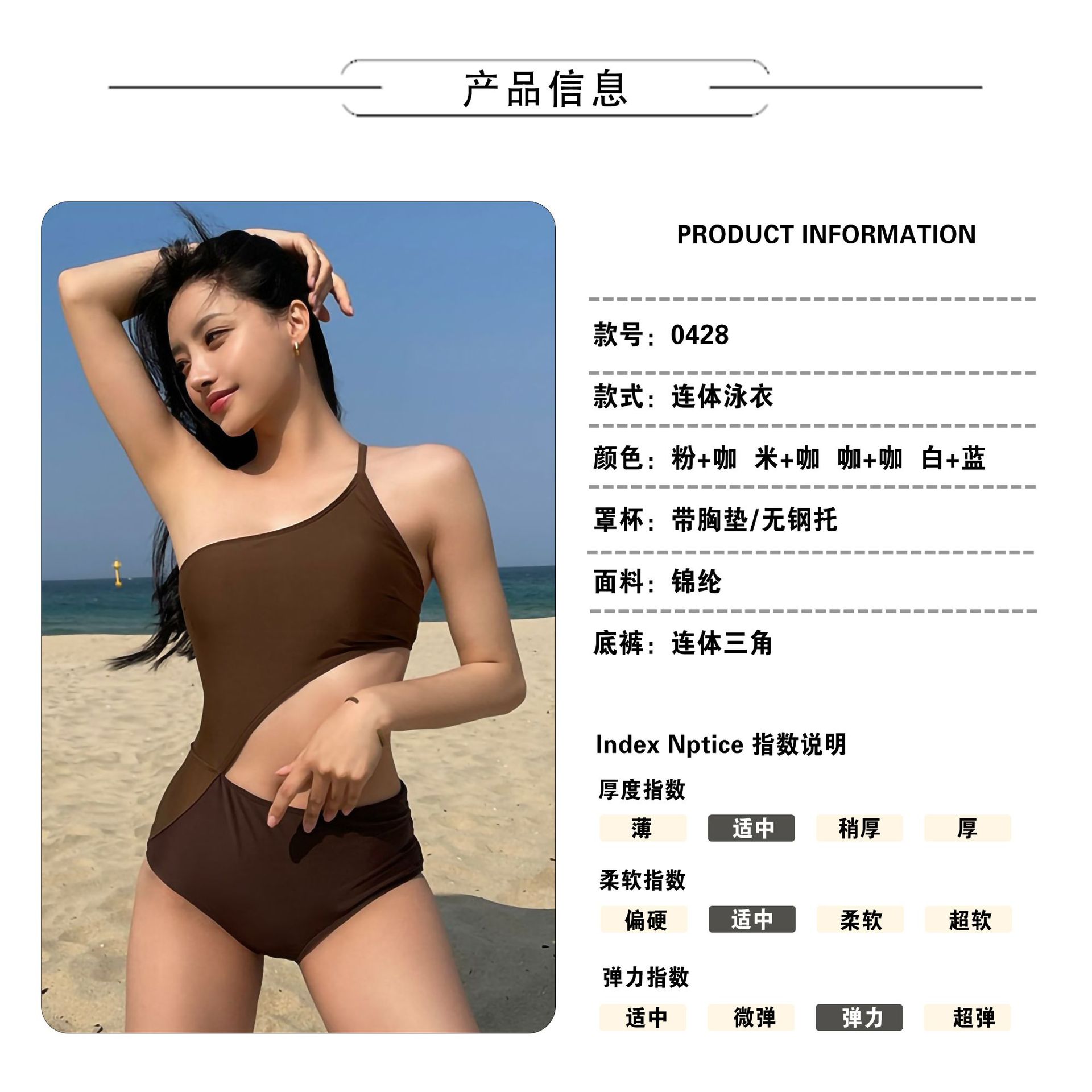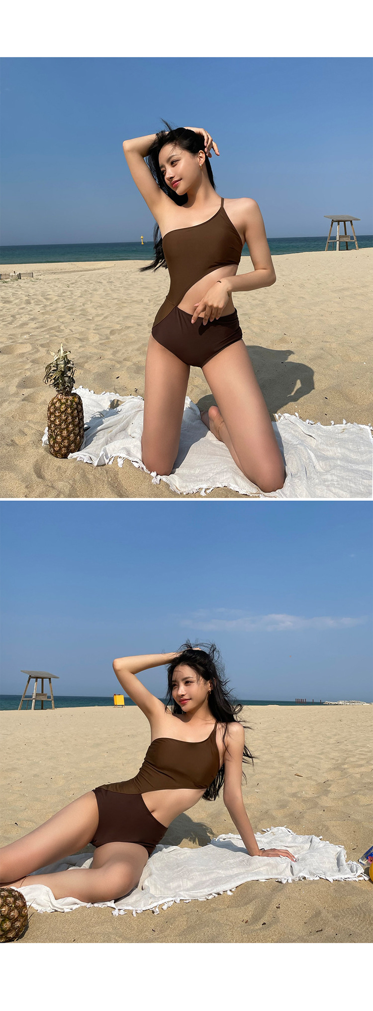 한국 수영복 2023 온천 새로운 원 숄더 컬러 매칭 하이 웨이스트 배꼽 커버 슬리밍 섹시한 원피스 섹시 수영복 여성용스토어 가기