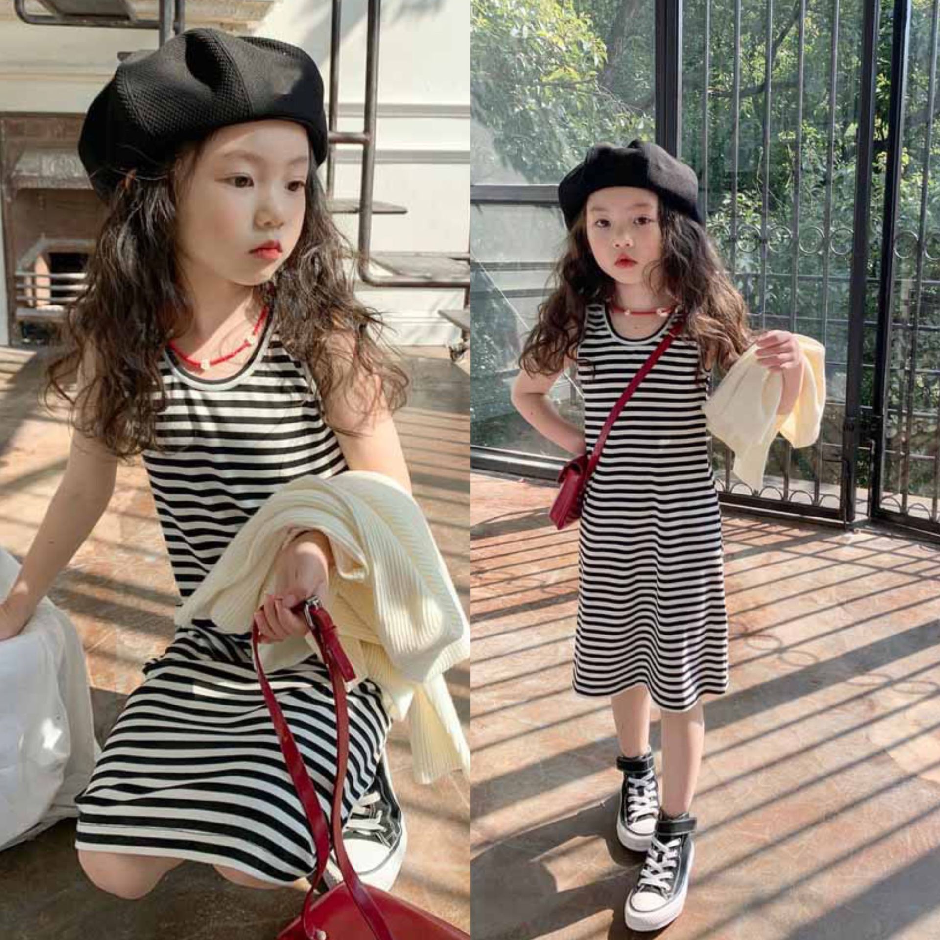 여자 조끼 치마 여름 새로운 한국 줄무늬 외국 스타일 멜빵 치마 조끼 치마 어린이를위한 머리카락 세대