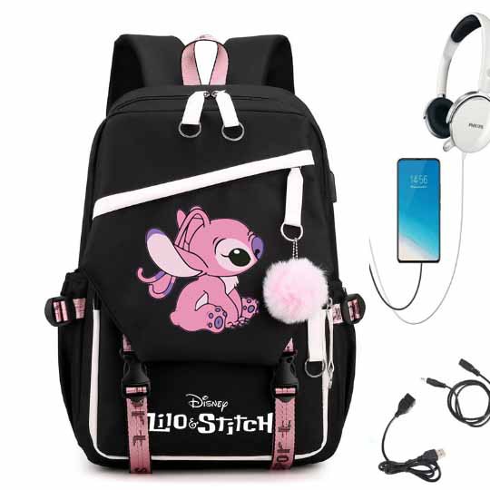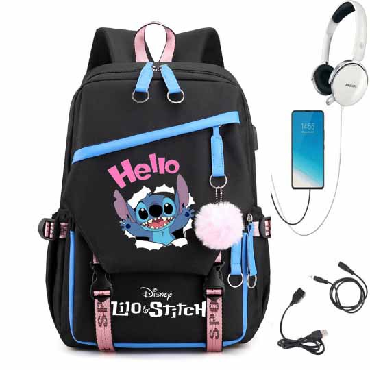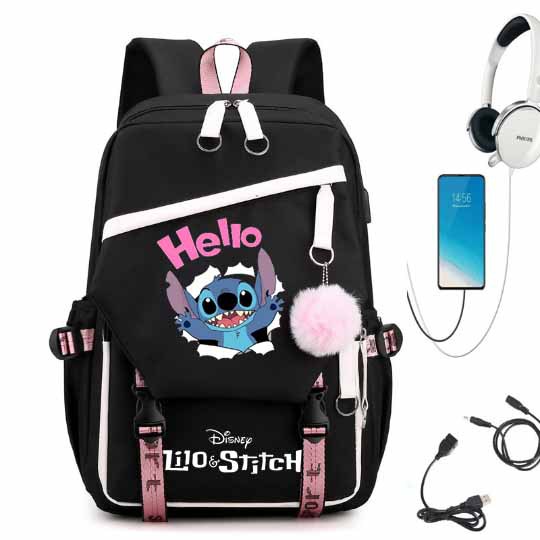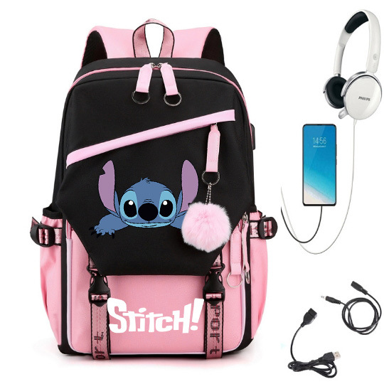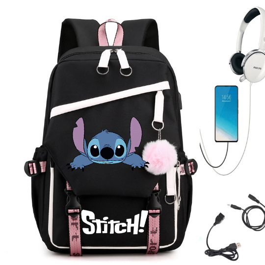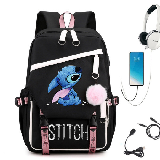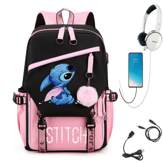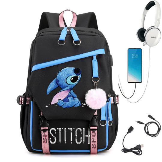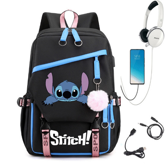 새로운 별 베이비 스티치 스티치 USB 충전식 책가방 남성과 여성 학생 배낭 배낭 배낭