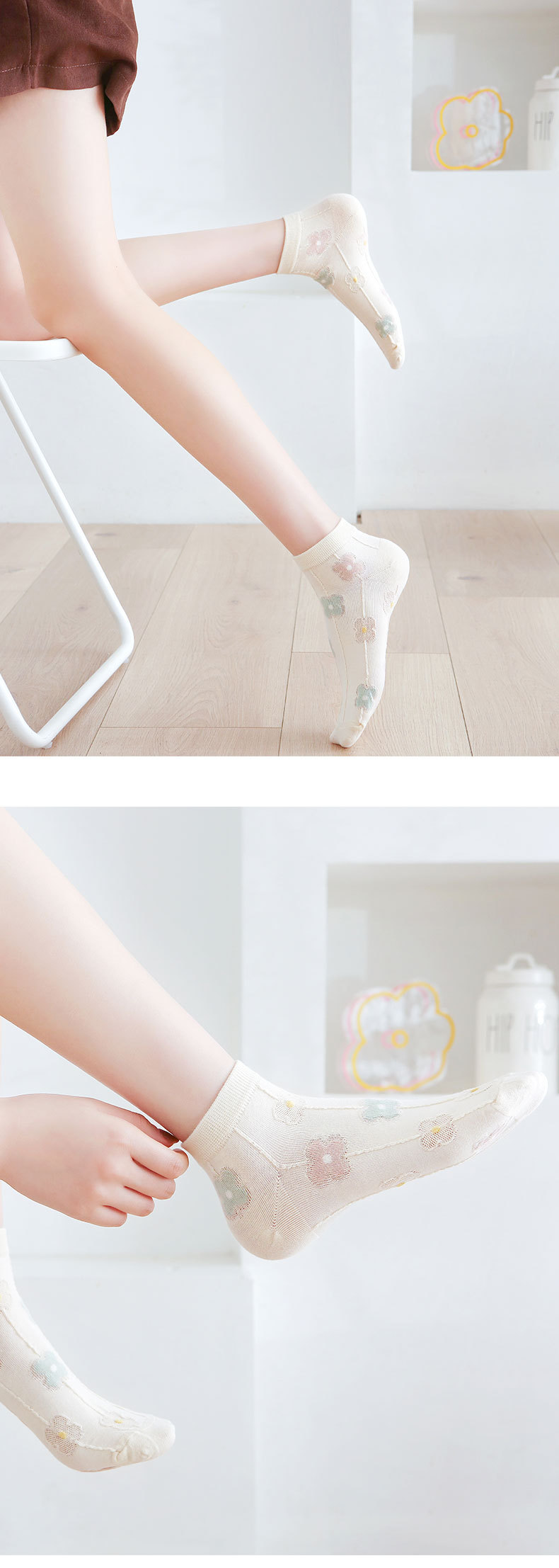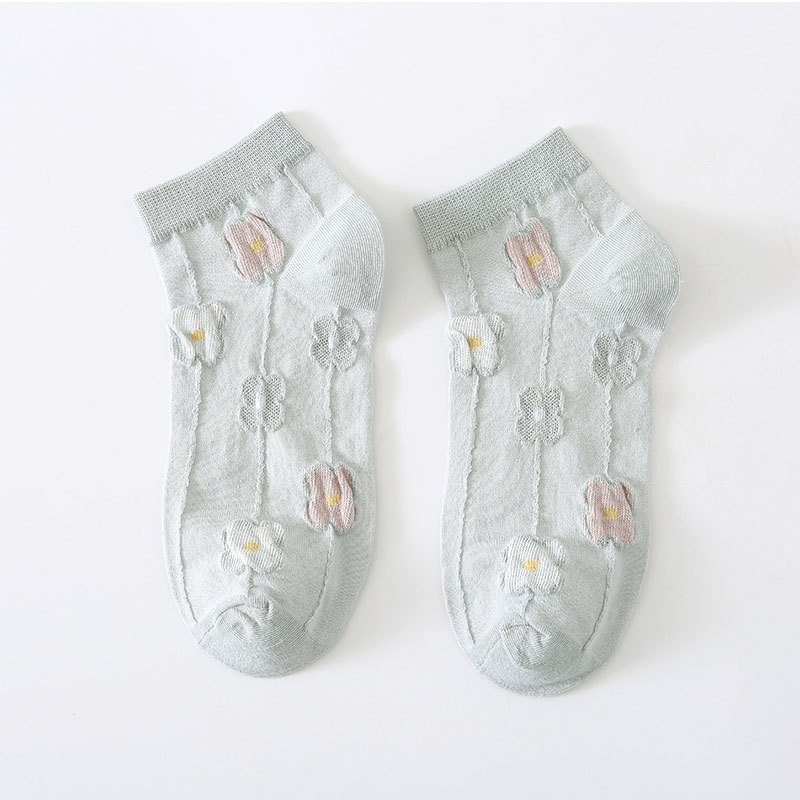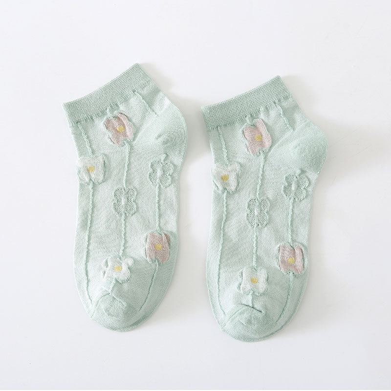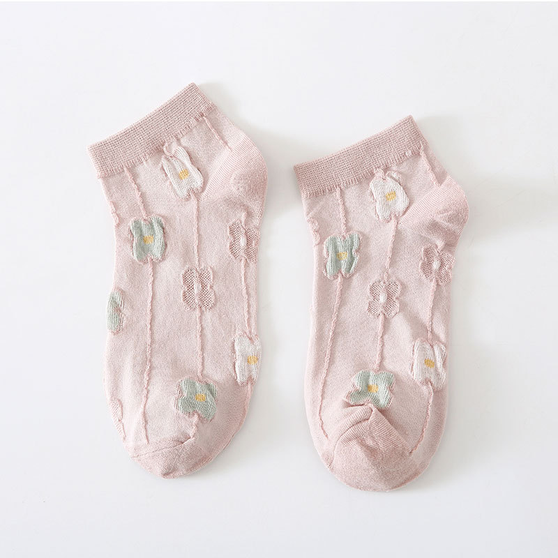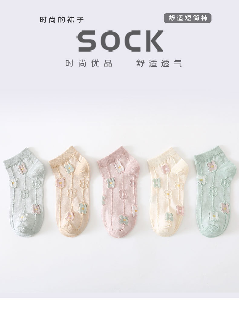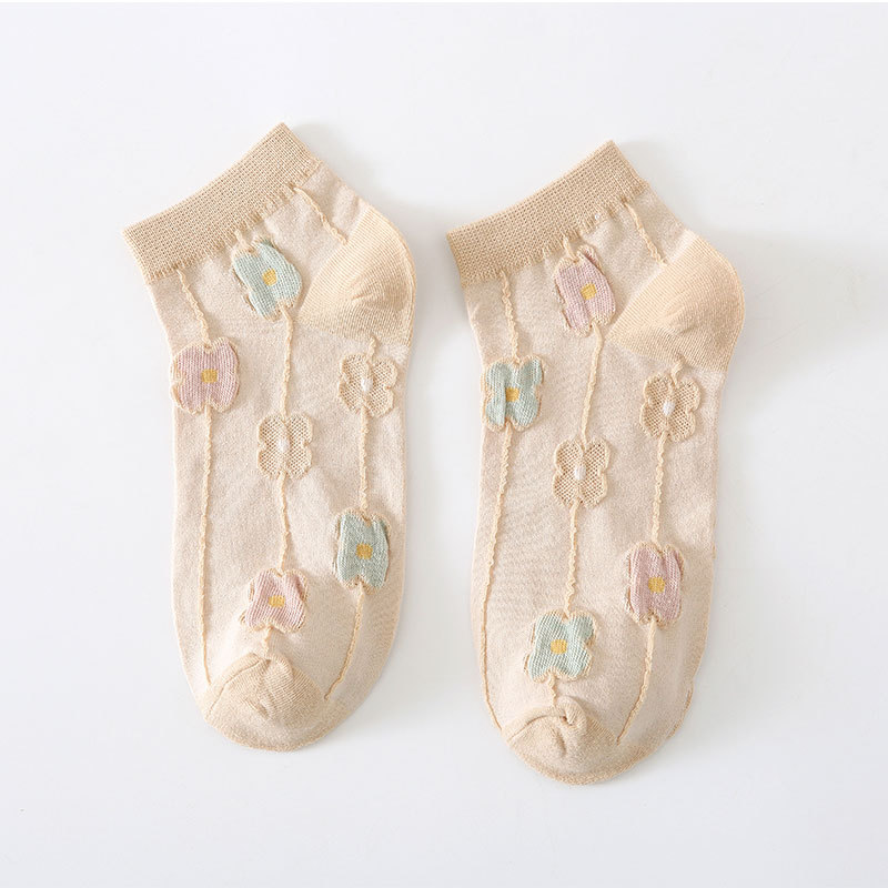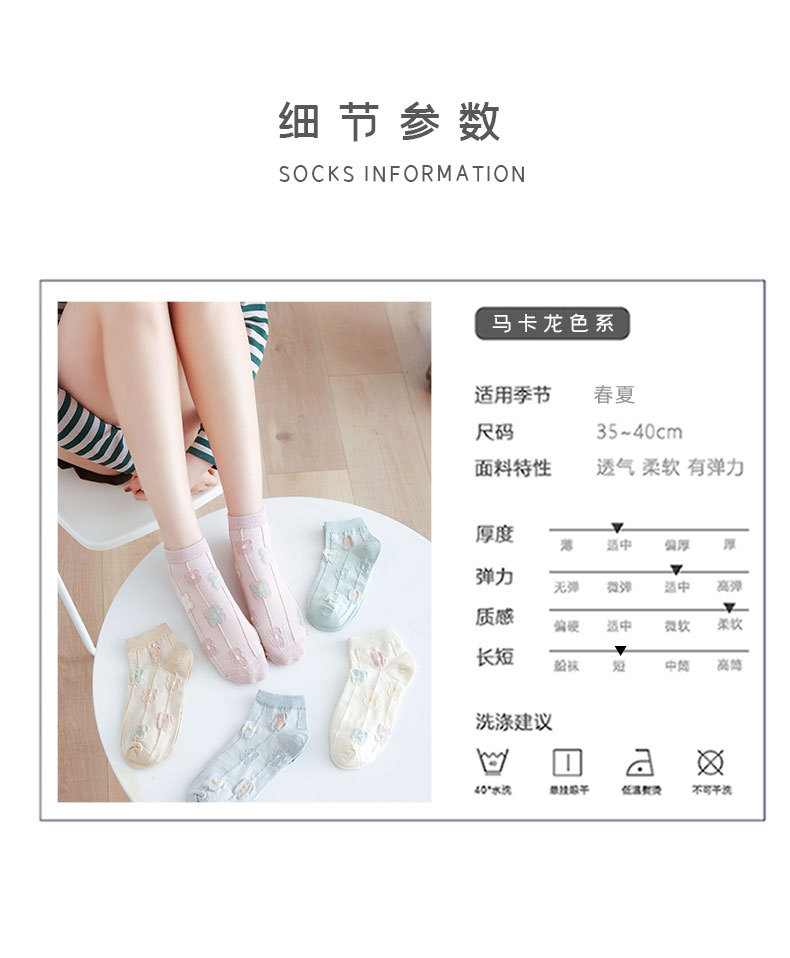 양말 여성용 봄과 여름 얇은 짧은 양말 크림 색 꽃 학생 양말 면 양말 여성용 짧은 튜브 보이지 않는 양말 얕은 입