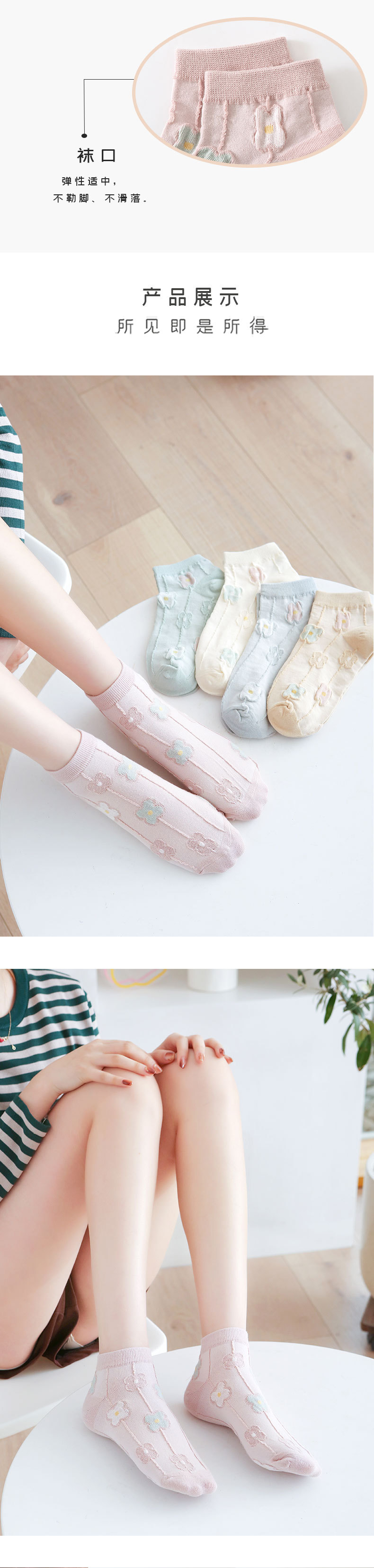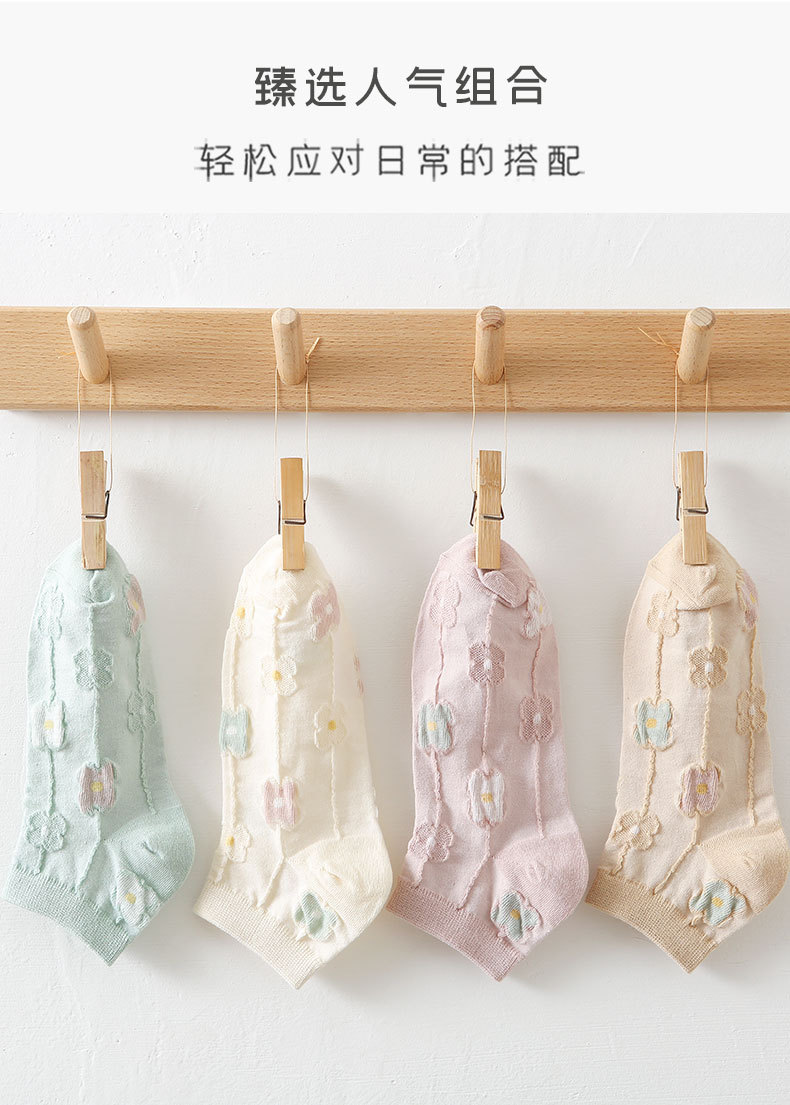 양말 여성용 봄과 여름 얇은 짧은 양말 크림 색 꽃 학생 양말 면 양말 여성용 짧은 튜브 보이지 않는 양말 얕은 입스토어 가기